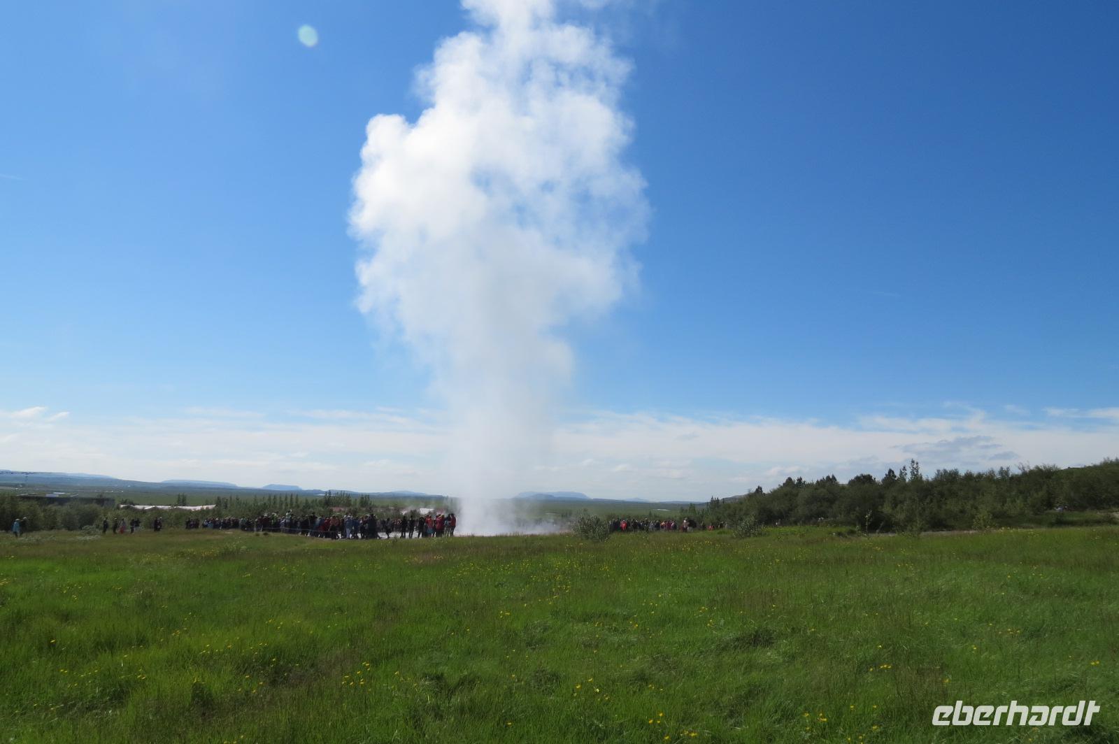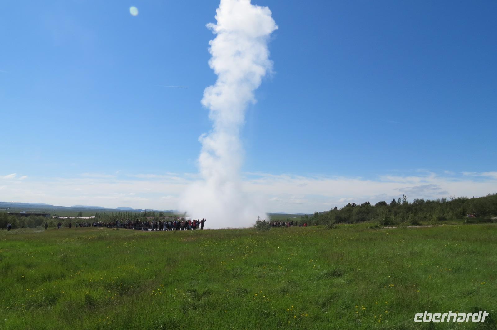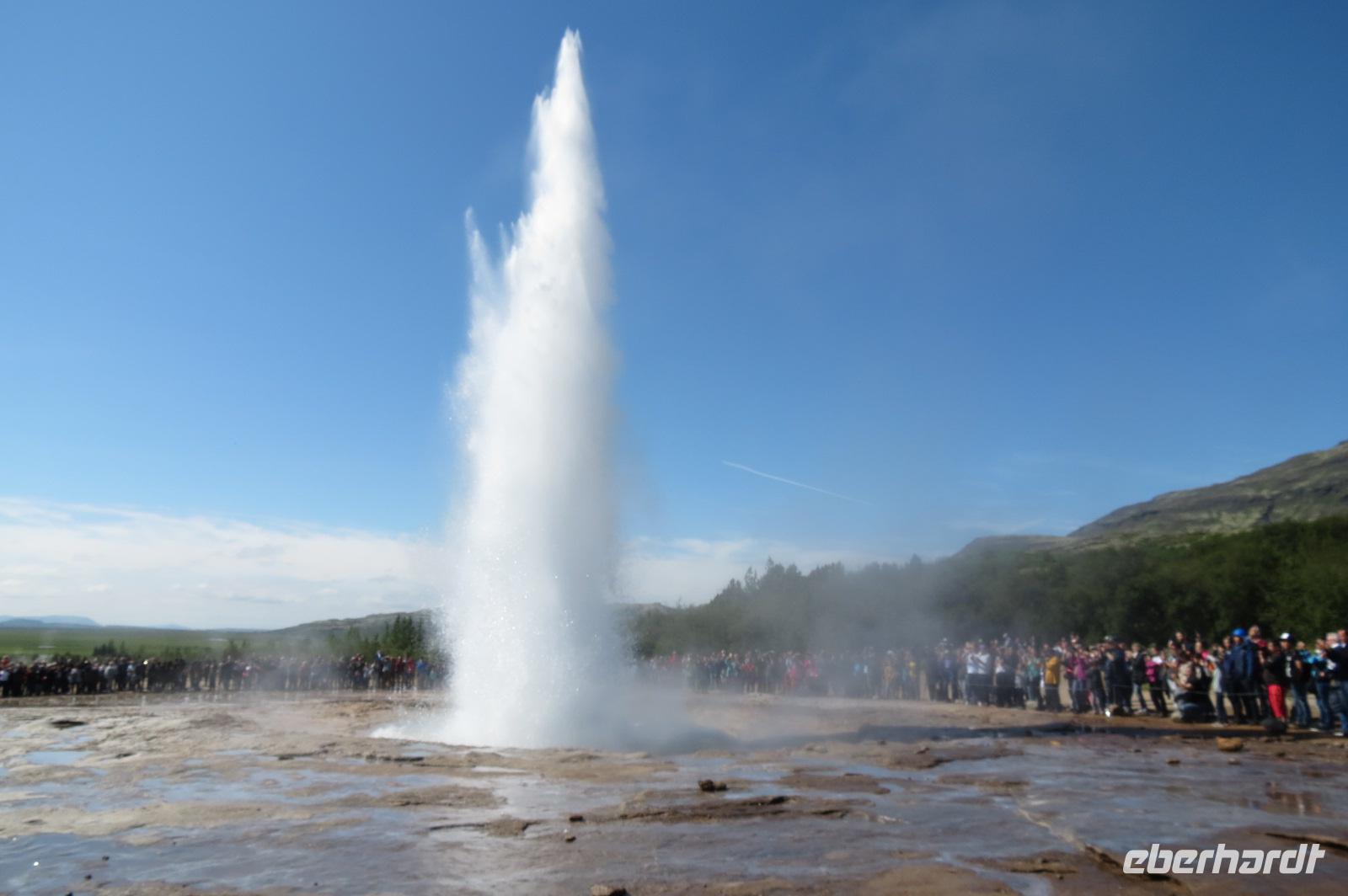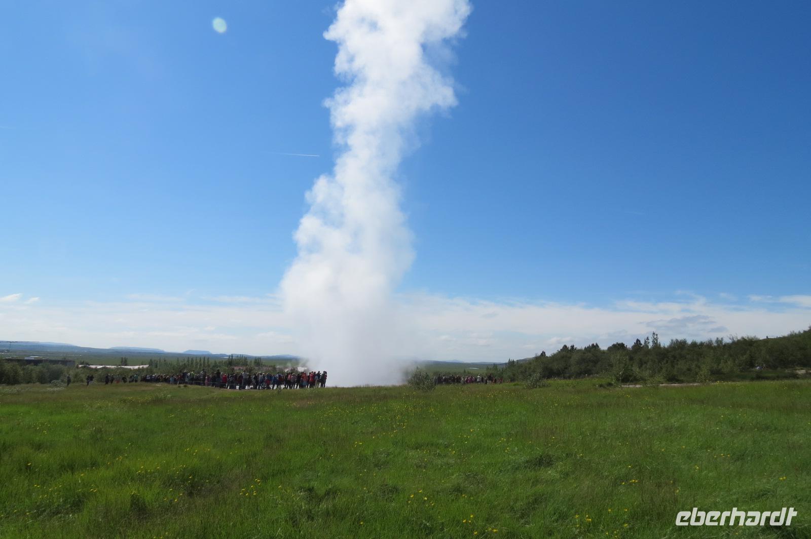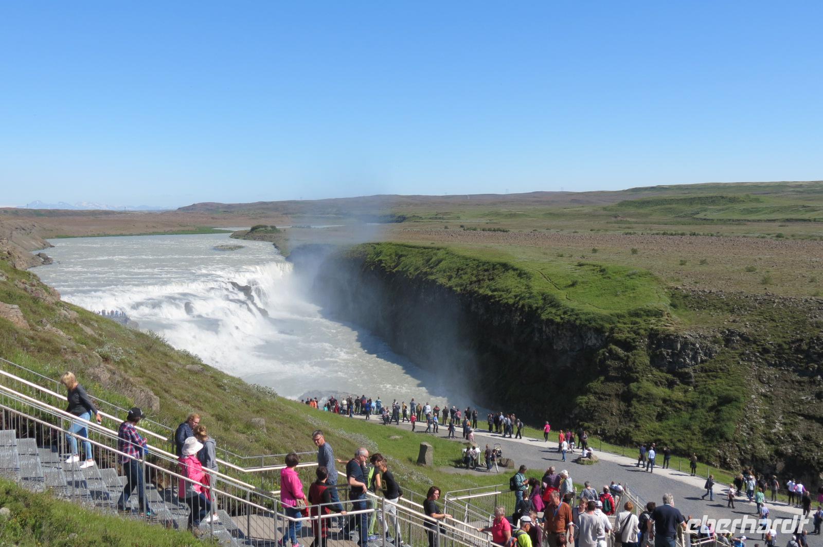Gestern haben wir noch den kleinen Ort Ísafjörður erkundet, heute erreichen wir bereits Reykjavík. Übersetzt wird Reykjavík mit "Rauchbucht". Seine Bedeutung hat die isländische Hauptstadt wahrscheinlich aufgrund von den Dämpfen heißer Quellen der Umgebung und auch eines Irrtums des ersten Siedlers Ingólfur Arnarson erhalten. Reykjavík wurde erstmals 870 bevölkert und seit 1786 wird sie offiziell als Stadt bezeichnet. Bereits ab 06.00 Uhr besteht die Möglichkeit, im Buffet-Restaurant zu frühstücken, um 07.30 Uhr dann auch im "The Golden Lobster". Wir haben leicht bewölkten Himmel bei 13 bis 17 Grad. Für den Landgang ist die Mitnahme der Bordkarte ausreichend. Um 08.00 Uhr erreichen wir Reykjavík. Zu den interessanten Unternehmungen in der isländischen Hauptstadt und Umgebung zählt unter anderem der Besuch des goldenen Wasserfalls Gullfoss. Tatsächlich setzt er sich aus zwei Wasserfällen zusammen, der Obere ist elf Meter und der Untere rund 20 Meter hoch. Die Fallhöhe beträgt demnach insgesamt 31 Meter. Die Kanten sind aus harten Basaltlavaschichten, also aus grauem Gestein. Die Hvita-Schlucht verzeichnet eine Länge von 2,5 Kilometern und eine Tiefe von 70 Metern. Es gibt mehrere Theorien zur Namensgebung des Wasserfalls. Als Beispiel soll er seinen Namen davon erhalten haben, in dem oftmals abends die goldene Abendröte auf das Wasser gefallen ist. Seit 1979 stehen der Goldene Wasserfall und seine Umgebung unter Naturschutz. Über einen Pfad zu einer kleinen Plattform können die Gäste ganz nah die riesigen hinabstürzenden Wassermassen beobachten. Interessant ist sicher auch Hveragerði. Bei der Touristeninformation können Gäste unter dem Glas eine Erdbeben-Spalte sehen und es gibt auch eine kleine Ausstellung über das Erdbeben von 2008. Wer möchte, kann gern den Erdbeben-Simulator mit einer Richter-Skala von 6,6 für 200,00 ISK testen. Ein weiteres kleines Highlight ist der Schlackekrater Kerið. In dem rund 6.500 Jahre alten Krater mit einem Oval von circa 270 Metern mal 170 Metern und einer Tiefe von 55 Metern befindet sich türkisblaues Wasser. Ein Besuch lohnt sicherlich auch das Geothermalgebiet Haukadalur mit den bekannten Geysiren und heißen Quellen. Berühmtheit hat besonders der Namensgeber aller Springquellen erlangt, der Große Geysir. Es wird empfohlen, vorsichtig zwischen den heißen Quellen und Geysiren zu spazieren, da das Wasser eine Temperatur bis zu 100 Grad erreichen kann. Nicht weit entfernt befindet sich der Geysir Strokkur (Butterfass). Regelmäßig aller 10 bis 20 Minuten können die Gäste eine kochende 25 bis 35 Meter hohe Wasserfontäne bestaunen. Wer möchte, kann einen leicht steinigen Weg zu einem Aussichtspunkt hinauflaufen, von wo aus ein großartiger Blick über das ganze Geothermalgebiet geboten wird. Ungefähr 40 Kilometer nordöstlich von Reykjavík entfernt befindet sich die alte Parlamentsstätte Thingvellir (oder auch Þingvellir) und der gleichnamige Nationalpark. Sie liegt am mit rund 84 Quadratmeter größten natürlichen Binnensees Islands Þingvallavatn. Im Nationalpark können die Gäste die kleine Kirche des Örtchens Þingvellir erblicken und die Almannagjá (Allmännerschlucht) entlanglaufen. Die Schlucht bildet die Grenze zwischen Amerika und Europa, durch das Tal grenzt also die Amerikanische an die Eurasische Krustenplatte. Es gibt noch heute eine jährliche Auseinanderbewegung der Platten von rund zwei bis drei Zentimeter. Ein einmaliges Erlebnis ist sicherlich das Bad in der Blauen Lagune "Bláa Lónið". Dieses Thermalfreibad befindet sich rund 30 Minuten Busfahrt vom Flughafen Keflavík entfernt auf der Reykjanes-Halbinsel. Jeder der Badegäste erhält ein Armband zum Öffnen und Schließen der Schränke. Bevor ein entspanntes Bad im 37 bis 42 Grad heißen Thermalwasser aus Mineralsalzen, Kieselerde und Algen genossen werden kann, soll sich gründlich geduscht werden. Dafür sind Duschgel und Shampoo der eigenen Hausmarke "Blue Lagoon" für die Gäste kostenfrei und in ausreichender Menge vorhanden. Am Rand des Thermalfreibades befinden sich große Holzkästen mit weißem Schlamm aus Kieselerde, welches die Gäste als reinigende Gesichtsmaske auftragen können. Außerdem gibt es eine Bar mit Getränken mitten im Wasser. Um sich dort etwas zu kaufen, brauchen die Gäste einfach ihr Armband anlegen und sie bezahlen dann später bequem bei der Kasse am Ausgang. Durch den vorhandenen Nebel erscheint dem Gast die Blaue Lagune fast schon magisch und geheimnisvoll. Das Wasser hat erwiesenermaßen eine heilende Wirkung unter anderem gegen Schuppenflechte und andere Hautkrankheiten. Die blaue Farbe entsteht durch die Kieselsäure, welche besonders die blauen Strahlen bei Sonnenlicht zurückwerfen. In Reykjavík haben unsere Gäste abermals unterschiedliche Ausflüge gebucht. Zu empfehlen sind KEF02 "Der Goldene Zirkel", KEF03 "Bad in der Blauen Lagune und Panoramatour in Reykjavík", KEF06 "Geothermalfeld von Krysuvik und Blaue Lagune", KEF11 "Mondlandschaften: Krater und heiße Quellen" und KEF14 "Pazifischer Feuerring". Während die Gäste die Umgebung von Reykjavík entdecken, unternimmt die Reisebegleitung einen ausführlichen Stadtrundgang in Vorbereitung auf den morgigen Tag. Die MSC bietet gegen Aufpreis einen Bus-Shuttle-Service an. Ein Tagesticket kostet 22,90 Euro pro Erwachsener und 15,90 Euro pro Kind. Der Preis für ein Kombi-Ticket für zwei Tage beträgt 29,90 Euro pro Erwachsener und 19,90 Euro pro Kind. Auf dem Weg von der Anlegestelle der MSC Preziosa zum Konzerthaus Harpa im Stadtzentrum ist das weiße Höfði-Haus zu sehen. In jenem Haus haben sich Ronald Reagan und Michail Gorbatschow 1986 zum Islandgipfel getroffen. Zudem fahren wir an der von Jón Gunnar Árnason entworfenen Skulptur "Solfar" vorbei, welche 1990 enthüllt wurde und eine "Ode an die Sonne" darstellen soll. Ihre Form erinnert an ein Wikinger-Schiff und sie soll ein Symbol für Freiheit, Hoffnung und unentdecktes Land sein. 