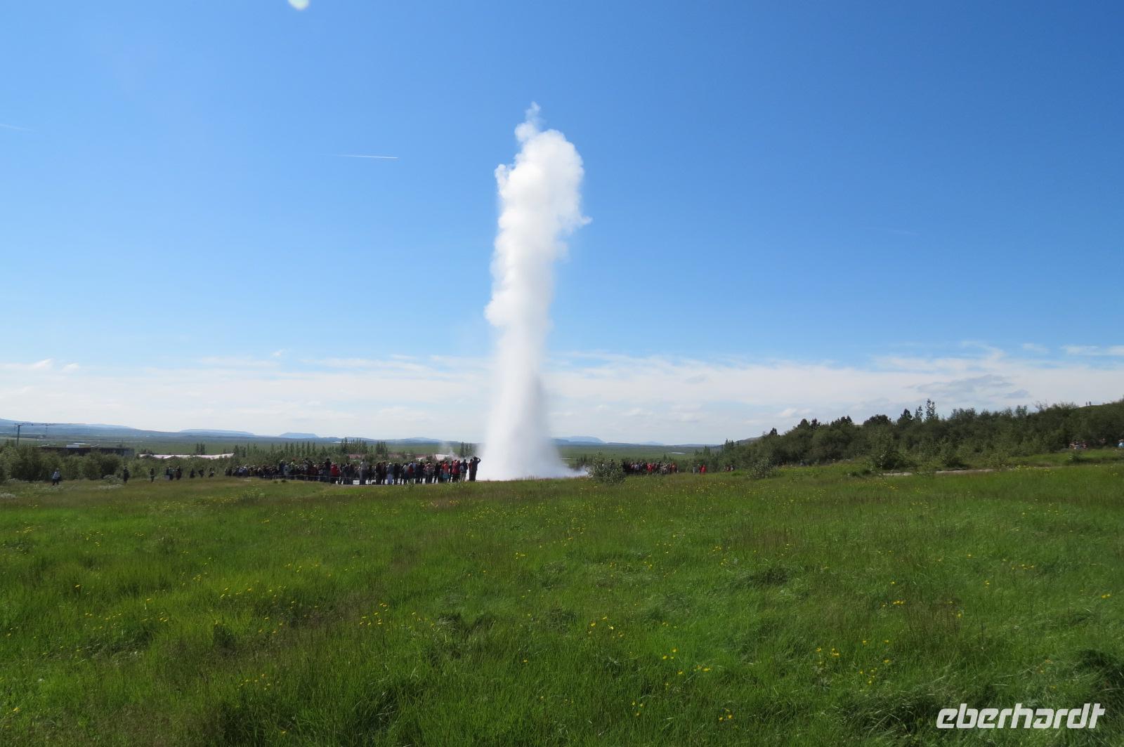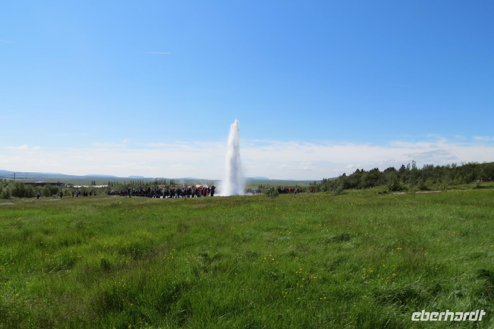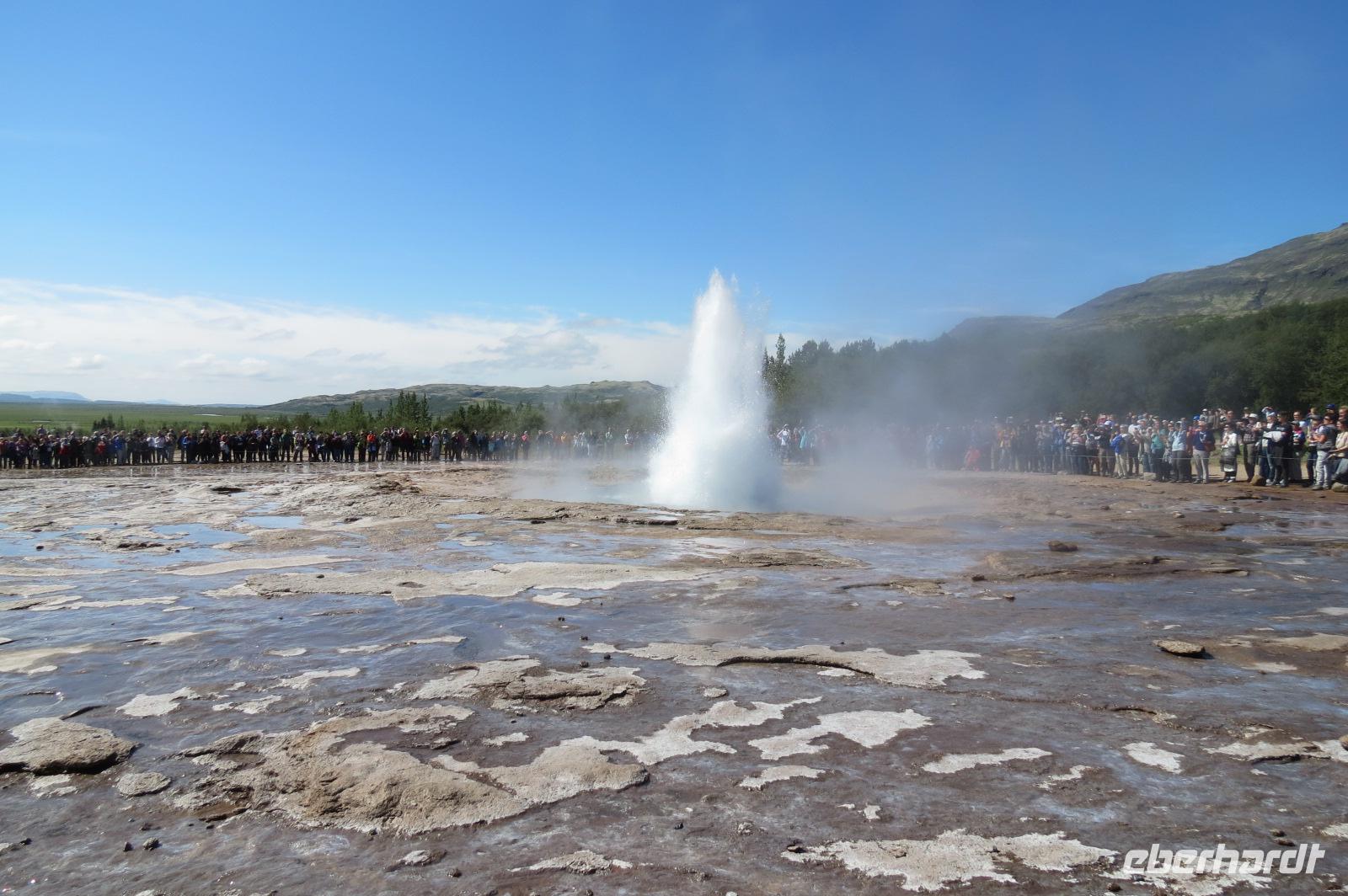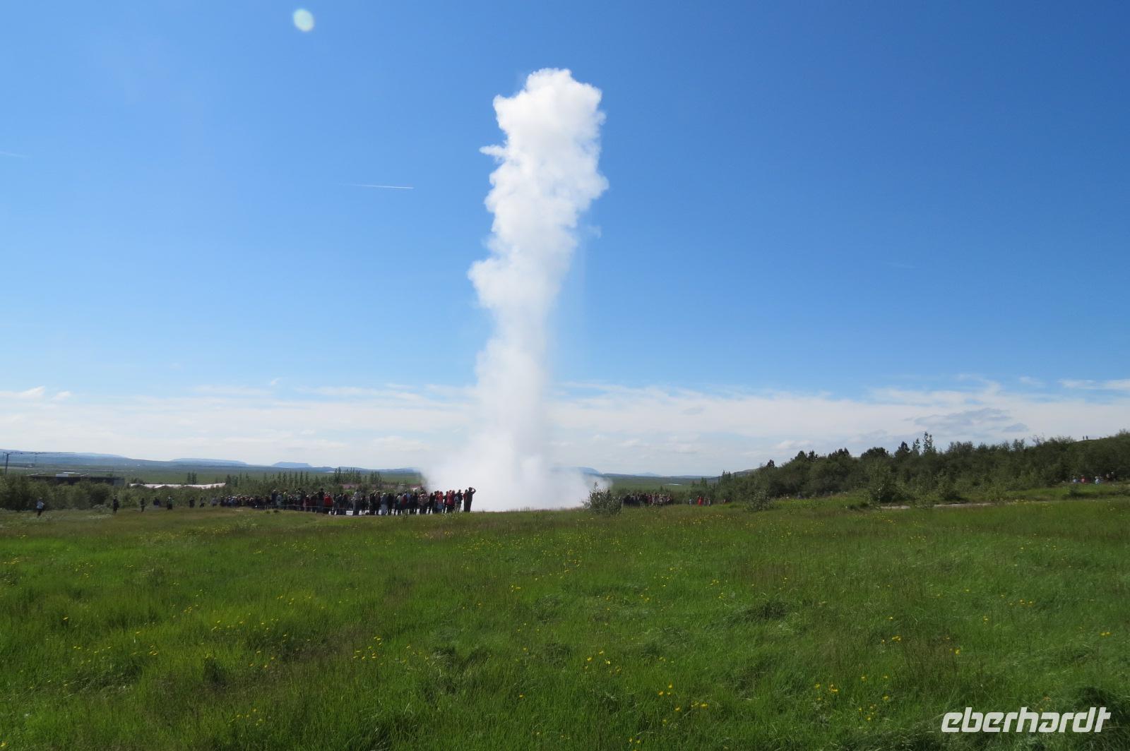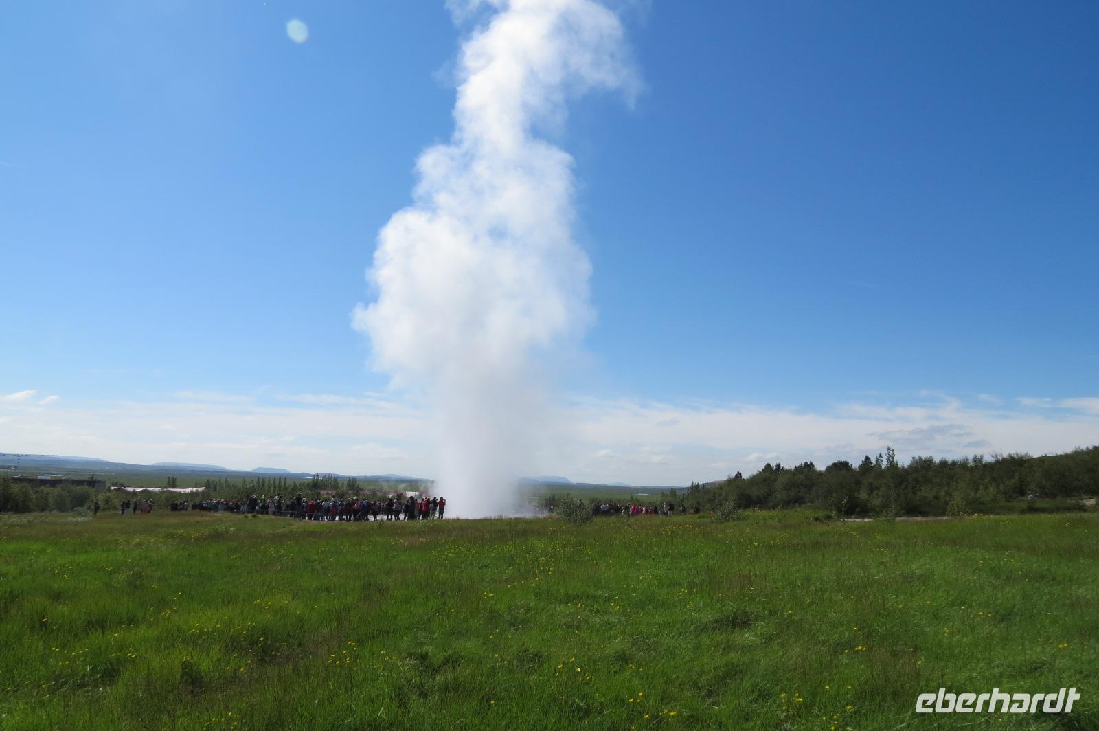 Gestern haben wir noch den kleinen Ort Ísafjörður erkundet, heute erreichen wir bereits Reykjavík. Übersetzt wird Reykjavík mit "Rauchbucht". Seine Bedeutung hat die isländische Hauptstadt wahrscheinlich aufgrund von den Dämpfen heißer Quellen der Umgebung und auch eines Irrtums des ersten Siedlers Ingólfur Arnarson erhalten. Reykjavík wurde erstmals 870 bevölkert und seit 1786 wird sie offiziell als Stadt bezeichnet. Bereits ab 06.00 Uhr besteht die Möglichkeit, im Buffet-Restaurant zu frühstücken, um 07.30 Uhr dann auch im "The Golden Lobster". Wir haben leicht bewölkten Himmel bei 13 bis 17 Grad. Für den Landgang ist die Mitnahme der Bordkarte ausreichend. Um 08.00 Uhr erreichen wir Reykjavík. Zu den interessanten Unternehmungen in der isländischen Hauptstadt und Umgebung zählt unter anderem der Besuch des goldenen Wasserfalls Gullfoss. Tatsächlich setzt er sich aus zwei Wasserfällen zusammen, der Obere ist elf Meter und der Untere rund 20 Meter hoch. Die Fallhöhe beträgt demnach insgesamt 31 Meter. Die Kanten sind aus harten Basaltlavaschichten, also aus grauem Gestein. Die Hvita-Schlucht verzeichnet eine Länge von 2,5 Kilometern und eine Tiefe von 70 Metern. Es gibt mehrere Theorien zur Namensgebung des Wasserfalls. Als Beispiel soll er seinen Namen davon erhalten haben, in dem oftmals abends die goldene Abendröte auf das Wasser gefallen ist. Seit 1979 stehen der Goldene Wasserfall und seine Umgebung unter Naturschutz. Über einen Pfad zu einer kleinen Plattform können die Gäste ganz nah die riesigen hinabstürzenden Wassermassen beobachten. Interessant ist sicher auch Hveragerði. Bei der Touristeninformation können Gäste unter dem Glas eine Erdbeben-Spalte sehen und es gibt auch eine kleine Ausstellung über das Erdbeben von 2008. Wer möchte, kann gern den Erdbeben-Simulator mit einer Richter-Skala von 6,6 für 200,00 ISK testen. Ein weiteres kleines Highlight ist der Schlackekrater Kerið. In dem rund 6.500 Jahre alten Krater mit einem Oval von circa 270 Metern mal 170 Metern und einer Tiefe von 55 Metern befindet sich türkisblaues Wasser. Ein Besuch lohnt sicherlich auch das Geothermalgebiet Haukadalur mit den bekannten Geysiren und heißen Quellen. Berühmtheit hat besonders der Namensgeber aller Springquellen erlangt, der Große Geysir. Es wird empfohlen, vorsichtig zwischen den heißen Quellen und Geysiren zu spazieren, da das Wasser eine Temperatur bis zu 100 Grad erreichen kann. Nicht weit entfernt befindet sich der Geysir Strokkur (Butterfass). Regelmäßig aller 10 bis 20 Minuten können die Gäste eine kochende 25 bis 35 Meter hohe Wasserfontäne bestaunen. Wer möchte, kann einen leicht steinigen Weg zu einem Aussichtspunkt hinauflaufen, von wo aus ein großartiger Blick über das ganze Geothermalgebiet geboten wird. Ungefähr 40 Kilometer nordöstlich von Reykjavík entfernt befindet sich die alte Parlamentsstätte Thingvellir (oder auch Þingvellir) und der gleichnamige Nationalpark. Sie liegt am mit rund 84 Quadratmeter größten natürlichen Binnensees Islands Þingvallavatn. Im Nationalpark können die Gäste die kleine Kirche des Örtchens Þingvellir erblicken und die Almannagjá (Allmännerschlucht) entlanglaufen. Die Schlucht bildet die Grenze zwischen Amerika und Europa, durch das Tal grenzt also die Amerikanische an die Eurasische Krustenplatte. Es gibt noch heute eine jährliche Auseinanderbewegung der Platten von rund zwei bis drei Zentimeter. Ein einmaliges Erlebnis ist sicherlich das Bad in der Blauen Lagune "Bláa Lónið". Dieses Thermalfreibad befindet sich rund 30 Minuten Busfahrt vom Flughafen Keflavík entfernt auf der Reykjanes-Halbinsel. Jeder der Badegäste erhält ein Armband zum Öffnen und Schließen der Schränke. Bevor ein entspanntes Bad im 37 bis 42 Grad heißen Thermalwasser aus Mineralsalzen, Kieselerde und Algen genossen werden kann, soll sich gründlich geduscht werden. Dafür sind Duschgel und Shampoo der eigenen Hausmarke "Blue Lagoon" für die Gäste kostenfrei und in ausreichender Menge vorhanden. Am Rand des Thermalfreibades befinden sich große Holzkästen mit weißem Schlamm aus Kieselerde, welches die Gäste als reinigende Gesichtsmaske auftragen können. Außerdem gibt es eine Bar mit Getränken mitten im Wasser. Um sich dort etwas zu kaufen, brauchen die Gäste einfach ihr Armband anlegen und sie bezahlen dann später bequem bei der Kasse am Ausgang. Durch den vorhandenen Nebel erscheint dem Gast die Blaue Lagune fast schon magisch und geheimnisvoll. Das Wasser hat erwiesenermaßen eine heilende Wirkung unter anderem gegen Schuppenflechte und andere Hautkrankheiten. Die blaue Farbe entsteht durch die Kieselsäure, welche besonders die blauen Strahlen bei Sonnenlicht zurückwerfen. In Reykjavík haben unsere Gäste abermals unterschiedliche Ausflüge gebucht. Zu empfehlen sind KEF02 "Der Goldene Zirkel", KEF03 "Bad in der Blauen Lagune und Panoramatour in Reykjavík", KEF06 "Geothermalfeld von Krysuvik und Blaue Lagune", KEF11 "Mondlandschaften: Krater und heiße Quellen" und KEF14 "Pazifischer Feuerring". Während die Gäste die Umgebung von Reykjavík entdecken, unternimmt die Reisebegleitung einen ausführlichen Stadtrundgang in Vorbereitung auf den morgigen Tag. Die MSC bietet gegen Aufpreis einen Bus-Shuttle-Service an. Ein Tagesticket kostet 22,90 Euro pro Erwachsener und 15,90 Euro pro Kind. Der Preis für ein Kombi-Ticket für zwei Tage beträgt 29,90 Euro pro Erwachsener und 19,90 Euro pro Kind. Auf dem Weg von der Anlegestelle der MSC Preziosa zum Konzerthaus Harpa im Stadtzentrum ist das weiße Höfði-Haus zu sehen. In jenem Haus haben sich Ronald Reagan und Michail Gorbatschow 1986 zum Islandgipfel getroffen. Zudem fahren wir an der von Jón Gunnar Árnason entworfenen Skulptur "Solfar" vorbei, welche 1990 enthüllt wurde und eine "Ode an die Sonne" darstellen soll. Ihre Form erinnert an ein Wikinger-Schiff und sie soll ein Symbol für Freiheit, Hoffnung und unentdecktes Land sein. 
