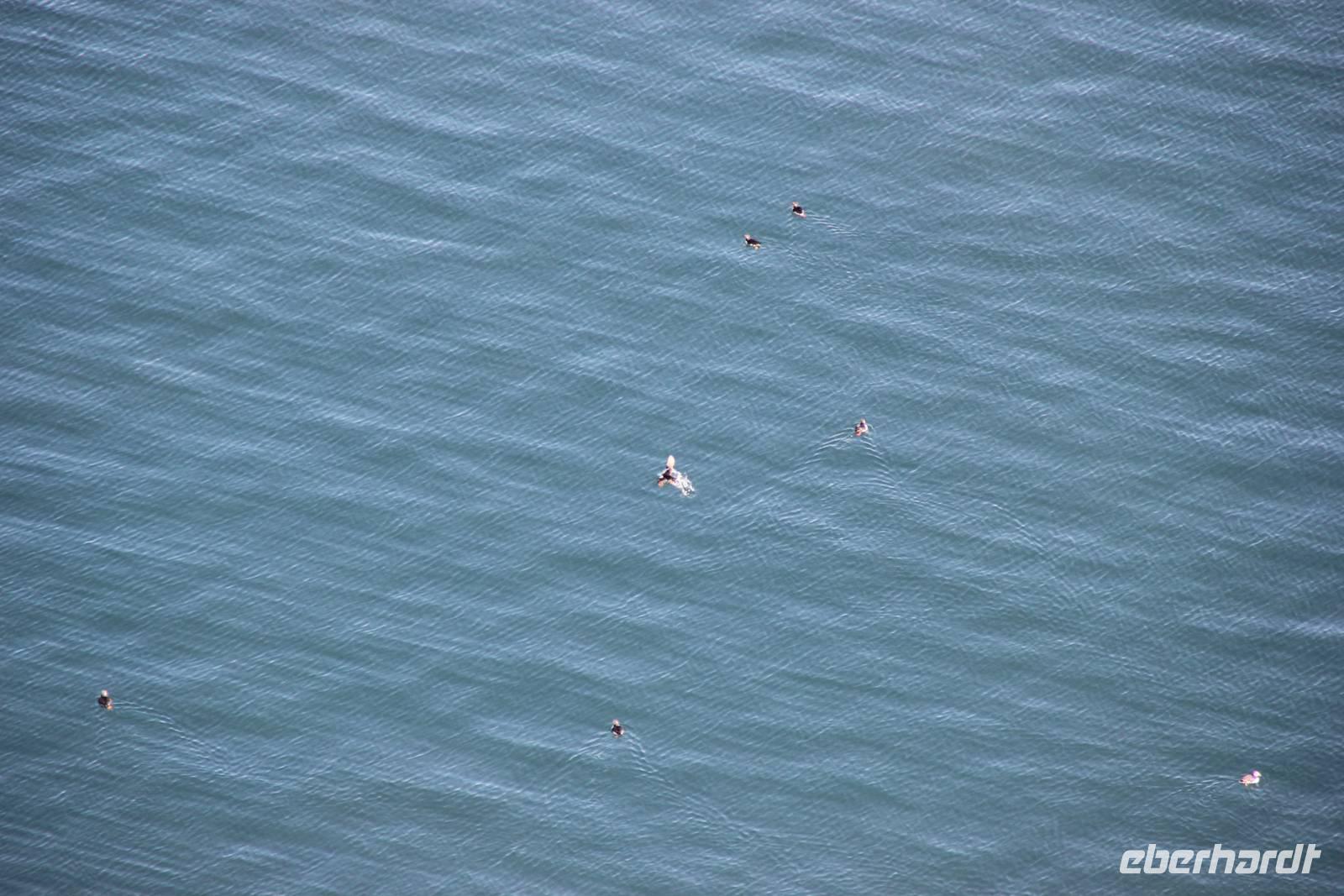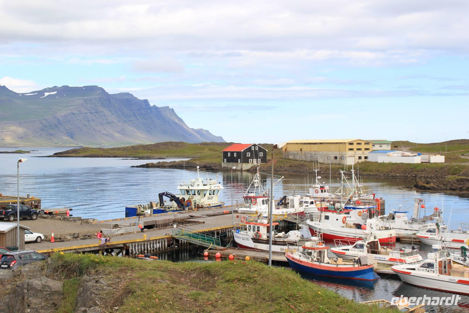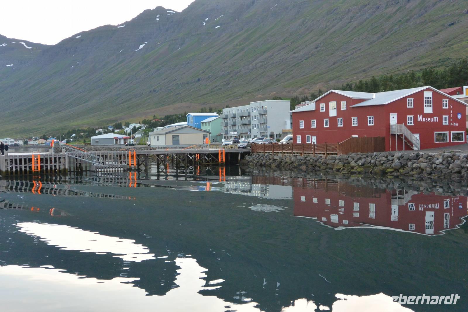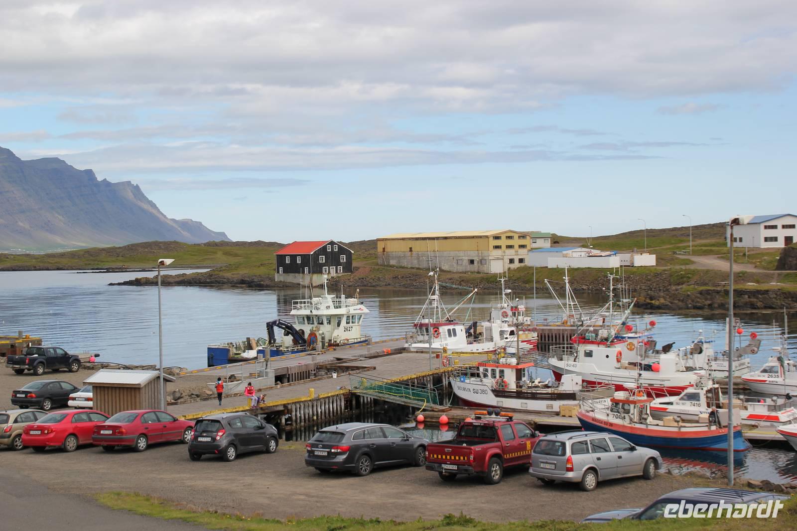 Wir haben einen langen Tag mit vielen Programmpunkten vor uns und nach einem reichhaltigen Frühstück und einer kleinen Suchaktion eines vermissten Handys geht es dann auch los. Wir haben Glück am Myvatn, den Mückensee. Auf Grund des Windes haben wir keine Probleme mit den Namensgebern. Während eines kleinen Spazierganges erkunden wir die Gegend der Pseudokrater welche durch den Fluss frischer Lava über dieses Feuchtgebiet entstanden sind. In der Ferne sieht man Islandpferde am See grasen, Enten haben hier ihren Lebensraum gefunden, insgesamt sogar 16 verschiedene Arten. In einem kleinen Souvenirshop entdecken wir das ein oder andere Mitbringsel oder gehen unseren Bedürfnissen nach ? Danach fahren wir in das bizarre Gebiet der Lava-Landschaft Dimmuborgir und versuchen in den Lavaformationen Troll-Gesichter zu entdecken. An einem Loch in den Formationen machen wir einen spontanen Fotostopp und lassen unsere Wink-Elemente kreisen und entdecken sogar hier und da einen essbaren Pilz, was unter den Pilzfreunden in der Reisegruppe zu spontaner Sammellust führt. Weiter geht die Fahrt zur Entspannung in die Badelandschaft Jardbödin. Sie ist das Gegenstück zur Blauen Lagune im Westen. Es riecht am Anfang etwas streng aber nach einiger Zeit gewöhnt man sich daran. Wir lassen uns im warmen, stellen weise sogar zu heißen, milchig weißen Wasser umhertreiben, umgeben von schwarzen Lavasteinen ein besonderes Erlebnis. Viel zu schnell müssen wir wieder aus diesem entspannenden Bad und es geht ein kleines Stück weiter zu einem Fotostopp, an dem man nochmal den Blick über das Thermalbad und der angrenzenden Lavalandschaft genießen kann. Wir setzen unsere Fahrt in das Hochtemperaturgebiet Namaskard fort, auch umgangssprachlich die Hexenküche genannt. Wieder sind wir von Schwefelgeruch umgeben, welche r durch die aufsteigenden Gase kommt. Es ist ein beeindruckendes Naturschauspiel, in Gelb-, Orange- und Brauntönen. Dass die Erde lebt, bekommt hier eine völlig neue Bedeutung. Noch beeindruckt von diesem Naturerlebnis geht unsere Reise zum nächsten überwältigten Naturereignis: dem Dettifoss. Er ist der der leistungsstärkste Wasserfall Europas und das merken wir alle, als wir vor ihm stehen. Die grauen Wassermassen stürzen sich in eine Tiefe von bis zu 45 Metern. Genau hier wurde auch die Anfangssequenz von dem Film Prometheus gedreht. Nachdem alle am Bus eingetroffen sind, wird eine Runde typisch isländischer Trockenfisch probiert. In Butter getunkt eine recht interessante Mahlzeit ? Einen weiteren kulinarischen Zwischenstopp gibt es im höchstgelegenen und abgelegensten Bauernhof von Island - auf dem Hof Mödrudalur. Wir probieren die isländischen Liebeshoden und genießen den Ausblick und die Ruhe in 470 Meter Höhe. Nach einer interessanten Fahrt durch die karge Wüstenlandschaft erreichen wir die Berge an den Ostfjorden. Unser Busfahrer Olaf meistert die vielen engen Serpentinen in den Bergen und wir erreichen am Abend unser Edda Hotel in Neskaupsstadur. Wir sind restlos begeistert. Diese Idylle ist perfekt nach einem so ereignisreichen Tag. Wir genießen das Abendessen und lassen im Anschluss die Seele baumeln. Ob mit Decke am Fjord oder als Spaziergang im Ort - jeder genießt die Ruhe in Neskaupsstadur auf die eigene Weise. Es wird sogar erzählt, dass eine Elfenhochzeit direkt am Wasser beobachtet wurde ?