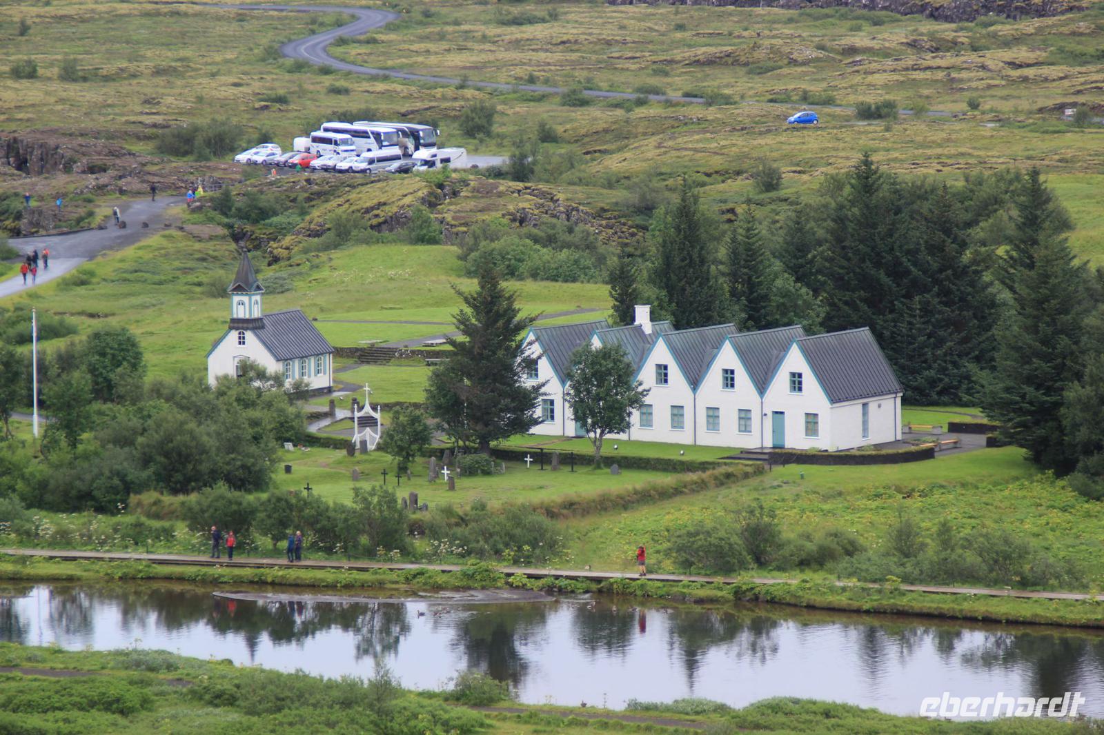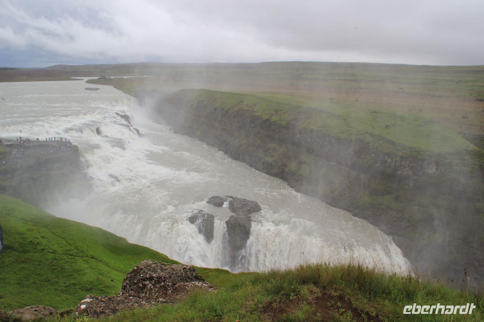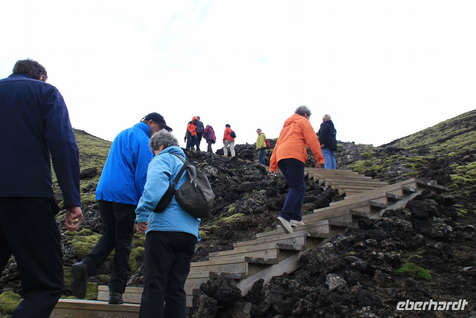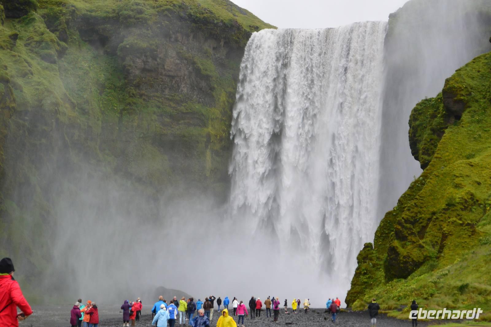 Das Wetter wird zunehmend schlechter aber für Museumsbesuche ist es perfekt. So fahren wir nach Skogar ins Freilichtmuseum, erfahren viel über die Lebensweisen in der Vergangenheit und können uns bei den alten Torfhäusern selbst ein Bild von früher machen. Wir fahren weiter zum Skogafoss, einem 60 Meter hohen Wasserfall, in dem eine Goldkiste versteckt sein soll. Weiter entlang der Küste geht es in das Gebiet des Vulkanausbruches von 2010. Wo sich der für jeden leicht auszusprechende „Eyjafjallajökull" befindet. Dieser hatte damals weite Teile dieses Landstriches mit einer dicken Schicht von Asche und Schlamm bedeckt und mit seiner riesigen Aschenwolke den Flugverkehr in Europa lahm gelegt. Wir alle können uns noch sehr gut an diese Zeit erinnern. Bei einem Film in einem Besucherzentrum sehen wir wie eine isländische Bauernfamilie dieses Ereignis erlebt und nach der Katastrophe ihren Bauernhof wieder zum Leben erweckt hat. Ein toller Film, der uns mit spektakulären Bildern begeistert. Der nächste Wasserfall steht auf dem Plan. Der Seljalandsfoss. Das besondere an ihm ist, dass man hinter ihm durch laufen kann. Ich drehe schnell eine Runde und dann schnell zurück zum Bus, denn der letzte Wasserfall dieser Reise wartet auf uns. Der Gullfoss - der Goldene Wasserfall. Wir nutzen die Zeit auch gleich für einen Mittagssnack. Danach geht die Fahrt weiter zum berühmten Geothermalgebiet „Geysir". Hier befindet sich auch der „Alte Geysir", der weltweit als Namensgeber für alle Springquellen gilt. Dieser ist jedoch schon fast ausgestorben, da sich das Wasser abkühlt und es zu keinen „Wasserausbrüchen" mehr kommt. Hier erklärt uns Rosá auch wie es zu solchen Explosionen kommt. Gemeinsam gehen wir zum Strokkur (auch als Butterfass bezeichnet), dem größten aktiven Geysir in diesem Gebiet, der ca. aller 5 min eine 10 bis 20 m hohe Wassersäule in den Himmel schießt. Schon nach kurzer Zeit sehen auch wir die Wasserkugel und die anschließende Wasserfontäne. Beeindruckt von diesem Naturphänomen versuchen wir diese auch auf einem Foto festzuhalten, was dem ein oder anderem mehr oder weniger gut gelingt. Danach fahren dann weiter nach Thingvellir in eine Driftzone zwischen der amerikanischen und der eurasischen Kontinentalplatte, die an jeder Seite von einer großen Abbruchspalte begrenzt ist. Die Platten sind inzwischen schon ca. 2 ½ km voneinander entfernt, was auch dazu führt, dass Island, welches geologisch gesehen noch ein junges Land ist, um ca. 1 bis 2 cm pro Jahr wächst. Zu Fuß gehen wir zum Thingfeld, wo früher das erste Parlament von Island tagte und u. a. die Einführung des Christentums beschlossen wurde und die Republik ausgerufen wurde. Wir schießen ein tolles Gruppenfoto an diesem bedeutenden Ort. Wieder im Bus angekommen übergeben wir Rosa und Olaf unser Trinkgeld als Dankeschön für die tolle Begleitung auf dieser Rundreise. Auf dem Weg nach Kevlavik durchfahren wir Reykjavik. Da wir sehr gut in der Zeit liegen machen wir zur Freude aller einen zusätzlichen Fotostopp bei Perlan. Dies ist eine Glaskuppel, welche sich auf 6 Heißwassertanks befindet. Da sich diese Kuppel auf dem Hügel Öskjuhlid thront, haben wir einen tollen Ausblick über die Stadt, die Faxafloi-Bucht und die Stadt. Wir fahren nach Kevlavik und verabschieden uns von unseren Begleitern Rosa und Olaf und nach einem gemeinsamen Abendessen gehen alle auf ihre Zimmer.