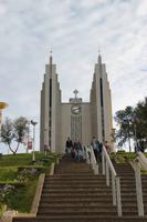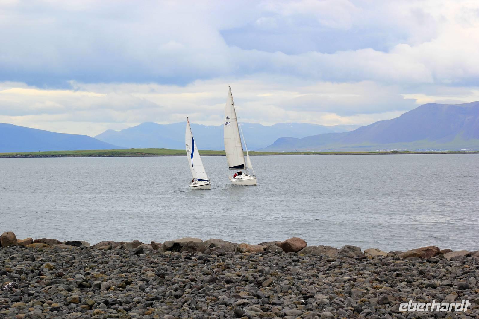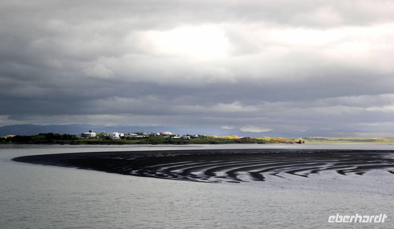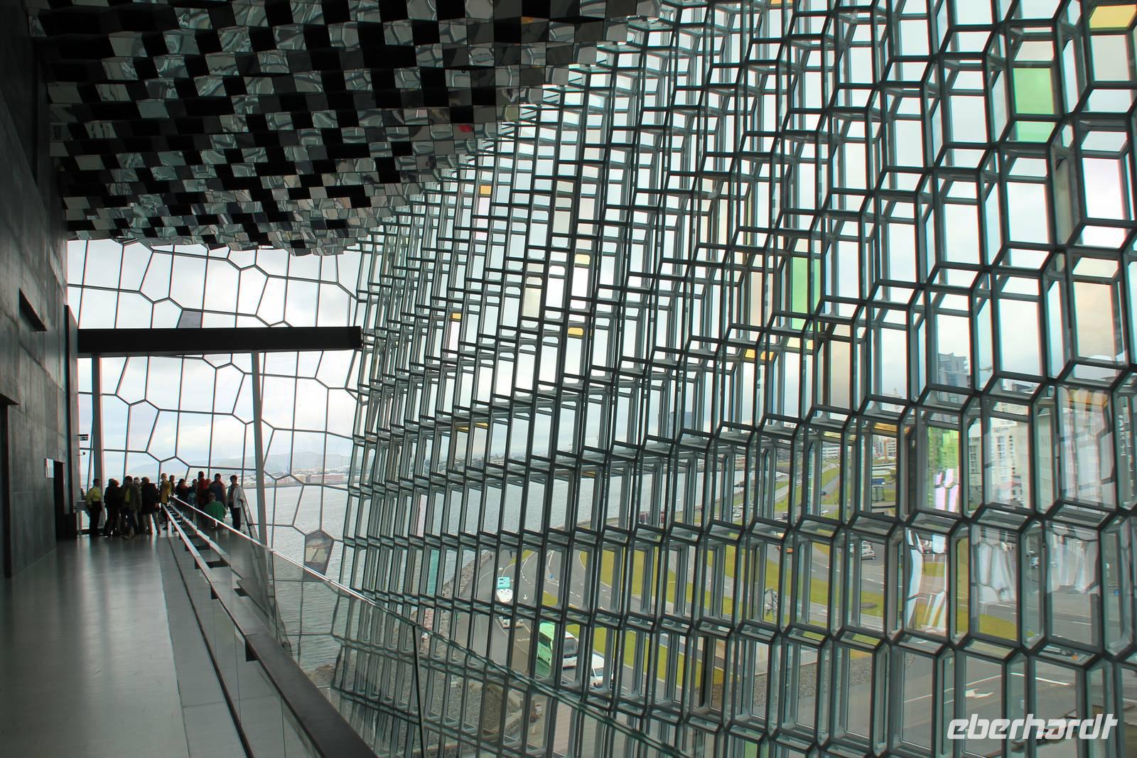 Wir treffen uns pünktlich auf dem Berliner Flughafen Schönefeld und fliegen bei schönem Wetter mit einer voll besetzten Maschine nach Keflavik. Dort angekommen tauschen wir unser Geld und treffen uns mit unserer Reiseleiterin Rosa. Auf dem Weg in die nördlichste Hauptstadt Europas, Reykjavik, bekommen wir einen ersten kleinen Eindruck von Island - zerklüftete Lavalandschaft, kaum Vegetation, heiße Quellen und das kalte Meer. In Reykjavik erhalten wir auf dem Weg zum Hotel eine kleine Stadtrundfahrt und können uns so ein wenig orientieren. Die Zeit bis zum Abendessen nutzen wir, uns in Reykjavik ein wenig näher umzuschauen. Unser Weg führte uns zu der Konzerthalle Harpa, welche durch ihre eindrucksvolle Glasfassade besonders auffällt. Wir genossen die Atmosphäre in der riesigen Eingangshalle bei einem Kaffee oder Tee und die Reisegruppe kommt sich in ersten Gesprächen näher. Der Weg führte uns weiter zum Sonnenschiff Solfar, eine Skulptur in Form eines stilisierten Wikingerschiffes direkt am Meer. Im Hotel treffen wir auf einen weiteren Reisegast, der schon einen Tag früher angereist war. Gemeinsam gehen wir in ein örtliches Restaurant, wo uns ein sehr gutes 3-Gänge-Menü erwartete. Trotz des Regenwetters unternahmen anschließend einige einen kleinen Verdauungsspaziergang in das Zentrum von Reykjavik und zur Hallgrimskirche, das zweithöchste Gebäude des Landes. Wir schauen noch schnell ins Innere, laufen danach zum Hotel zurück und verbringen unsere erste Nacht im Hotel.