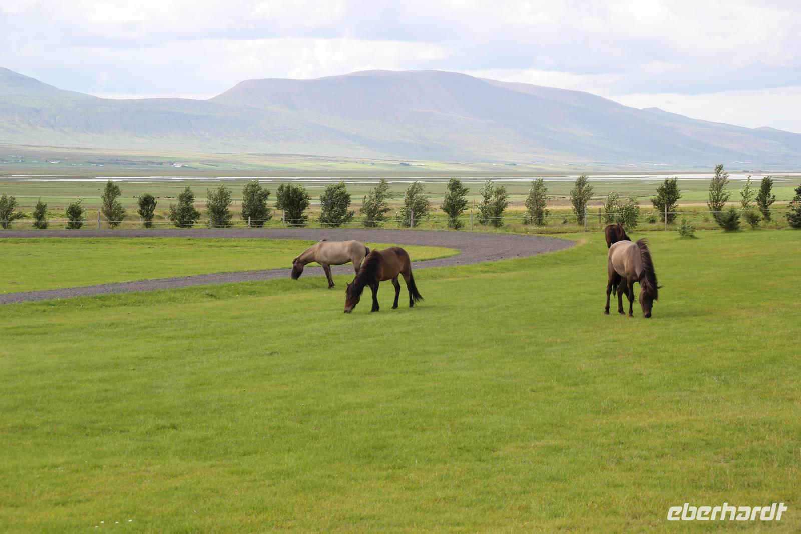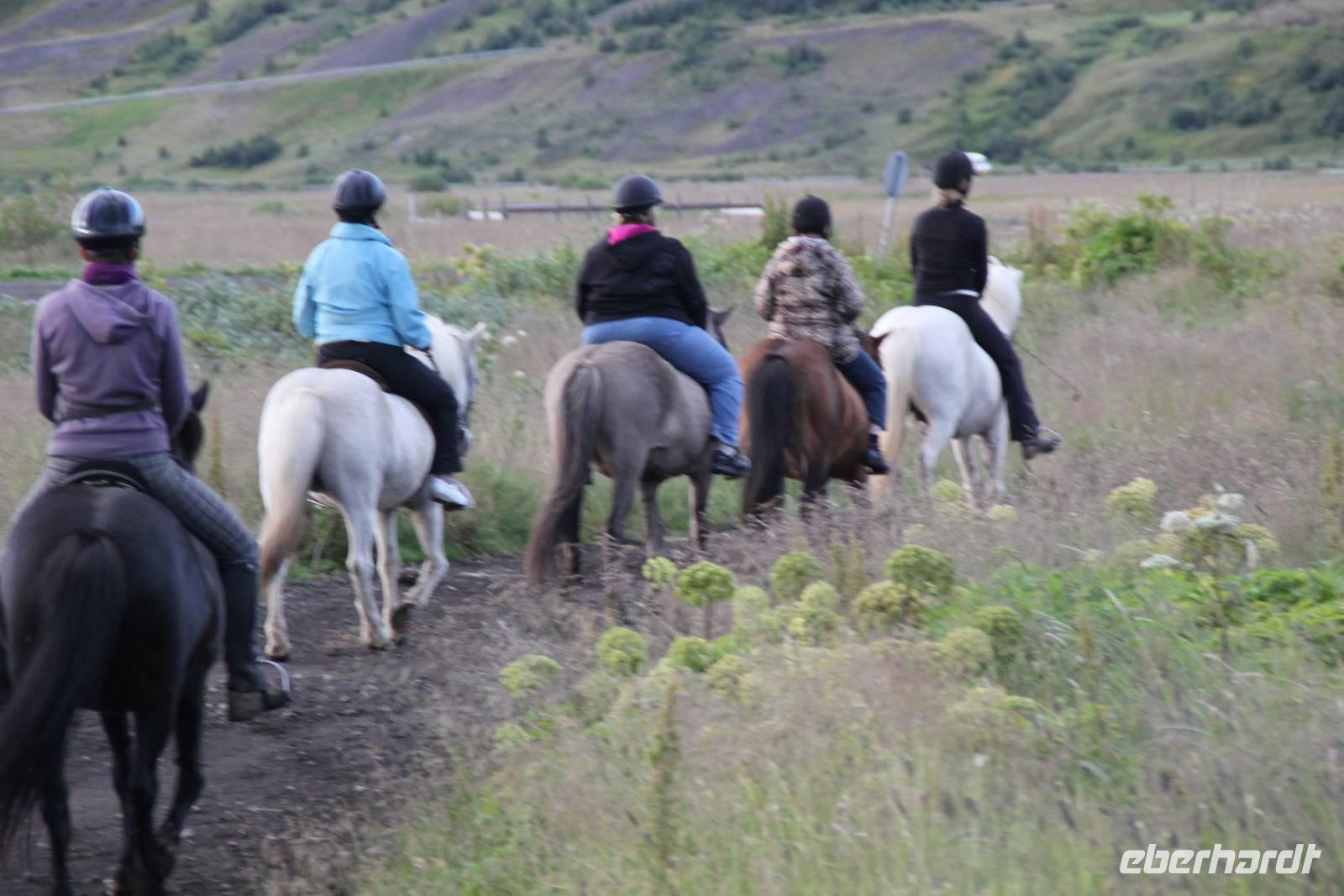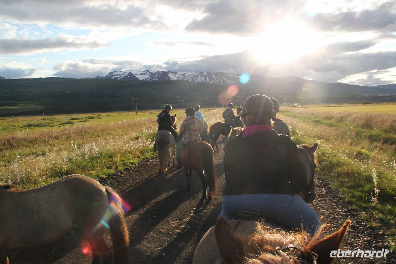 Am Abend gibt es für acht unserer Reisegäste einen besonderen Ausflug auf Islandpferden. Hoch zu Ross genießen wir in der wieder aufgetauchten Sonne die angrenzenden Berge. Zurück im Hotel lassen wir alle bei einem Gläschen den Tag Revue passieren.