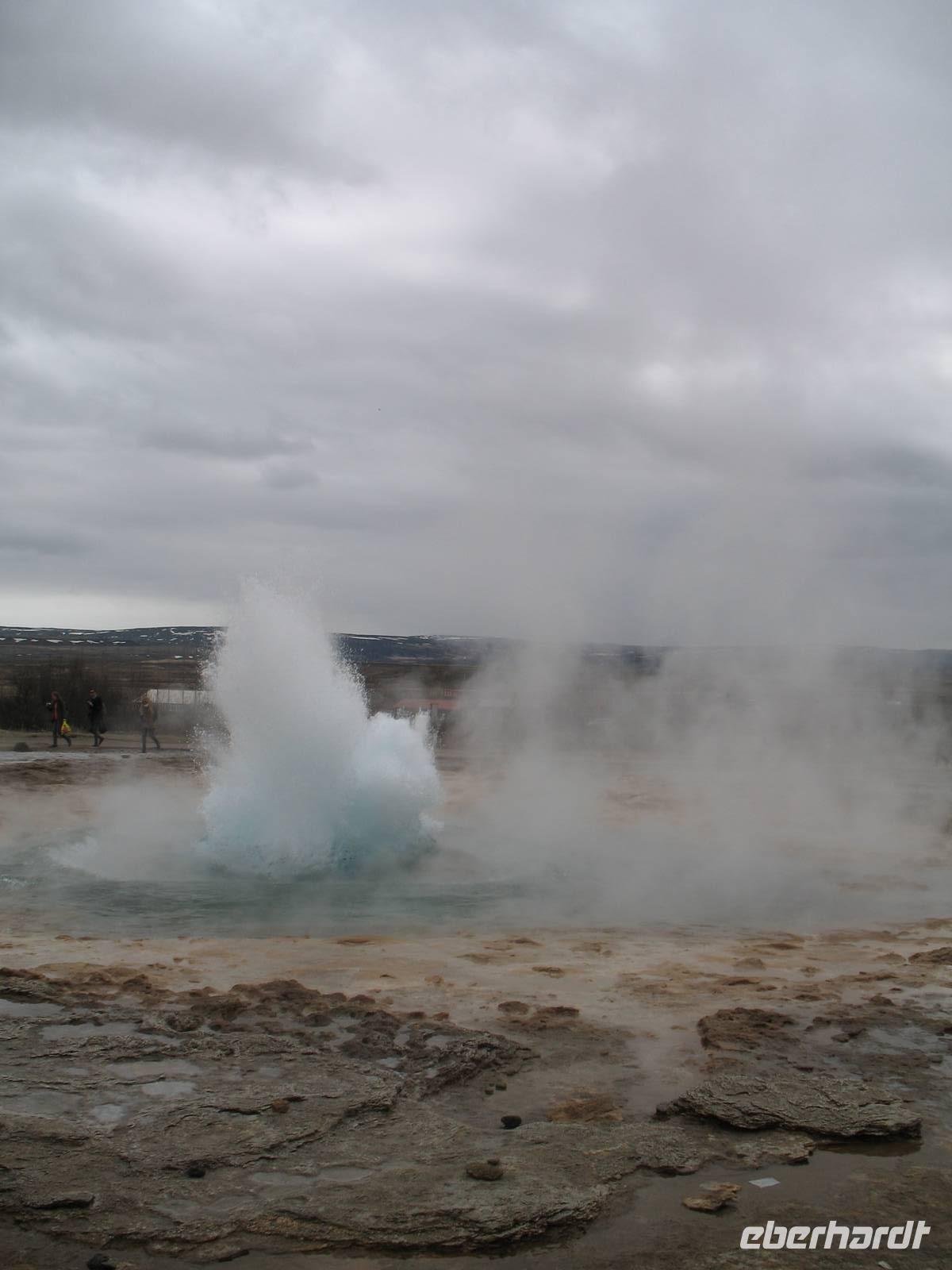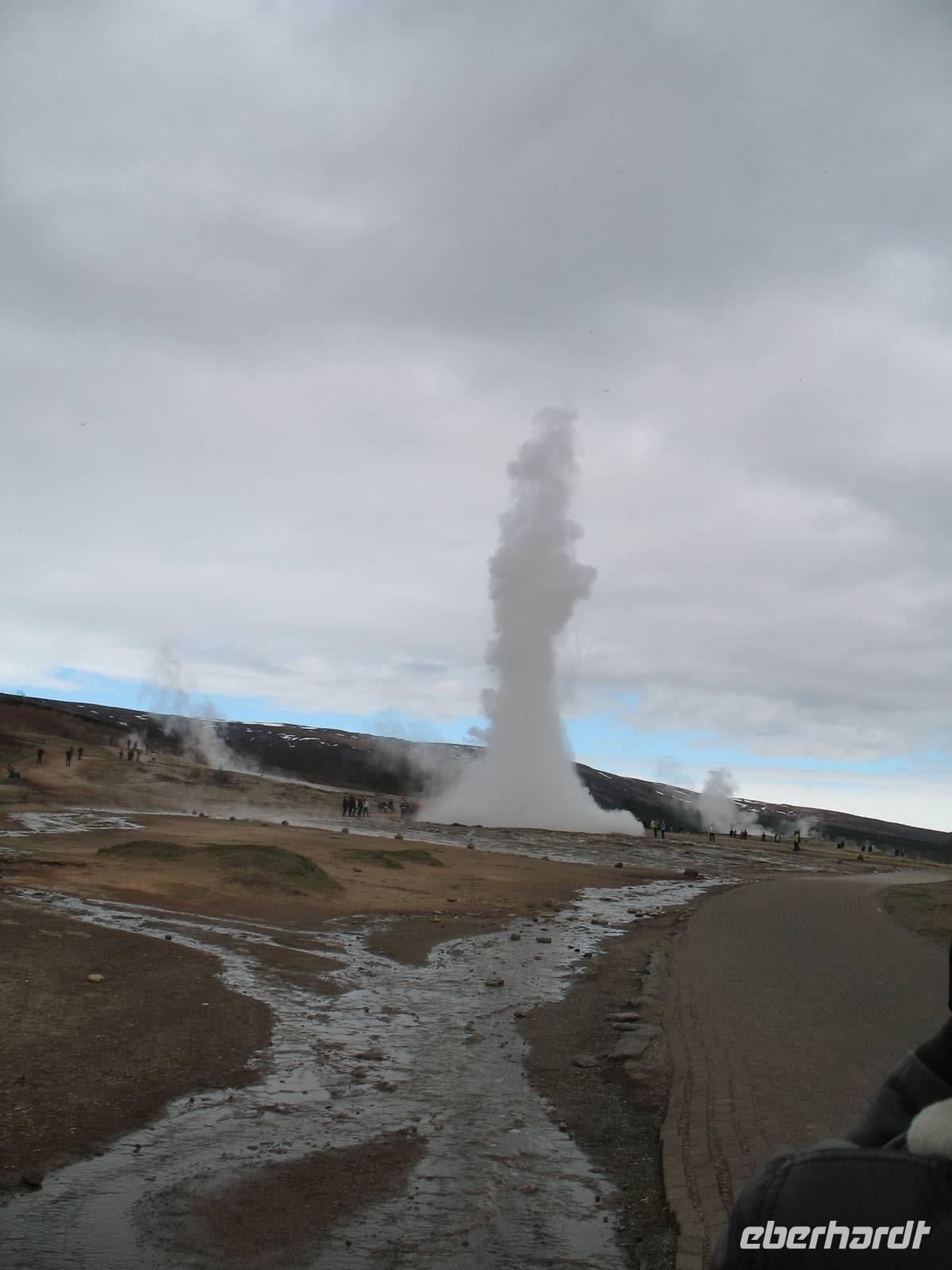 In unserer ersten Nacht in Island bekommen wir ausreichend Schlaf und nach einem leckerem ausgiebigen Frühstück starten wir zur nächsten Etappe unserer spannenden Schnuppertour - Der berühmte "Goldene Kreis". Wir werden von Berglind und unserem Busfahrer vom Vortag abgeholt. Die Mutter von Berglind ist gebürtige Isländerin und ihr Vater ist Österreicher. Sie spricht ein sehr gutes Deutsch und wir freuen uns schon, dass sie uns die kommenden Tage von Island verzaubern wird. Am Vormittag besichtigen wir die ungefähr 40 Kilometer nordöstlich von Reykjavík entfernte alte Parlamentsstätte Þingvellir und den gleichnamigen Nationalpark. Sie liegt am mit rund 83 Quadratmetern größten Binnensees Islands. Wir erblicken auch die Kirche des kleinen Ortes Þingvellir. Dann laufen wir die Allmännerschlucht entlang. Sie bildet weitestgehend die Grenze zwischen Amerika und Europa, also durch das Tal grenzt die Amerikanische an die Eurasische Krustenplatte. Es gibt heute noch eine Auseinanderbewegung der Platten von jährlich rund ein bis zwei Zentimeter. Berglind erläutert uns die geschichtlichen Besonderheiten der alten Parlamentsstätte. Unser Tagesprogramm führt uns weiter zum Goldenen Wasserfall "Gulfoss", einer der größten isländischen Wasserfälle. Auf dem Weg halten wir an einer kleinen Quelle, ein Geheimtipp unseres Busfahrers In Plastikbechern können wir dann das klare und saubere Wasser probieren. In Island kann ohne Bedenken Wasser aus allen Wasserhähnen getrunken werden, da es reines Gletscherwasser ist. Gegen 11.45 Uhr erreichen wir den Gulfoss, wo wir auch unsere Mittagspause verbringen. Wir gönnen uns einen kleinen Imbiss und schauen nach den ersten Souvenirs für unsere geliebten Daheimgebliebenen. Danach bestaunen wir den Gulfoss. Tatsächlich setzt er sich aus zwei Wasserfällen zusammen, der Obere ist elf Meter und der Untere rund 20 Meter hoch. Die Fallhöhe beträgt demnach insgesamt 31 Meter. Die Kanten sind aus harten Basaltlavaschichten. Die Hvita-Schlucht verzeichnet eine Länge von 2,5 Kilometern und eine Tiefe von 70 Metern. Es gibt mehrere Theorien zur Namensgebung des Wasserfalls. Als Beispiel soll er seinen Namen erhalten haben, in dem abends oftmals die goldene Abendröte auf das Wasser fällt. Seit 1979 stehen der Goldene Wasserfall und seine Umgebung unter Naturschutz. Über einen Pfad gelangen wir zu einer kleinen Plattform und können die riesigen hinabstürzenden Wassermassen ganz nah beobachten. Aber unser nächstes Highlight wartet schon auf uns, so dass wir unsere Busfahrt zum Geothermalgebiet Haukadalur mit den bekannten Geysiren und heißen Quellen fortsetzen. Bekanntheit erlangte besonders der Namensgeber aller Springquellen, der Große Geysir. Wir spazieren vorsichtig zwischen den heißen Quellen und Geysiren, da das Wasser eine Temperatur von bis zu 100 Grad erreichen kann. Nicht weit entfernt befindet sich der Geysir Strokkur, welcher übersetzt Butterfass bedeutet. Regelmäßig aller zehn bis zwanzig Minuten können wir eine kochende 25 bis 35 Meter hohe Wasserfontäne bestaunen. Einfach ist es nicht, aber dennoch gelingt es uns, schöne Fotos vom Wasserausbruch festzuhalten. Bevor wir zurück zum Hotel nach Reykjavík fahren, nutzen wir die Gelegenheit unter anderem für einen kleinen Kaffee im Selbstbedienungsrestaurant oder zum Stöbern im Souvenirshop. Auf unserer Weiterfahrt unternehmen wir zwei Foto-Stopps, einerseits beim eher weniger bekannten Wasserfall Faxi und dann beim Schlackekrater Kerið. In den rund 6.500 Jahre alten Krater mit einem Oval von circa 270 Metern mal 170 Metern und einer Tiefe von 55 Metern können wir sehr tief hineinschauen und sehen das türkisblaue Wasser. Gegen späten Nachmittag erreichen wir unser Hotel und entspannen bis zum gemeinsamen Abendessen im Restaurant "Potturinn & Pannan". Es gibt ein leckeres 3-Gänge-Menü mit landestypischen Nachtisch "Skyr cake". In isländischen Restaurants ist es üblich, dass das Wasser kostenfrei ist. Im Anschluss spaziert eine kleine Gruppe noch die rund 30 Minuten zum Hafen und zur Altstadt von Reykjavík. Den Abend lassen wir gemütlich bei Wein und Bier im "Café Paris" ausklingen.
