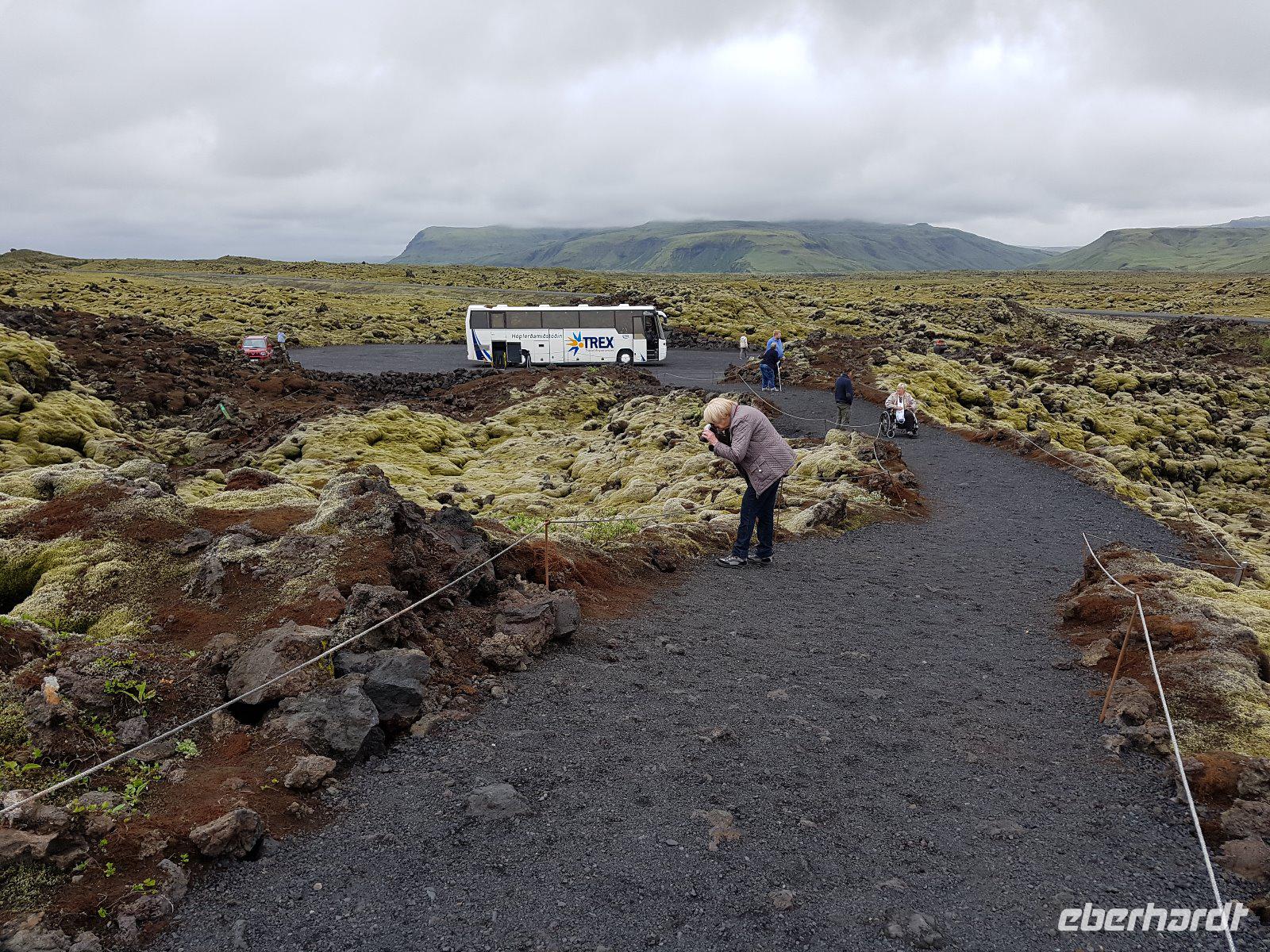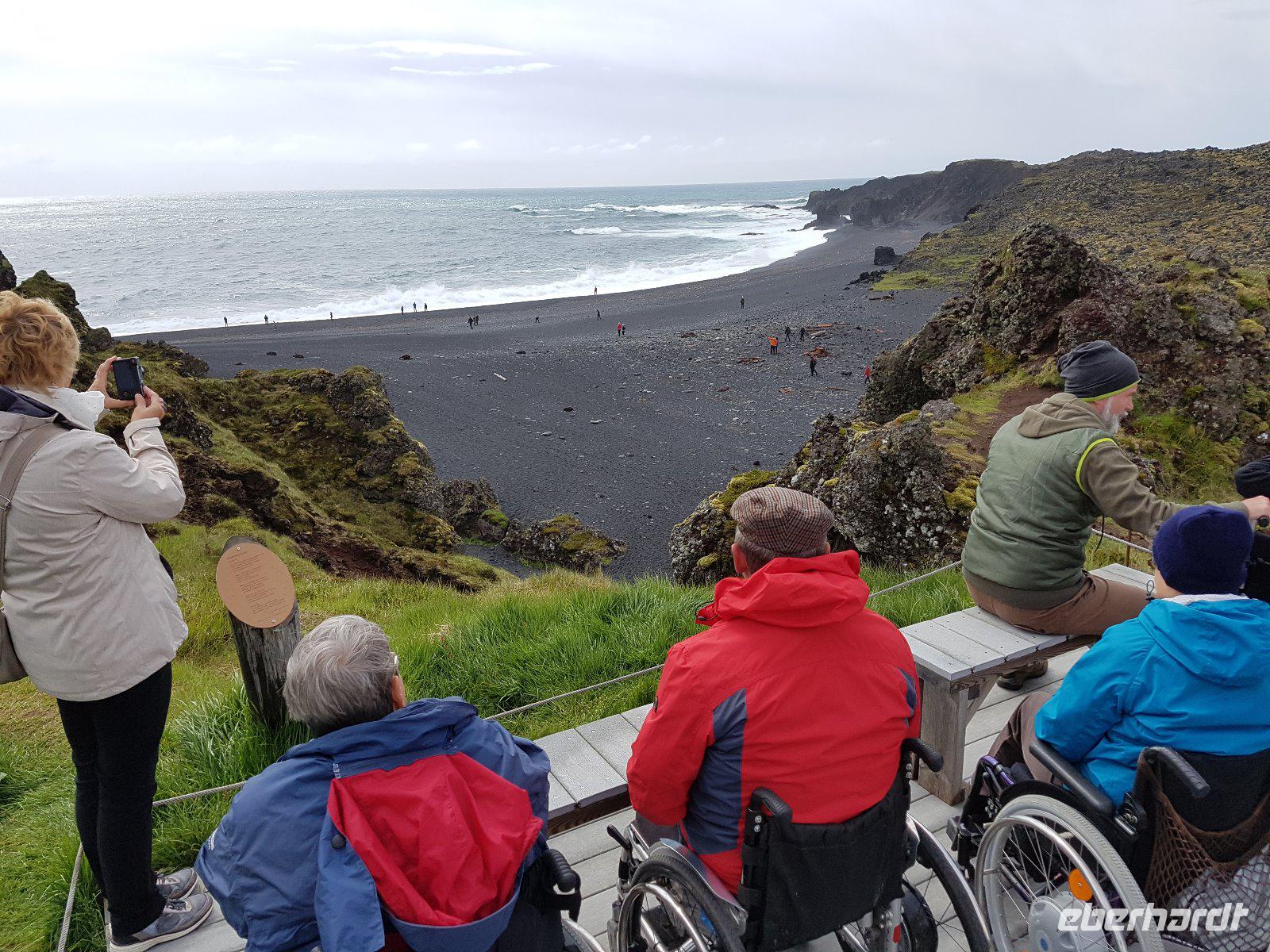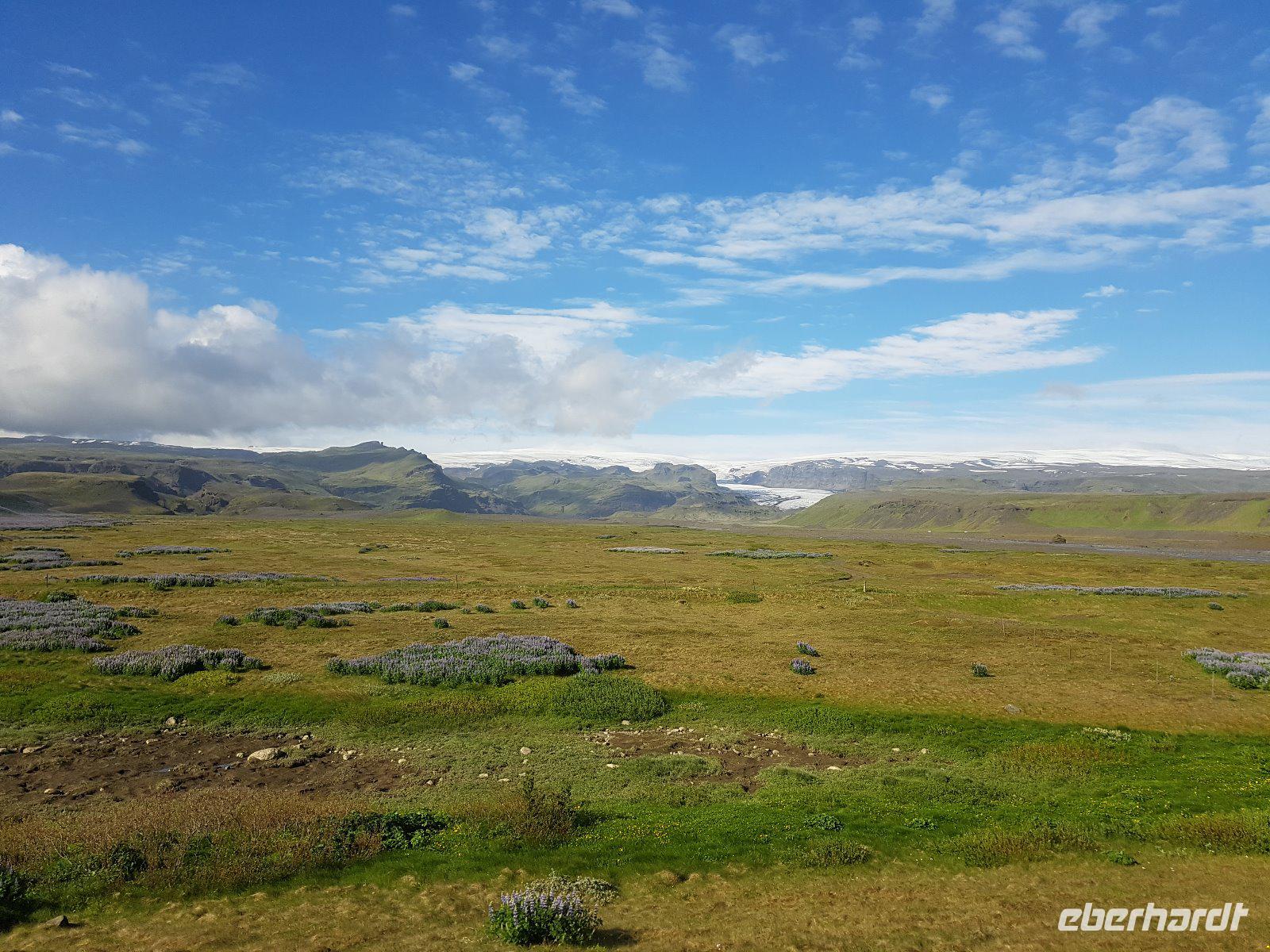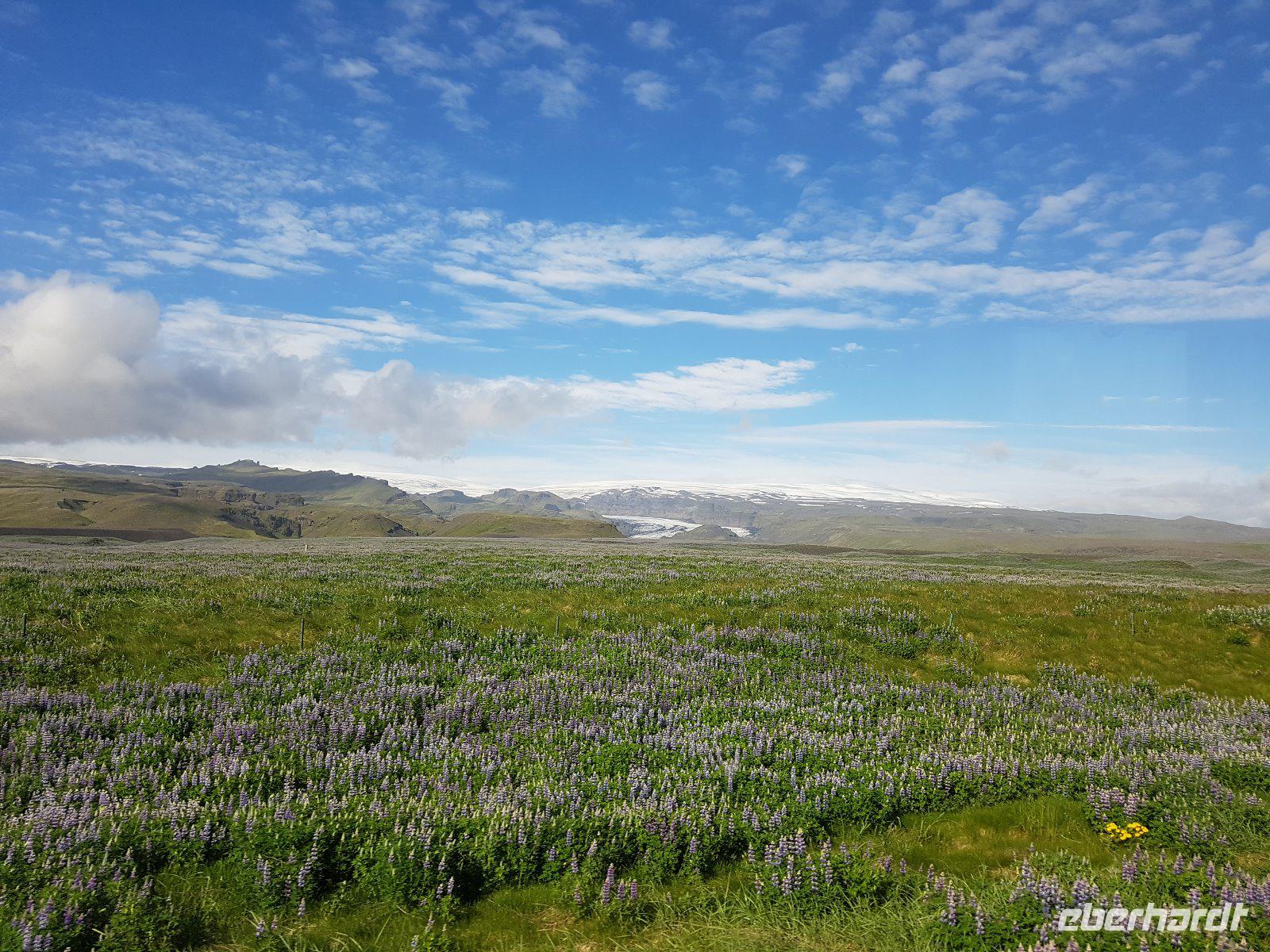 Im bequemen behindertengerechten Reisebus, wie ihn viele unserer Gäste auch als Transportmittel für die EHT Busrundreisen ab /an Dresden kennt geht es dann los Richtung Vik. Die Straße führt entlang der Südküste und läßt so erste spektakuläre Ausblicke zu. Besonders die gerade flächendeckend blühenden Alaska-Lupinen begeistern uns.