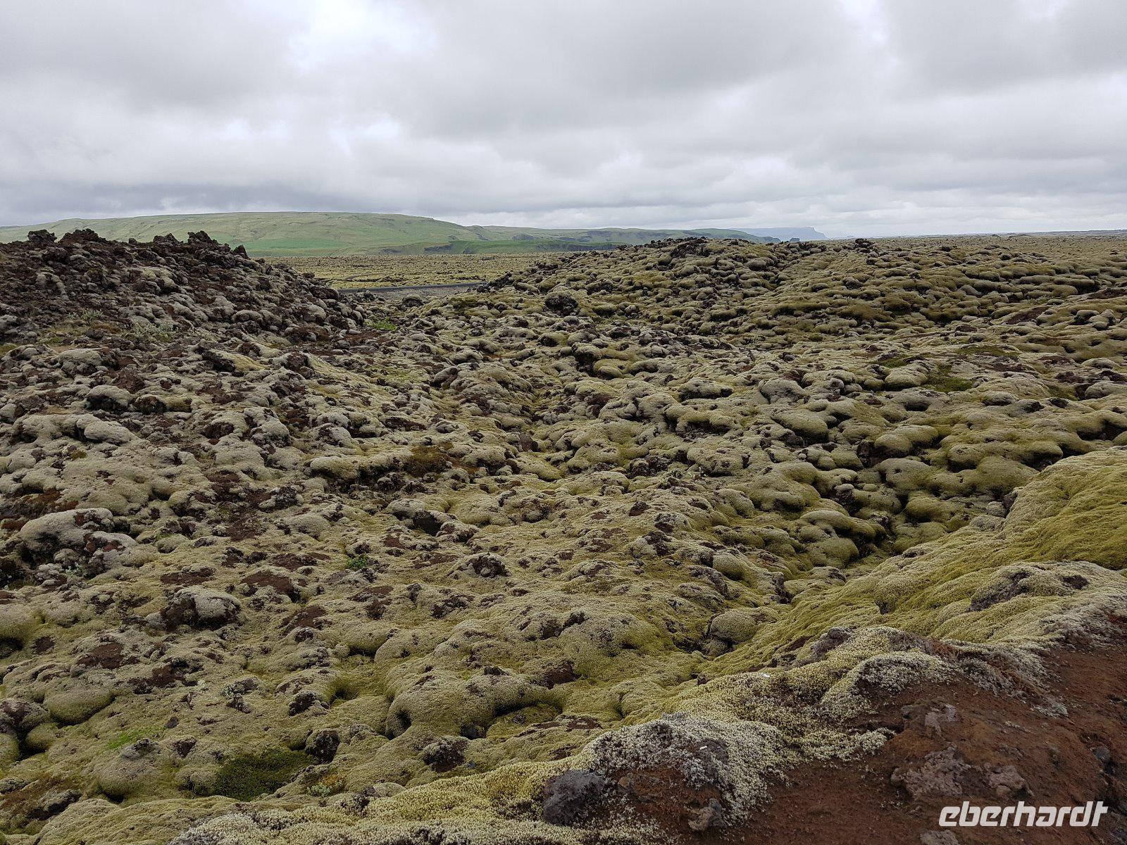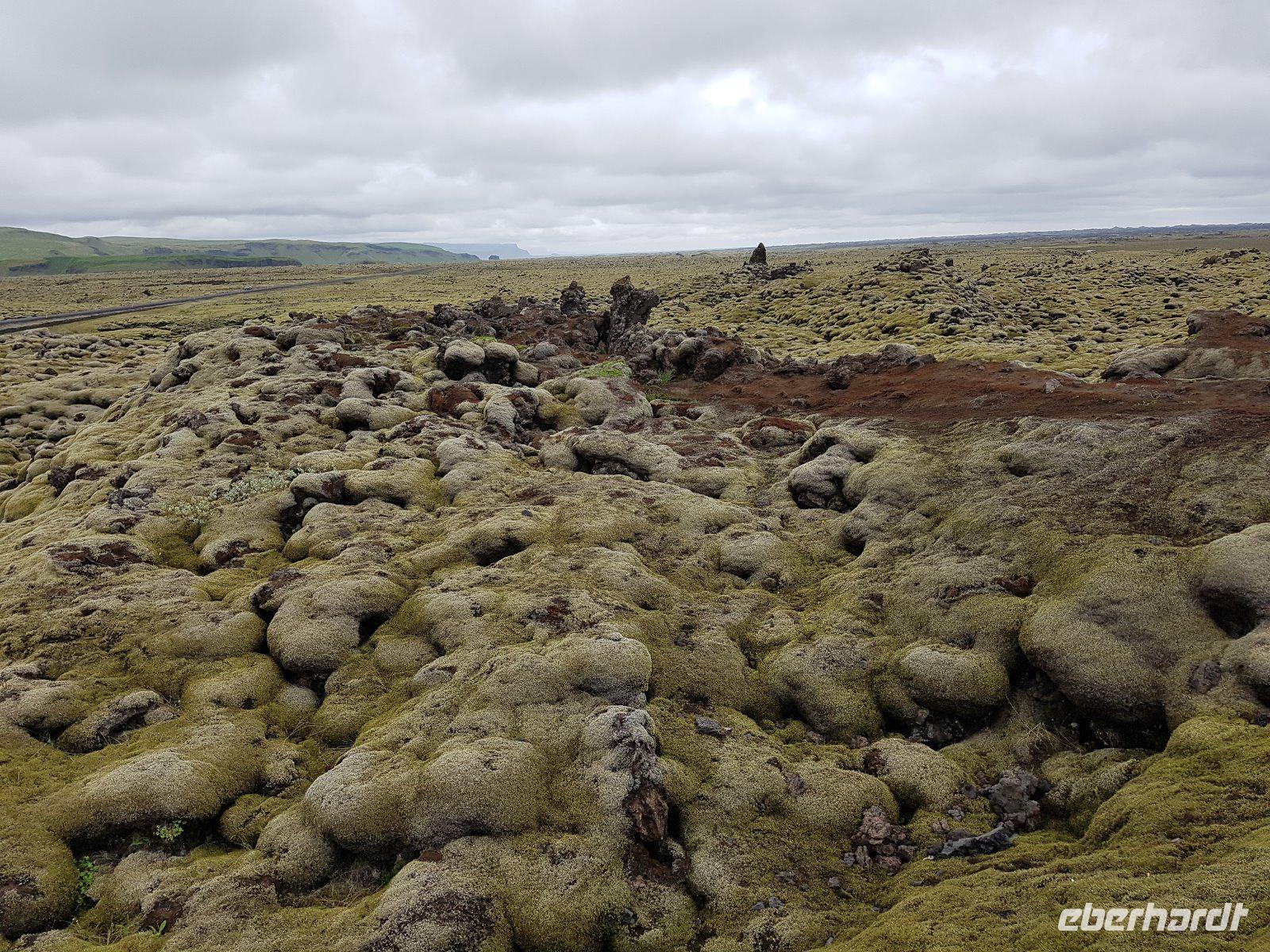 Mit einem Fotostopp am Eidhraun Lavafeld, beginnt unser Ausflug zum Skaftafell Nationalpark. In Kirkjubaerklaustur versorgen wir uns bei der Bank bzw. am Gelsautomaten zunächst einmal mit Isländischen Kronen und kaufen einige Getränke. So gerüstet kann es weitergehen.