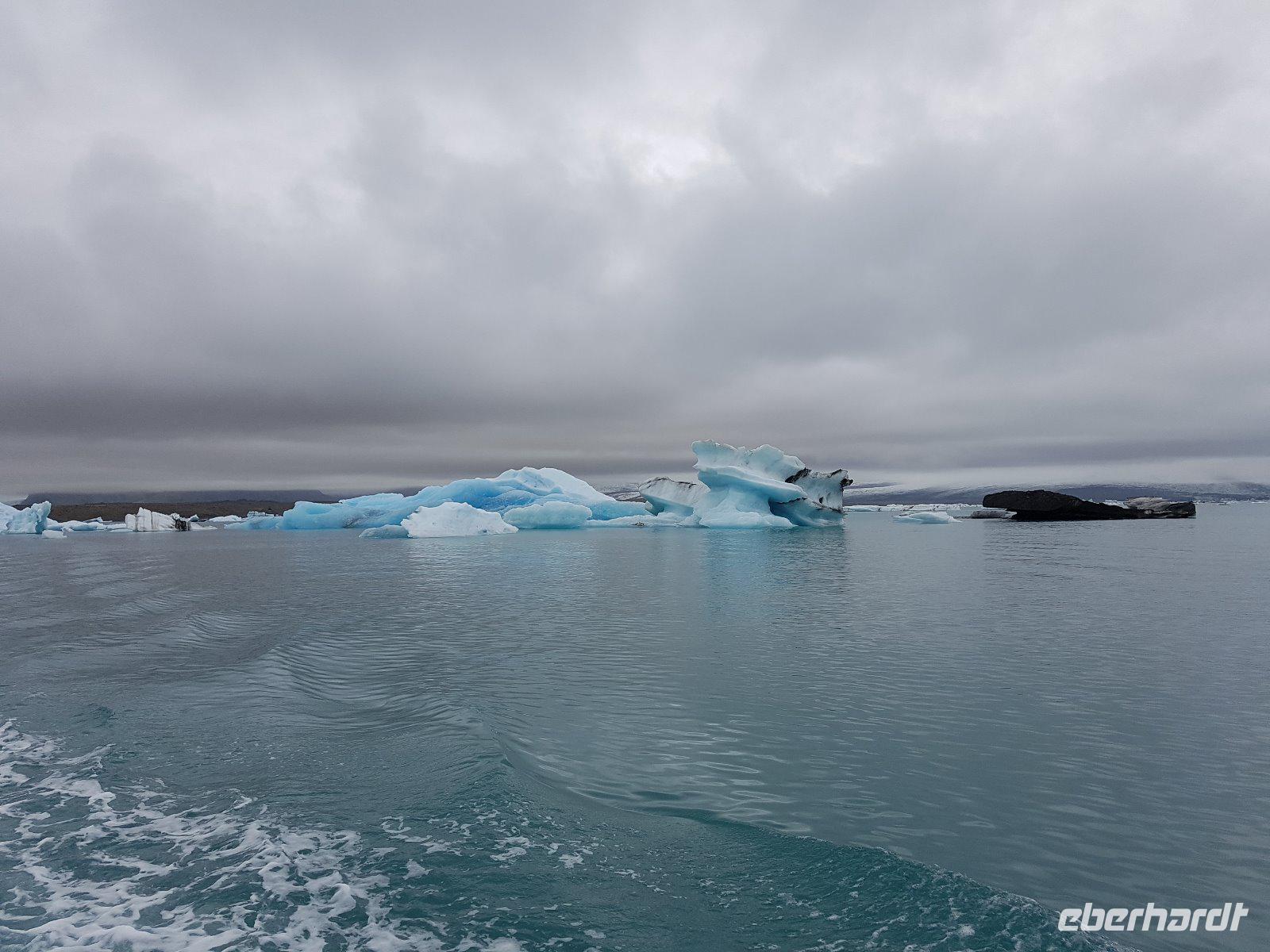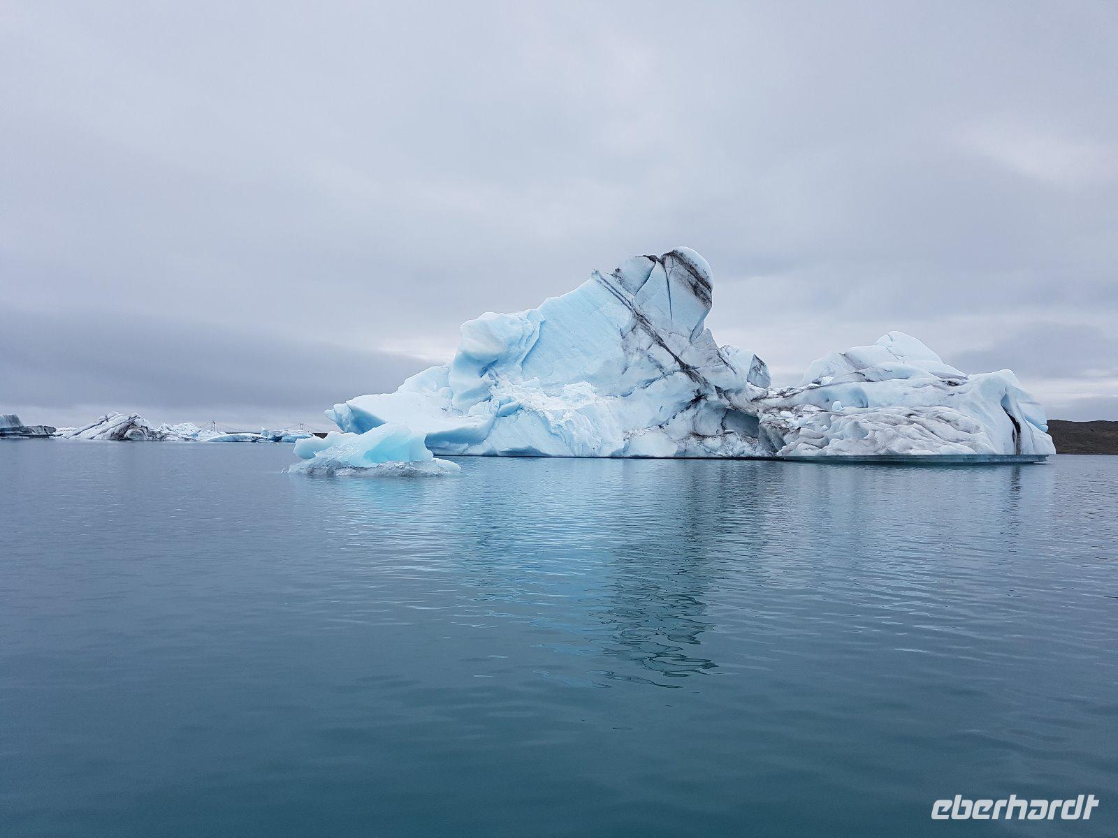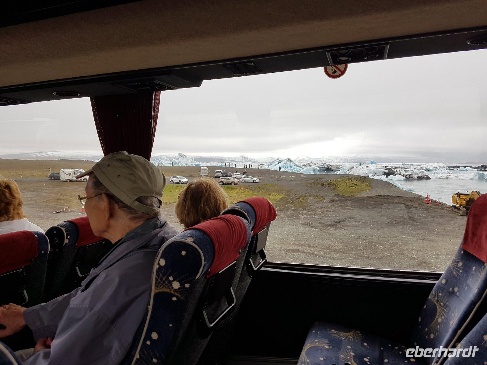 Den Höhepunkt des Tages erleben wir dann allerdings am Jokulsarlon. Vom Parkplatz direkt am Treibeisfluss kann man eine Fahrt mit Amphibienfahrzeugen direkt zu den Eisgiganten unternehmen. Mit etwas Improvisation und vor allem dank der Hilfe durch unseren Buschauffeur ist dies sogar für unsere Rollstuhlfahrer möglich. Ein tiefgehendes Erlebnis, welches sicher lange in Erinnerung bleiben wird.