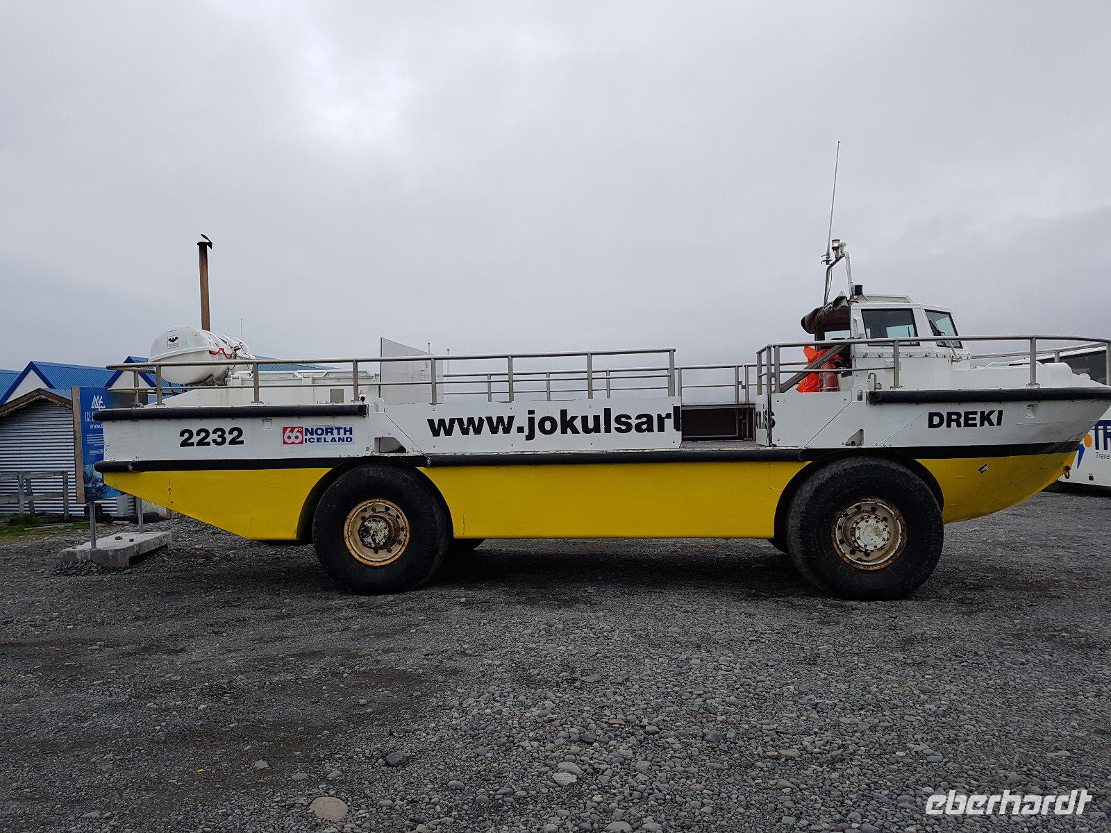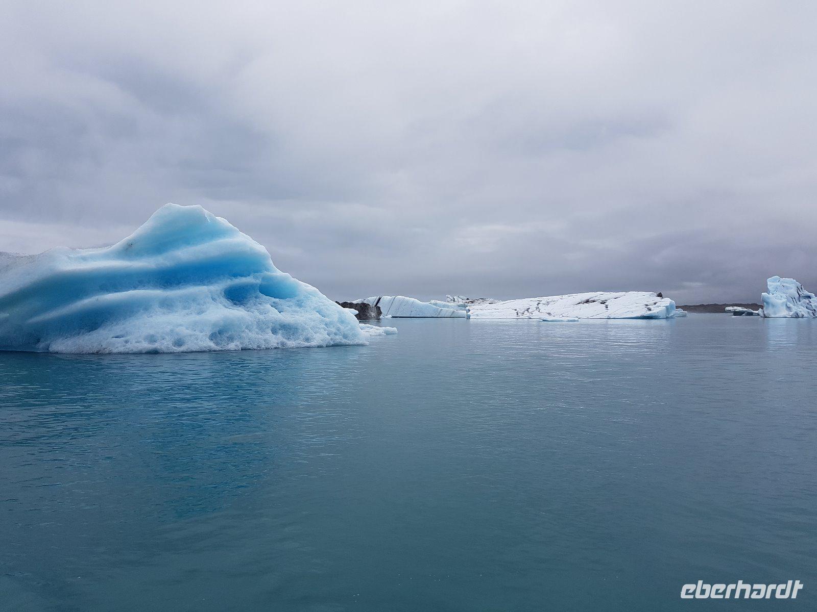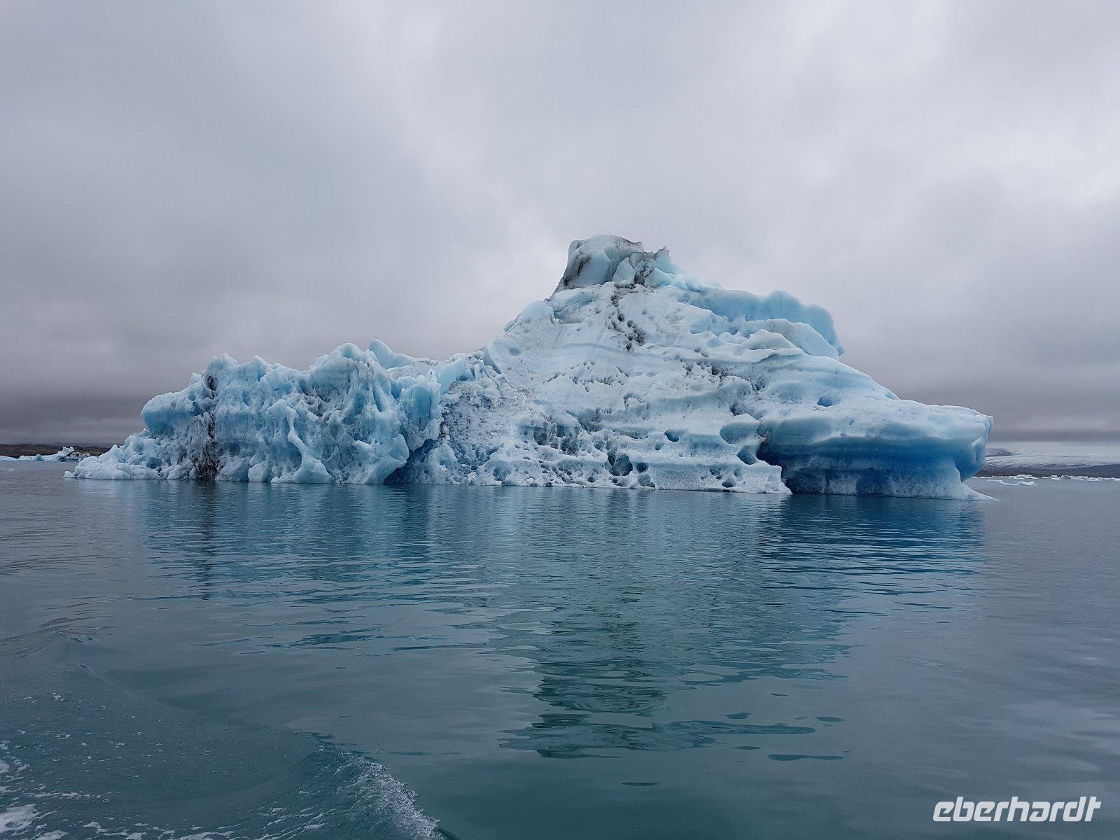 Den Höhepunkt des Tages erleben wir dann allerdings am Jokulsarlon. Vom Parkplatz direkt am Treibeisfluss kann man eine Fahrt mit Amphibienfahrzeugen direkt zu den Eisgiganten unternehmen. Mit etwas Improvisation und vor allem dank der Hilfe durch unseren Buschauffeur ist dies sogar für unsere Rollstuhlfahrer möglich. Ein tiefgehendes Erlebnis, welches sicher lange in Erinnerung bleiben wird.