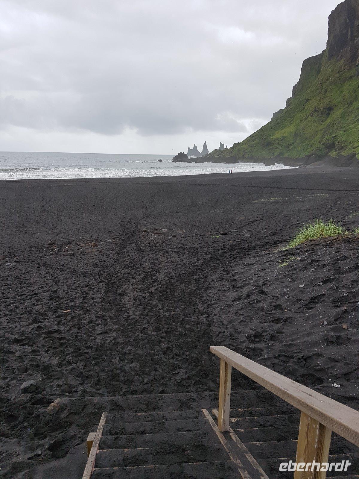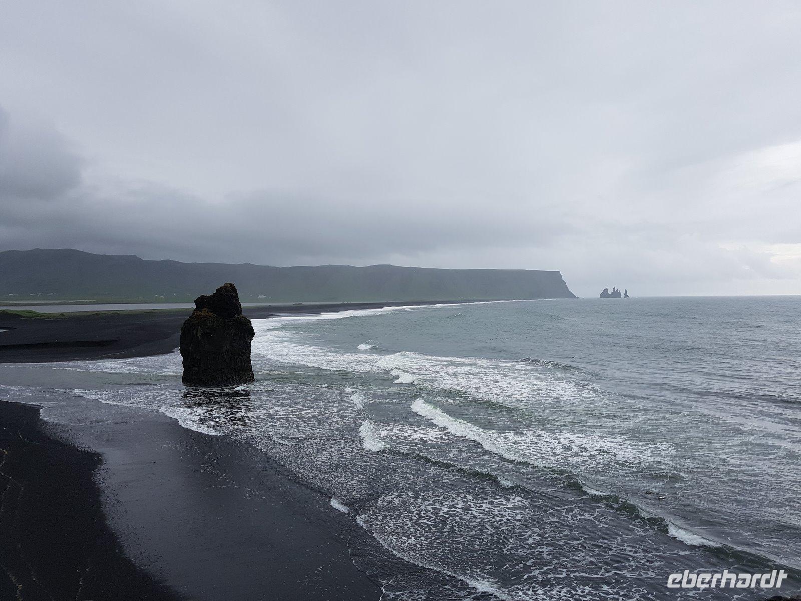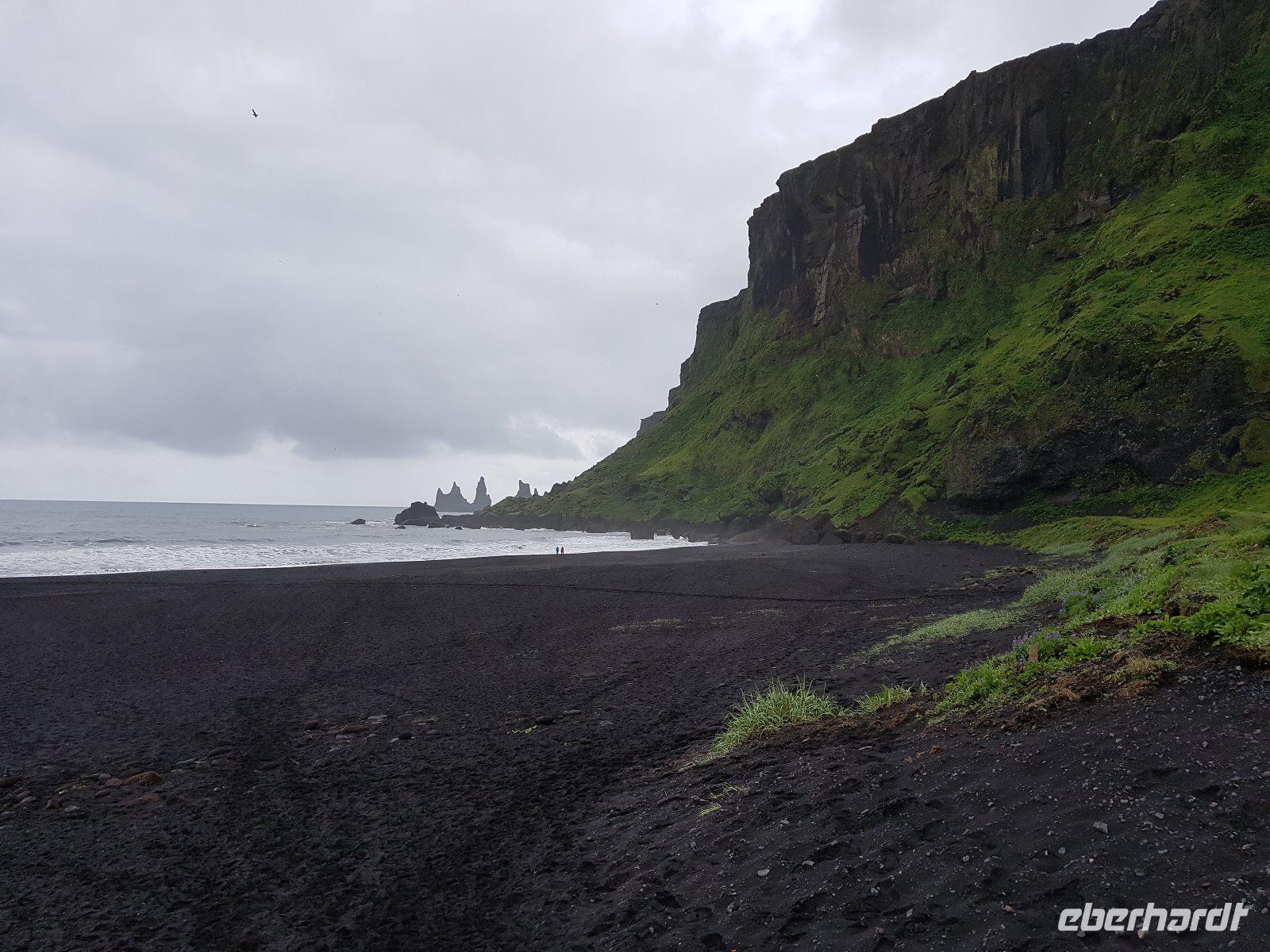 Bevor wir dann am wieder in das Hotel zurückkehren fährt unser Bus noch direkt an den schwarzen Lavastrand von Vik, der uns wieder eine andere Facette der abwechslungsreichen Landschaft bietet.