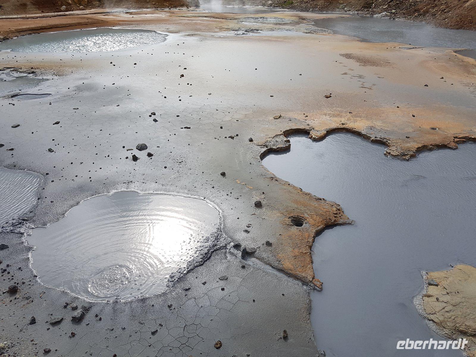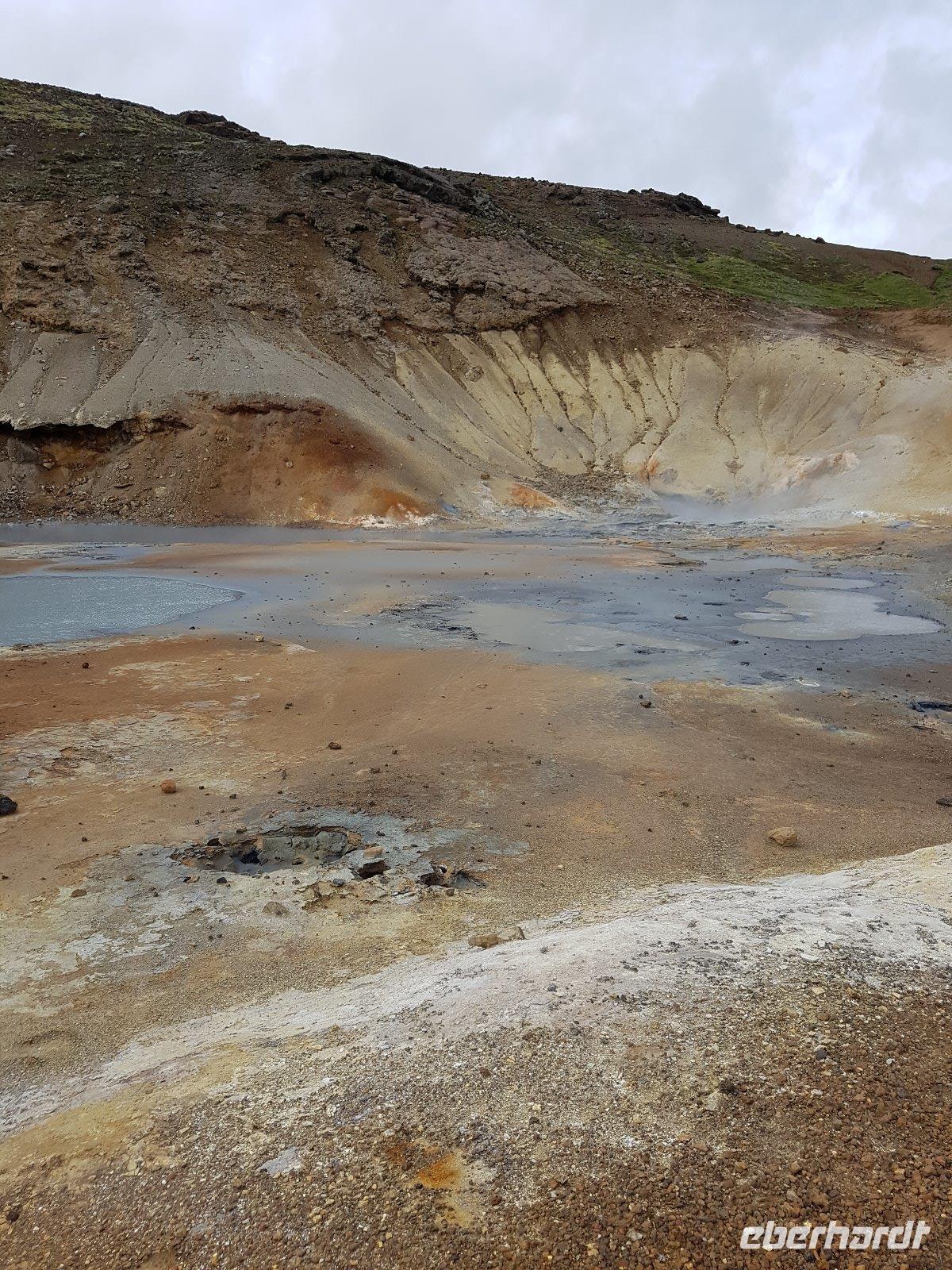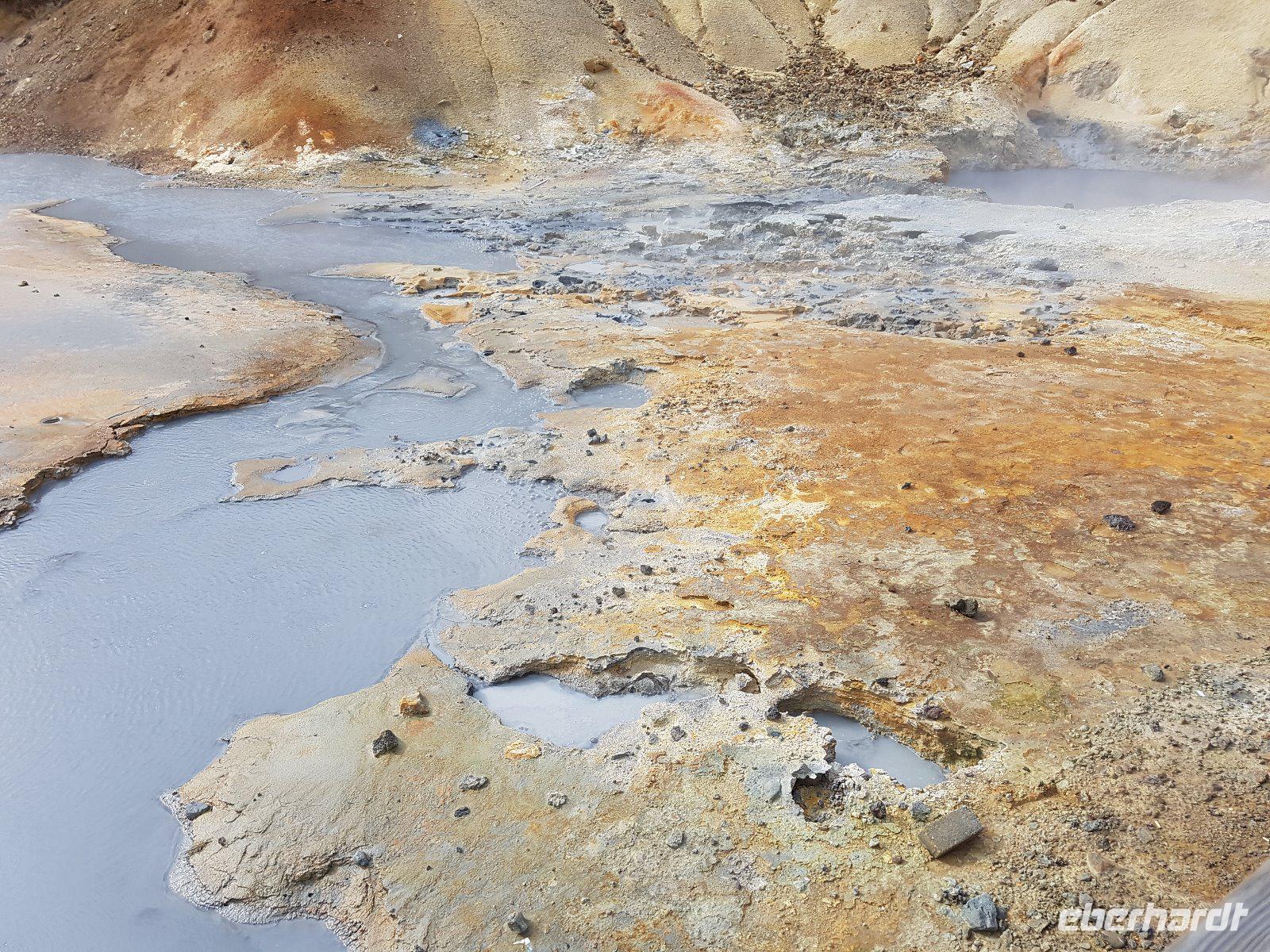 Im Visitor Center Eyjafjallajökull schauen wir uns einen interessanten Film und die ergänzende Ausstellung zum Vulkanausbruch von 2010 an. Wir können uns noch gut daran erinnern wie der isländische Berg mit dem unaussprechlichen Namen in dieser Zeit die Medien beherrschte. Mit dem Seljalandsfoss steht ein weiterer Wasserfall auf unserem Besuchsprogramm, ehe wir bei Selfoss die Ringstrasse verlassen, um an der Küste über Eyarbakki und Þorlákshöfn zu fahren, und uns mit Seltun ein Geothermalgebiet am See Kleifarvatn anzuschauen. Ein gut berollbarer Holzbohlenweg ermöglicht uns hier den direkten Zugang zu den Austrittsstellen. Vorbei an der berühmten (aber leider nicht rollstuhlfreundlichen) Blaue Lagune geht es nun Richtung Hauptstadt, um im Grand Hotel Reykjavik Quartier für den restlichen Zeitraum unserer Reise zu beziehen.