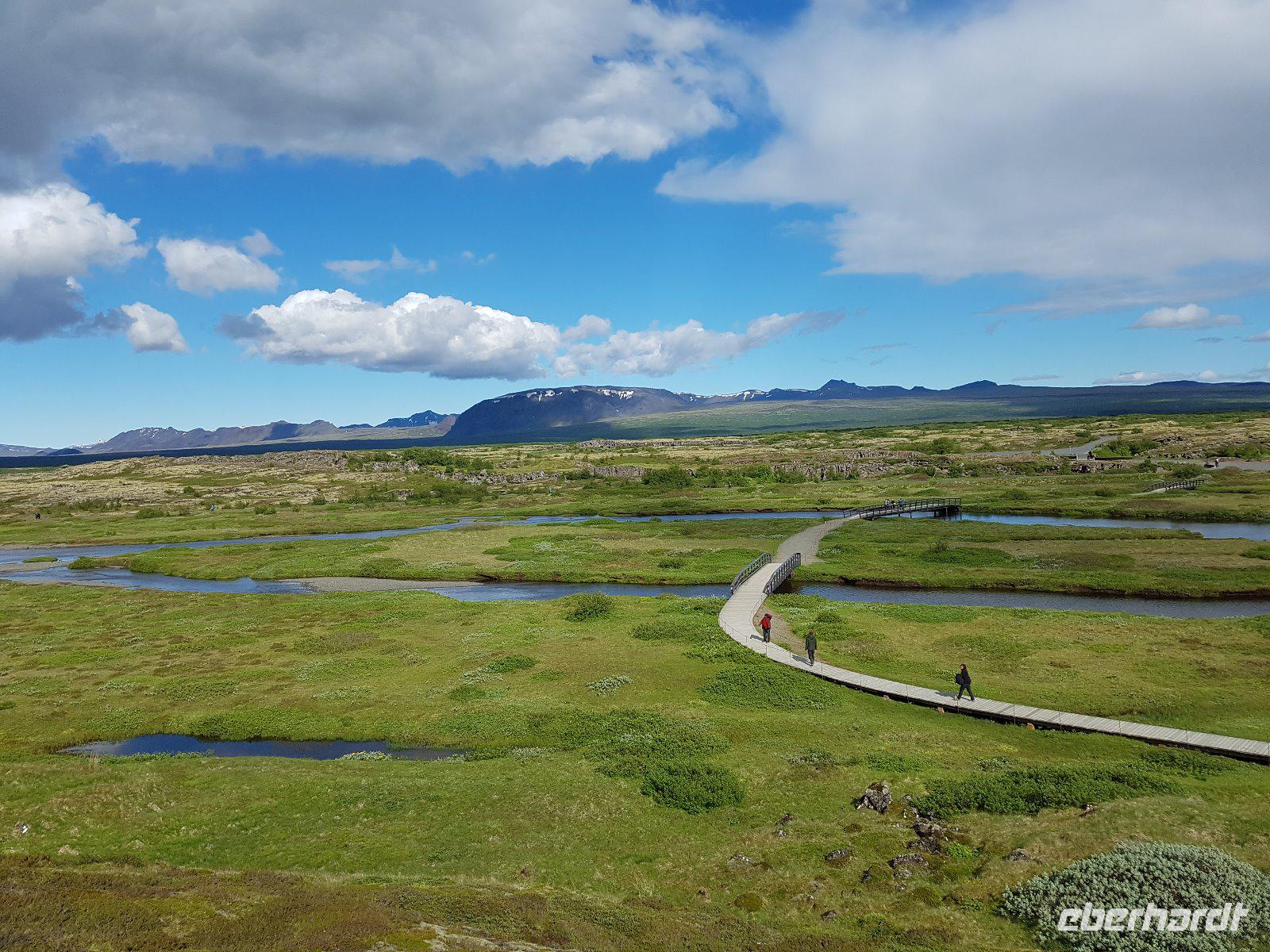 Mit dem Aufenthalt in Thingvellir statten wir dann noch einem geschichtsträchtigen Ort einen Besuch ab. Aber nicht nur als Thingstätte der alten Isländer ist diese Destination sehenswert, wir befinden uns gleichsam im Niemandsland zwischen eurasischer und amerikanischer Erdplatte.