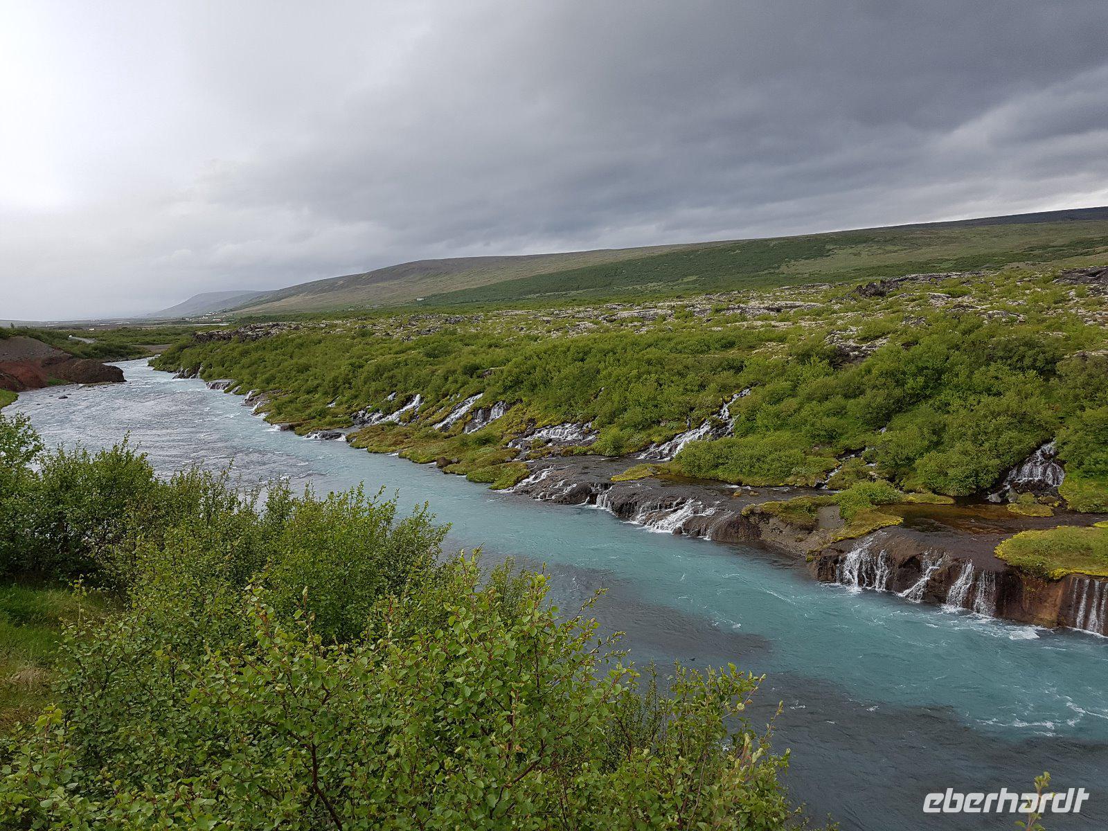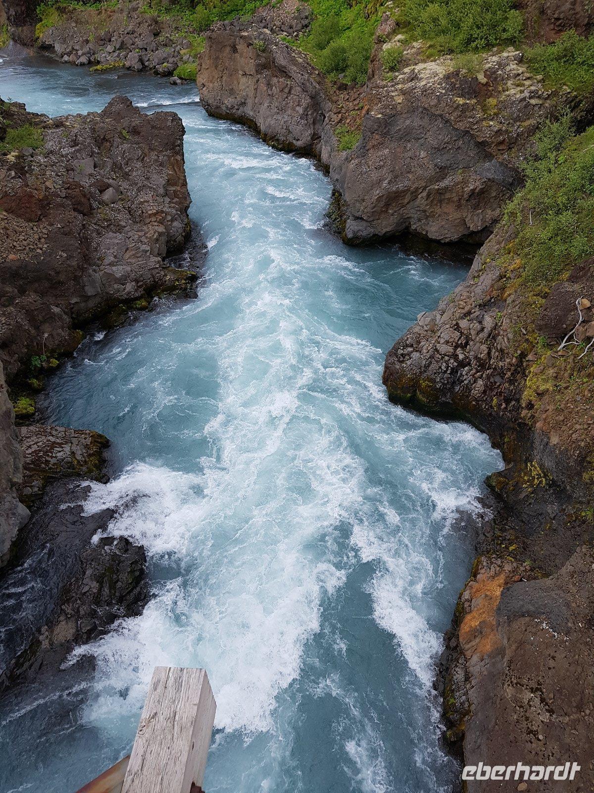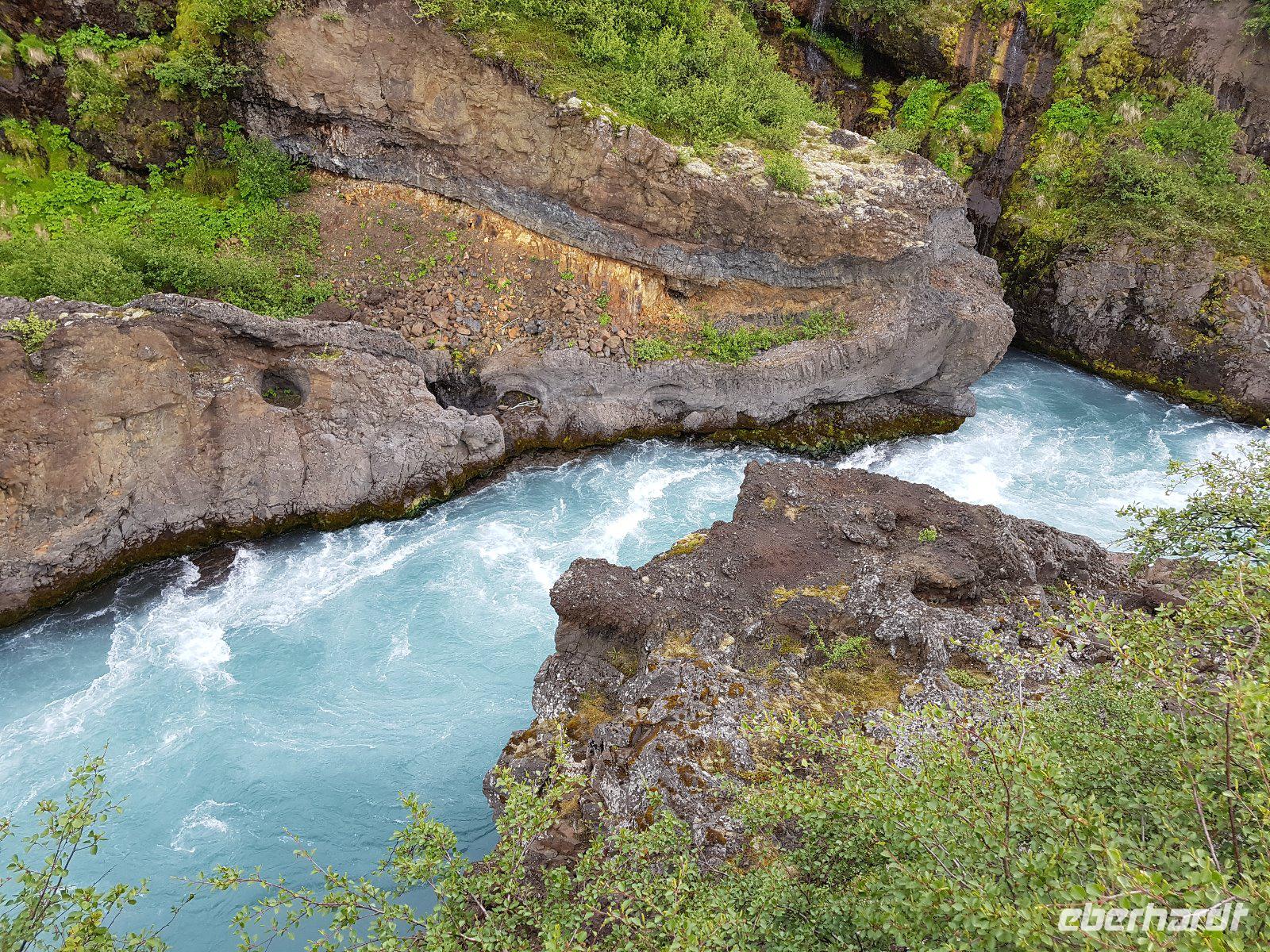 Aber auch der nahegelegene Barnafoss, mit verschiedenen Aussichtspunkten und einer berollbaren Brücke wird von uns besucht. Nachdem wir uns im dortigen Restaurant gestärkt haben fahren wir noch nach Deildartunguhver.