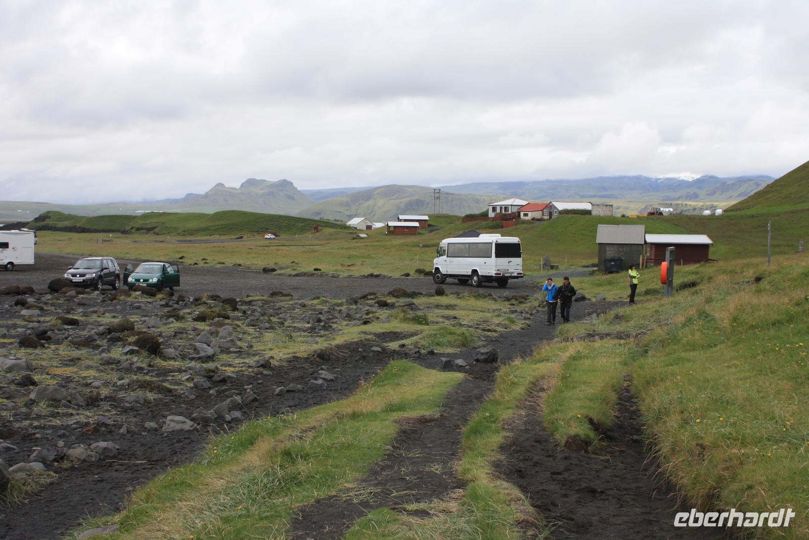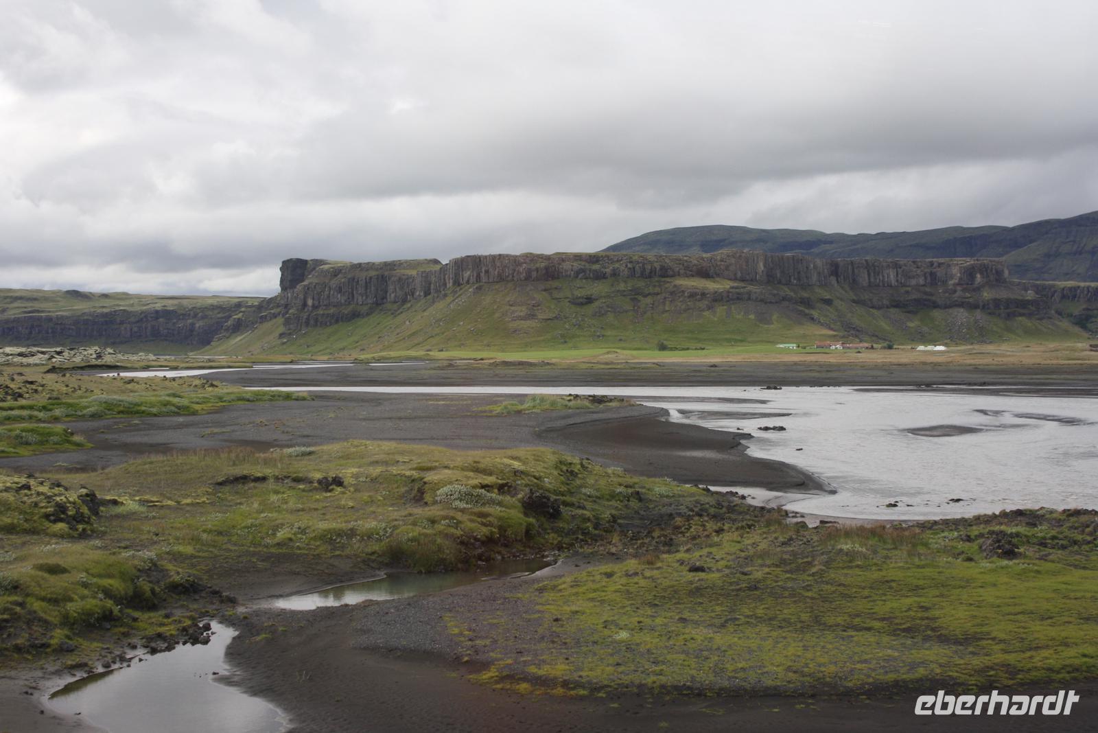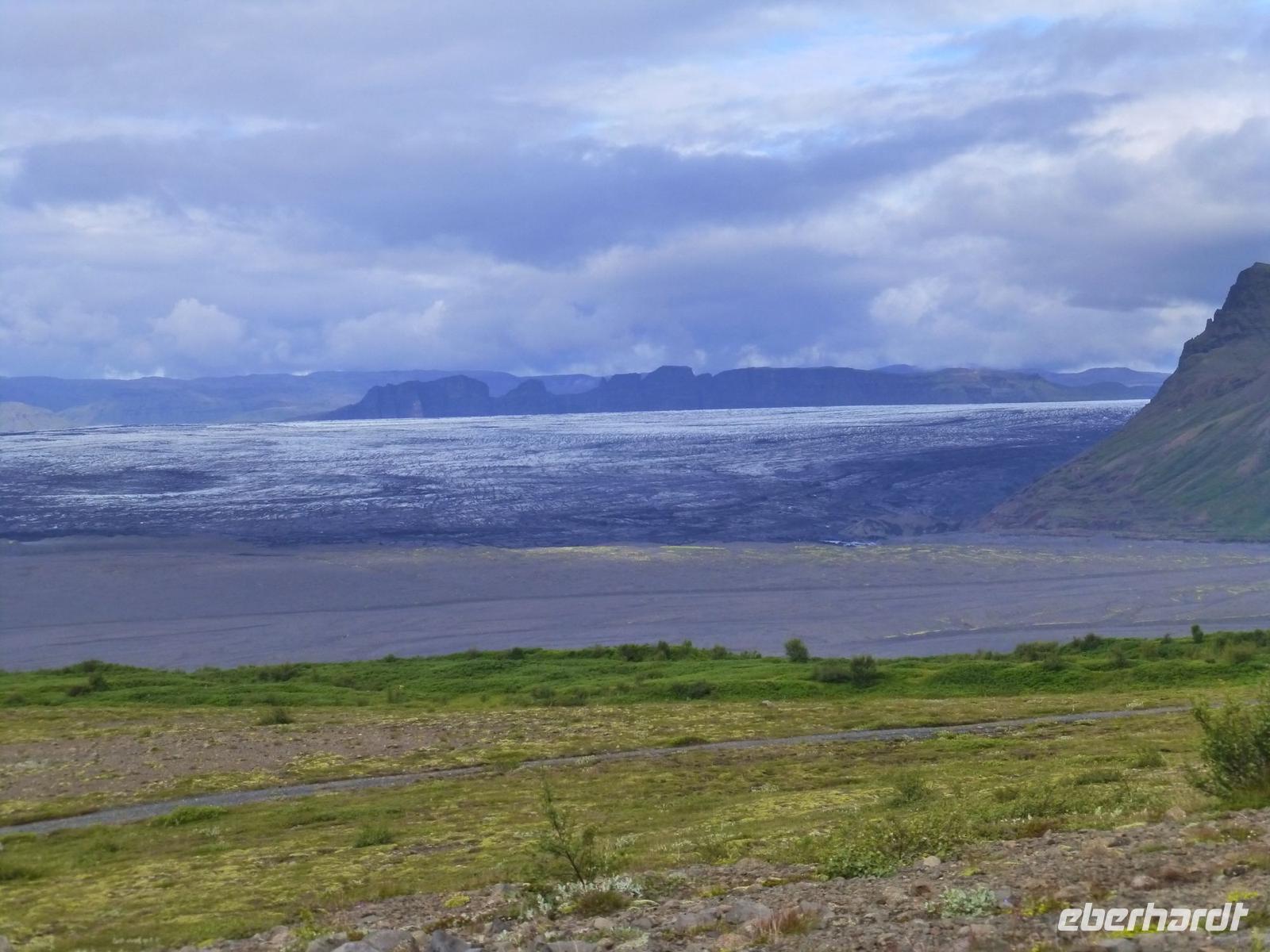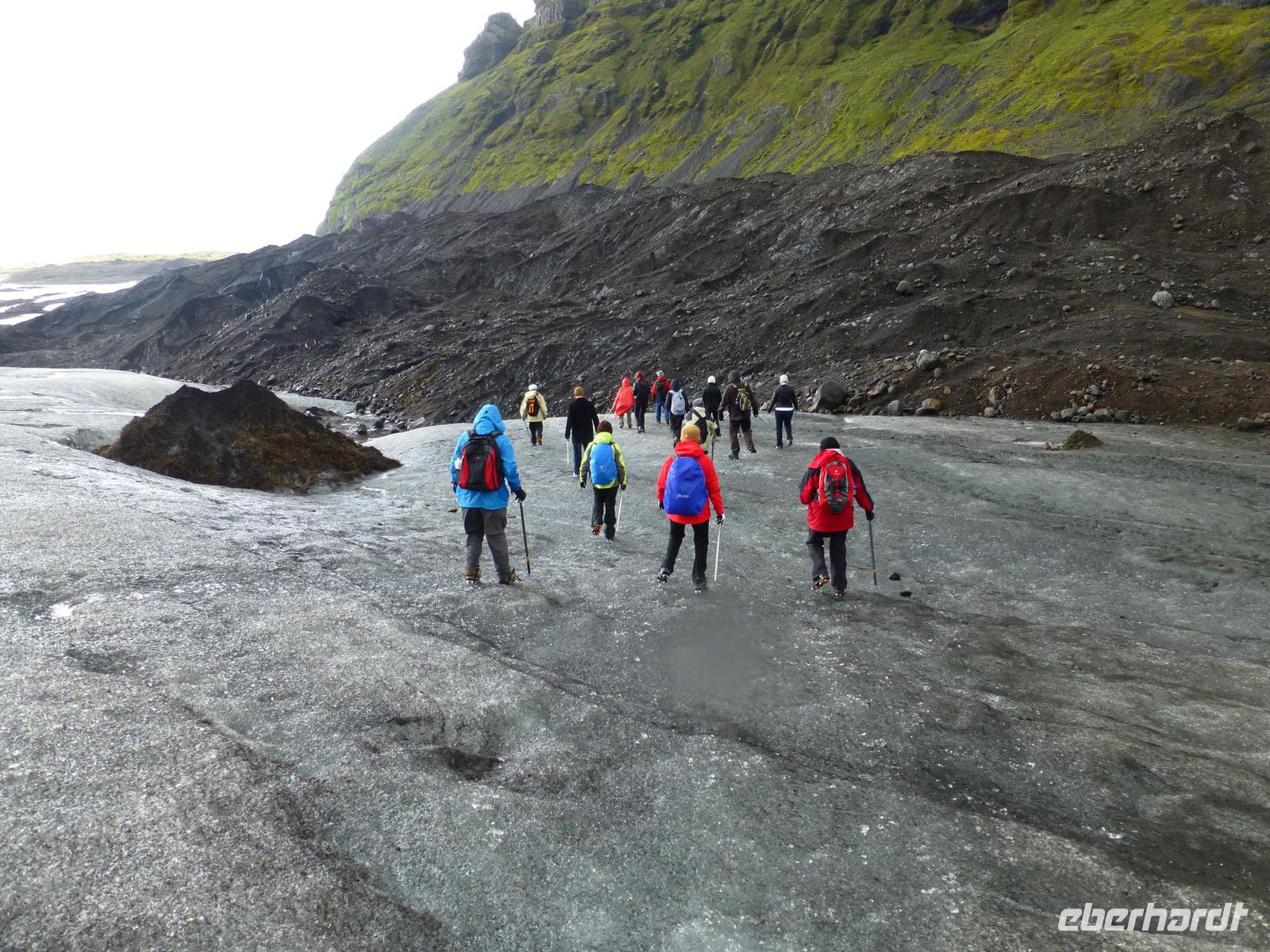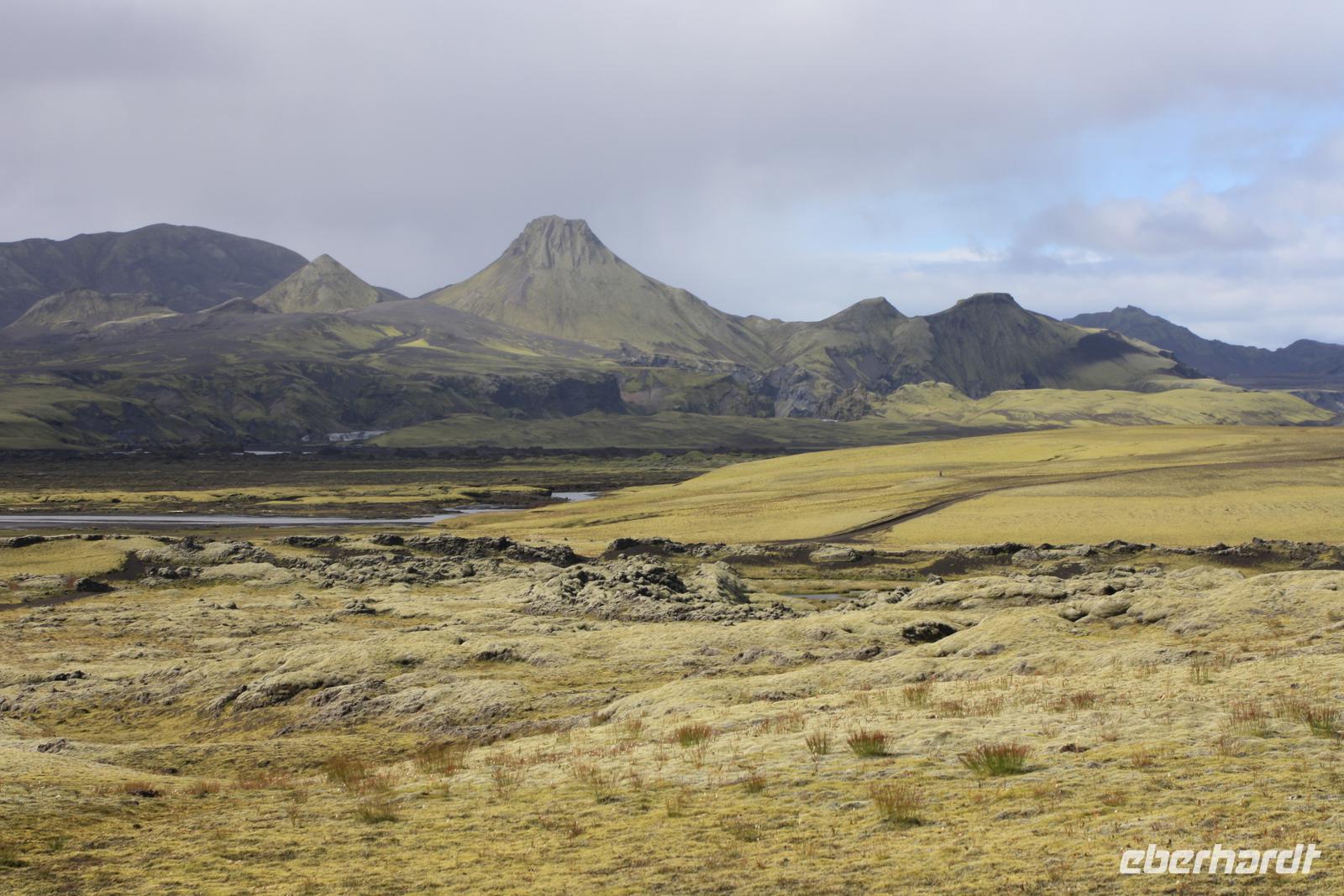 Über eine Schotterstraße ging es dann durch grüne Ebenen ins Gletschertal Thorsmörk, was übersetzt „Thors Wald" bedeutet, also der Wald des alten germanischen Gottes Thor. Das Tal wird flankiert von mächtigen Gletschern, einer davon ist die Gletscherzunge des berühmten Vulkans Eyjafjallajökull, der 2010 den Flugverkehr in ganz Europa zum Stillstand brachte. Einige Fahrtminuten weiter halten wir am Fuße der Bergkette.