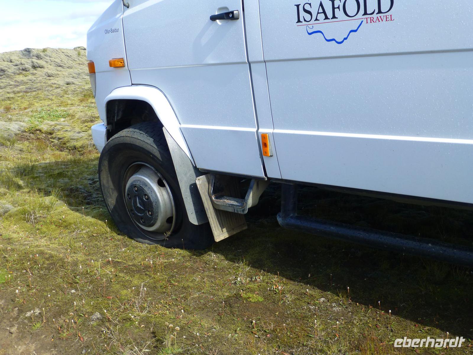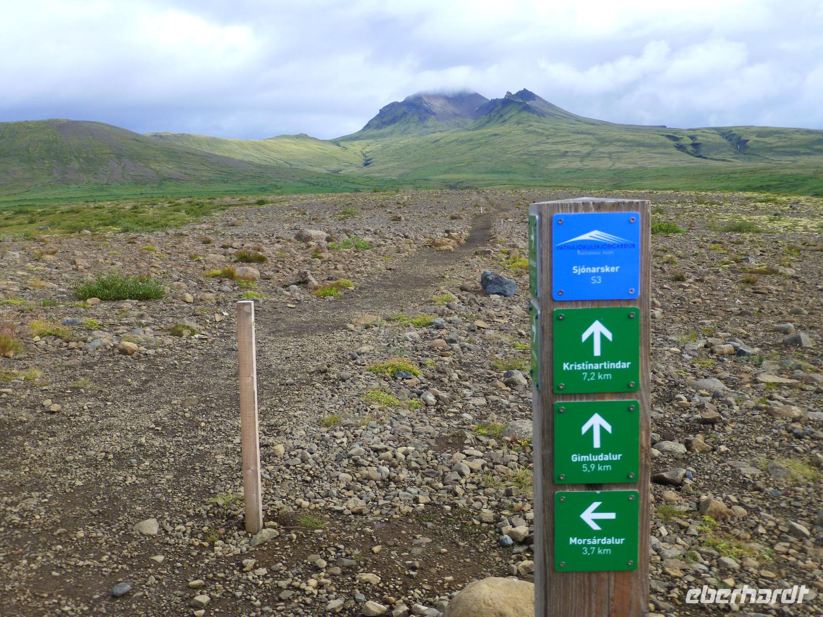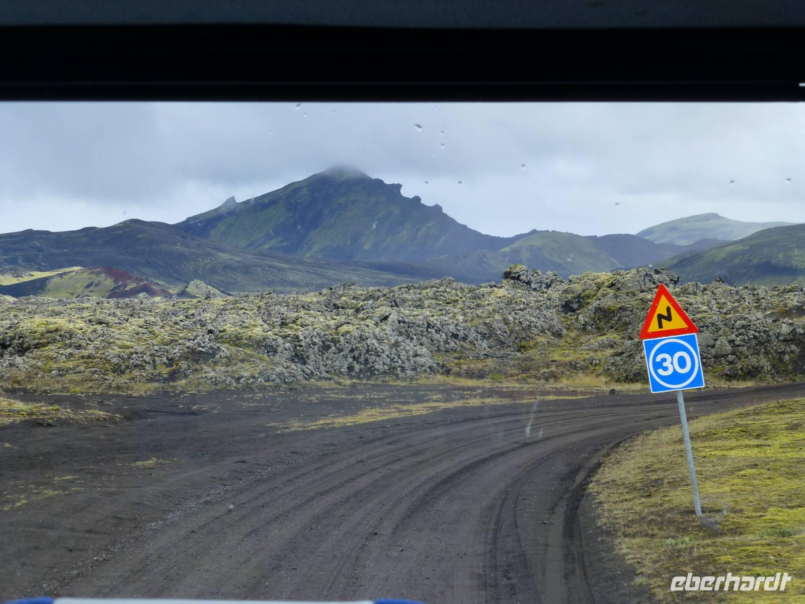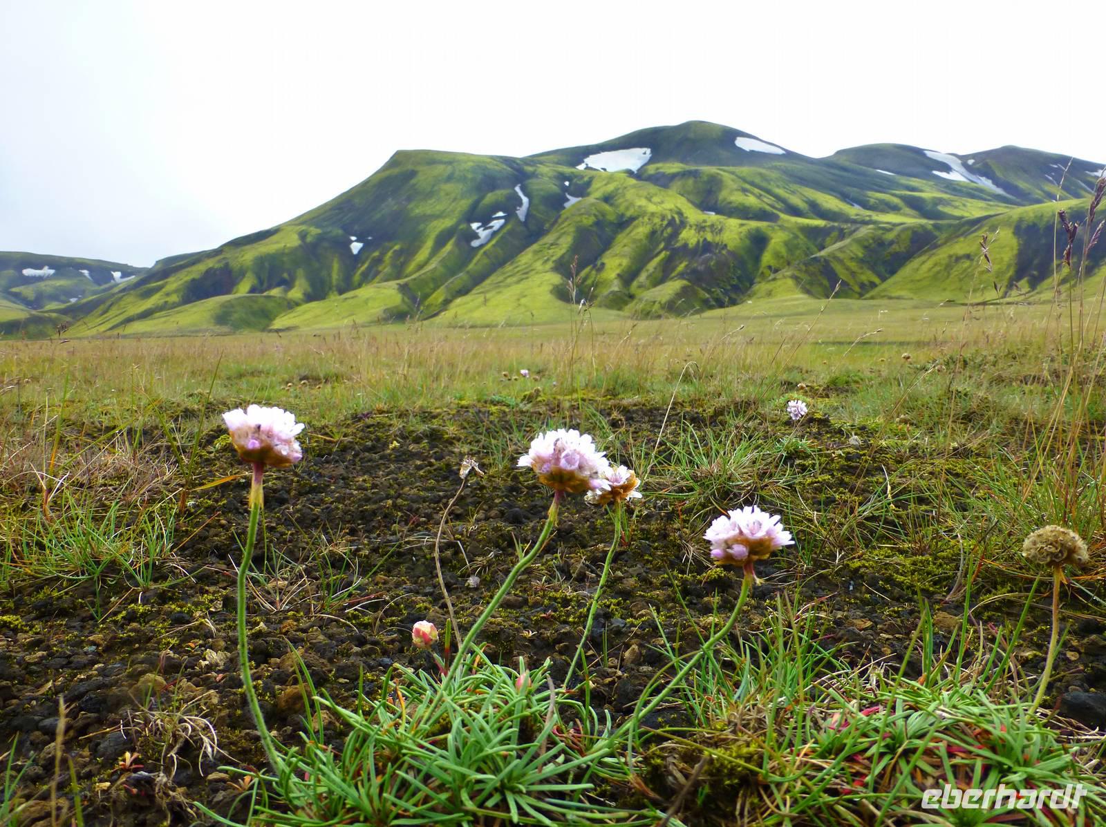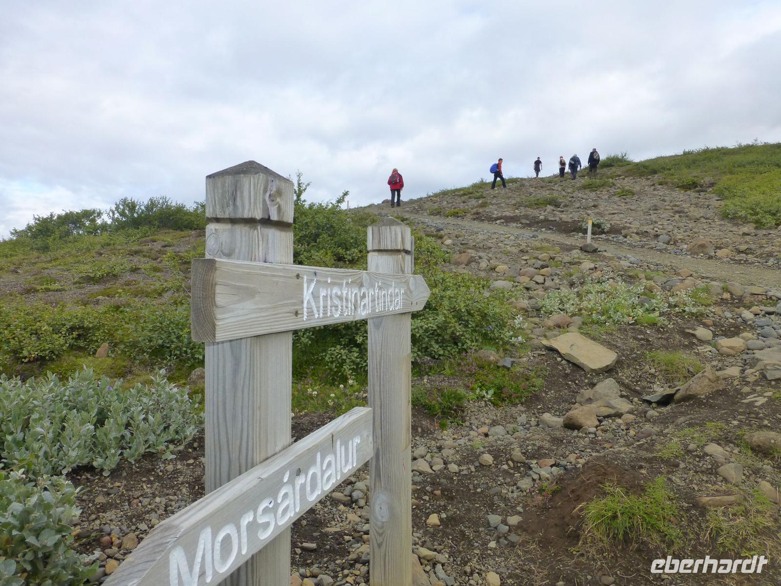 Über eine Schotterstraße ging es dann durch grüne Ebenen ins Gletschertal Thorsmörk, was übersetzt „Thors Wald" bedeutet, also der Wald des alten germanischen Gottes Thor. Das Tal wird flankiert von mächtigen Gletschern, einer davon ist die Gletscherzunge des berühmten Vulkans Eyjafjallajökull, der 2010 den Flugverkehr in ganz Europa zum Stillstand brachte. Einige Fahrtminuten weiter halten wir am Fuße der Bergkette.