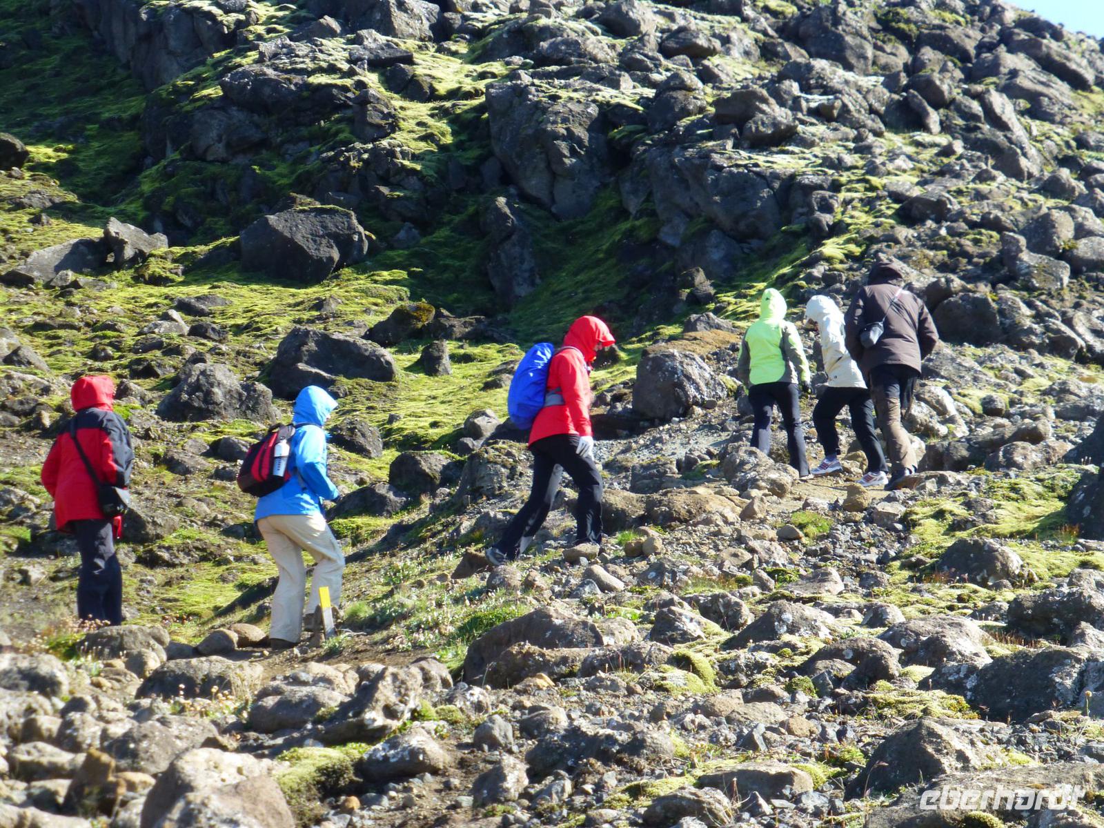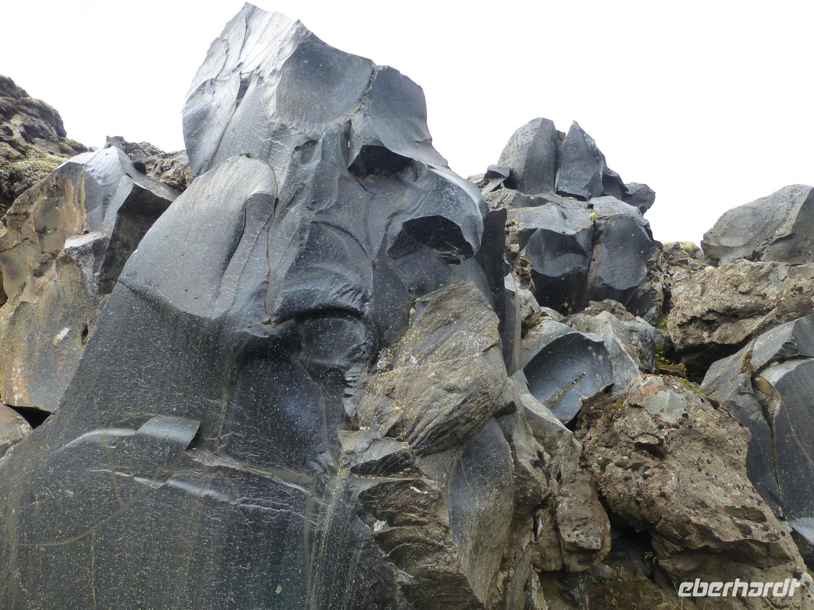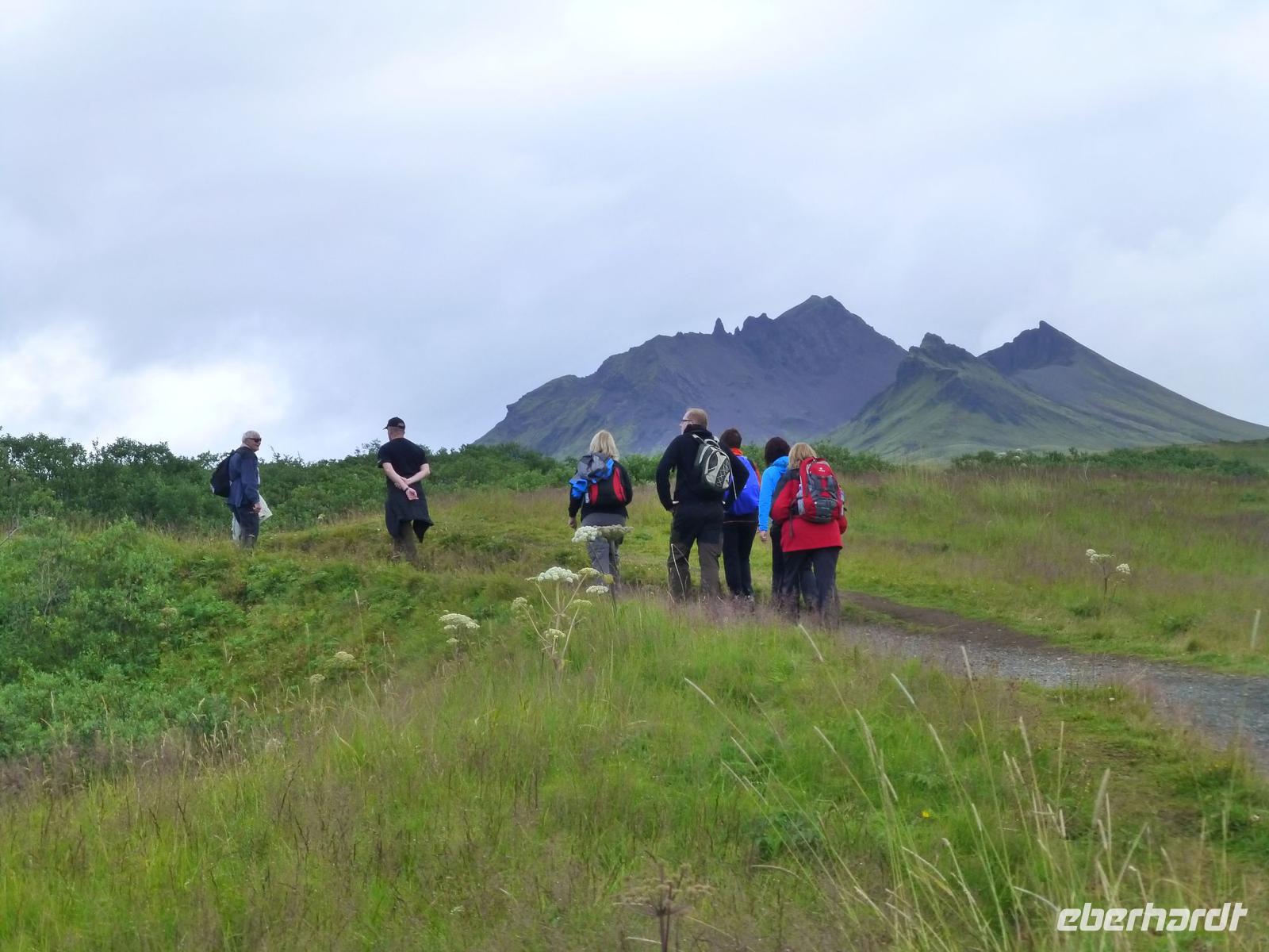 Am sechsten Tag unserer Reise geht es noch einmal auf einen Ganztagesausflug ins Inselinnere. An der Küstenstraße legten wir aber zuerst einen Stopp an den „Zwergenfelsen" Dverghamrar ein. Bei einem Spaziergang bestaunten wir die sechseckigen Basaltsäulen, die für Island so typisch sind.