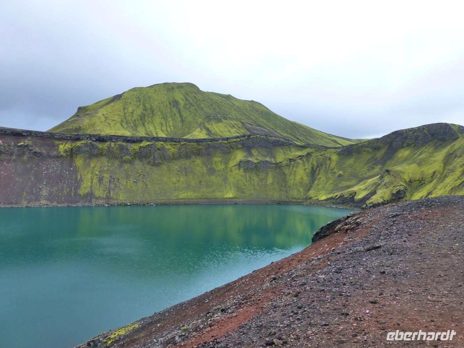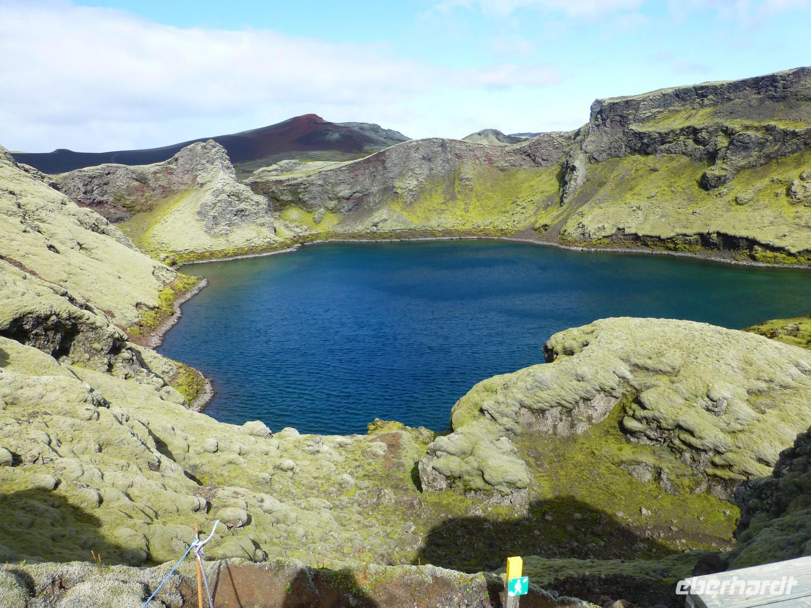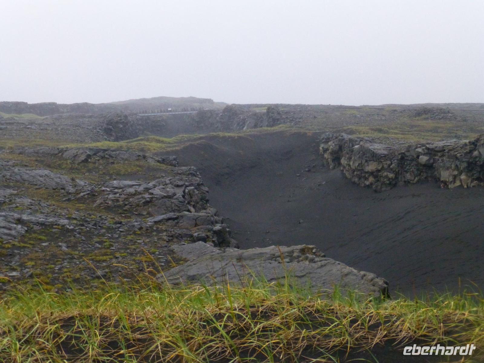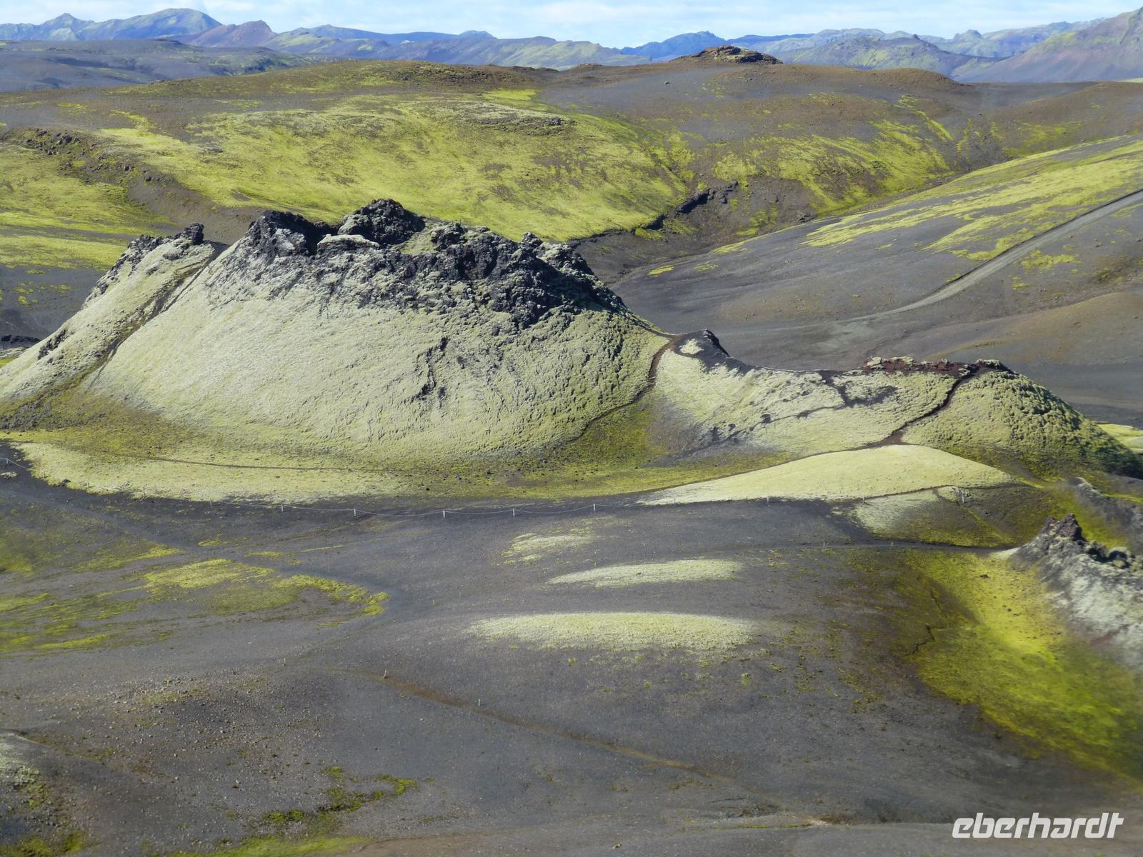 Nach unserem Mittagspicknick am Laki fuhren wir zum Kratersee Tjarnargigur, wo wir einen kleinen Spaziergang zum Kraterkegel unternahmen. Auf einer abschließenden Panorama-Rundfahrt durch das Lakagigar-Gebiet sahen wir noch einmal die Weite der Lavafelder und die gigantischen Krater, bevor wir die Rückfahrt antraten und unser Hotel „Klaustur" in Kirkjubaejarklaustur erreichten.