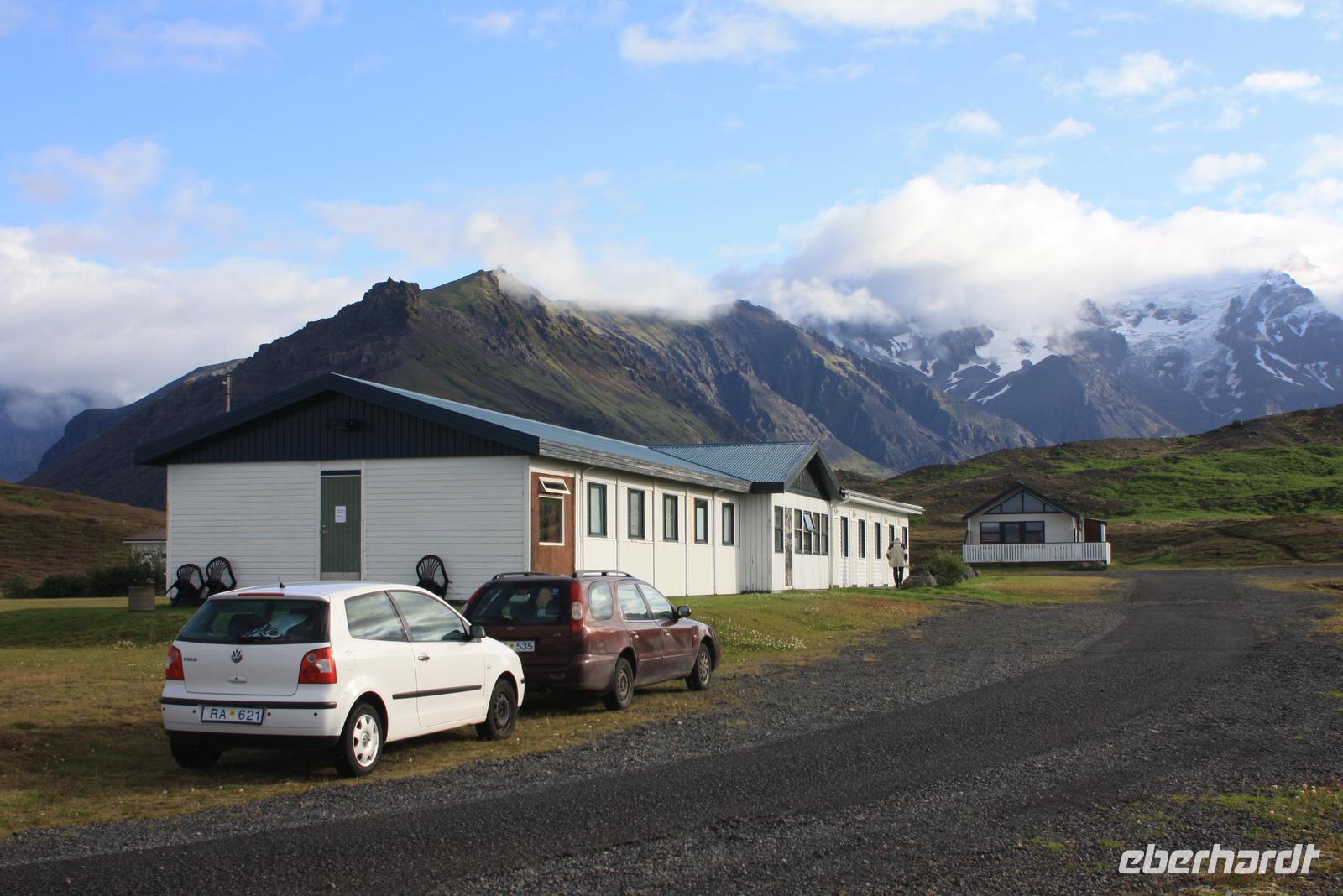 Per Haustür-Transfer gelangten wir am Abend zum Flughafen Berlin-Tegel, wo unser Nachtflug mit Lufthansa startete. Am Flughafen in Keflavik besorgten wir uns Isländische Kronen am Wechselschalter oder Automaten. Gemeinsam mit unserem isländischen Reiseleiter Snorri, der gleichzeitig Fahrer unseres Geländebusses war, fuhren wir nachts zum Hotel „Hekla" bei Selfoss im Süden Islands. Hier wurden wir mit einem Snack begrüßt, bevor wir in unsere Zimmer verschwanden.