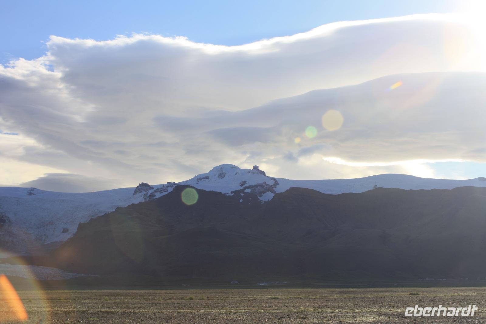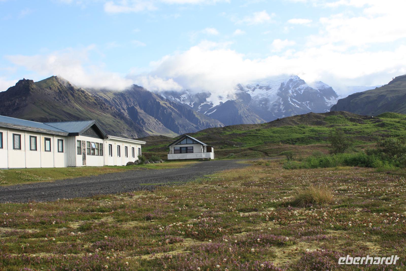 Auf unserer Weiterreise entlang der Südküste in Richtung Osten besuchen wir den schwarzen Lavastrand bei Vik mit den riesigen sechseckigen Basaltsäulen am Steilufer und den Felsnadeln Reynisdrangar. Diese stellen in der isländischen Mythologie drei versteinerte Trolle dar, die einst das Meer überqueren wollten und bei Tagesanbruch zu Stein wurden. Nach einem Stopp im kleinen Örtchen Vik fahren wir auf der Ringstraße über Kirkjubaejarklaustur und durch das weite Laki-Lavafeld zu unserem Hotel „Skaftafell" am Fuße der riesigen Gletscher des Skaftafell-Nationalparks.