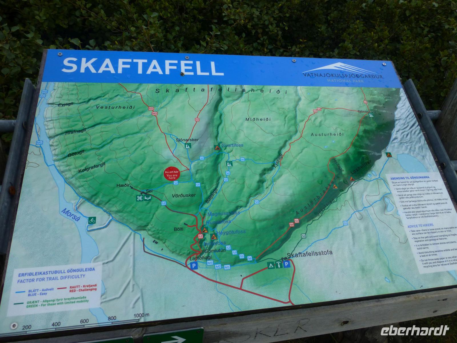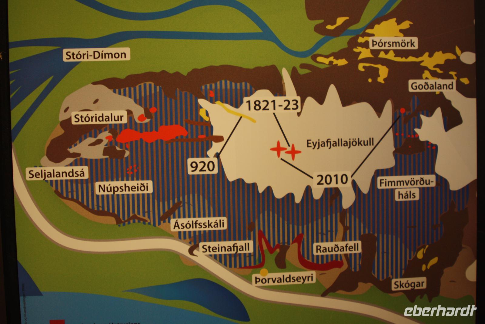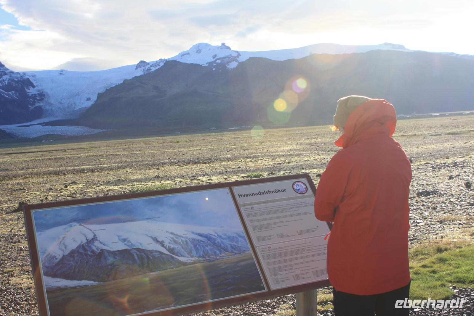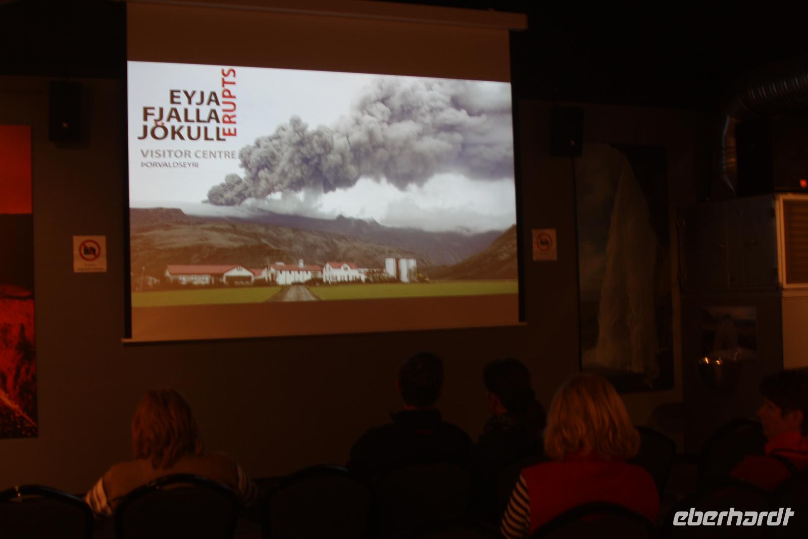 Zurück am Besucherzentrum sehen wir uns einen Film zur Geschichte des Skaftafell-Nationalparks an, der durch Vulkanausbrüche und Gletscherfluten immer wieder umgestaltet wird.