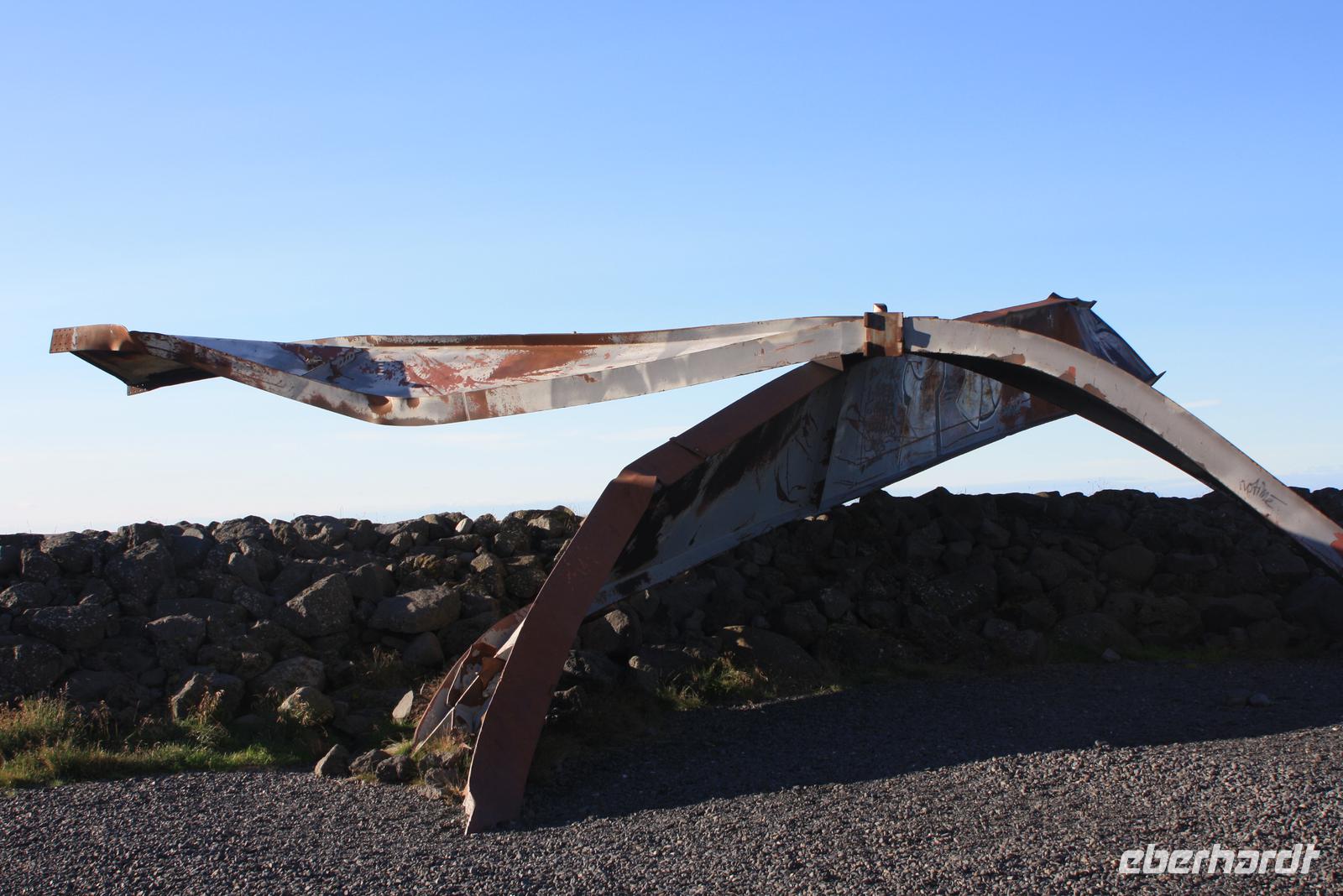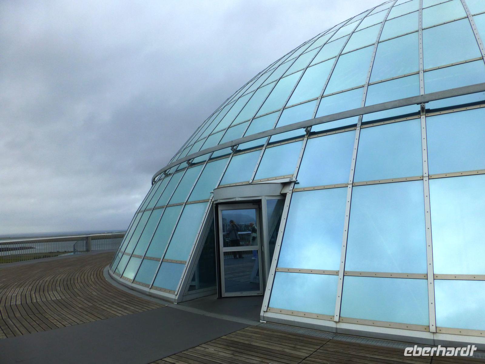 Am frühen Nachmittag holte uns Snorri mit einem großen Jeep am Hotel in Reykjavik ab und wir fuhren mit gepackten Koffern los zu unserem letzten Ausflug. Bevor wir Reykjavik verließen, legten wir einen Stopp an der „Perle", dem Perlan, ein. Dieses Bauwerk aus vier riesigen Heißwassertanks, mit einer Glaskuppel darüber, thront als zweites Wahrzeichen über der Stadt.