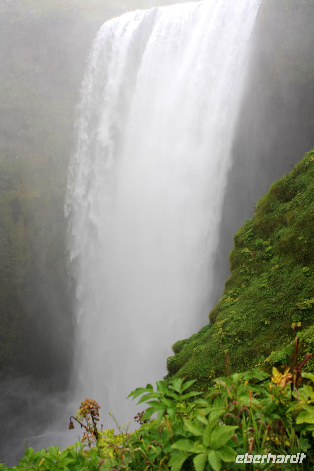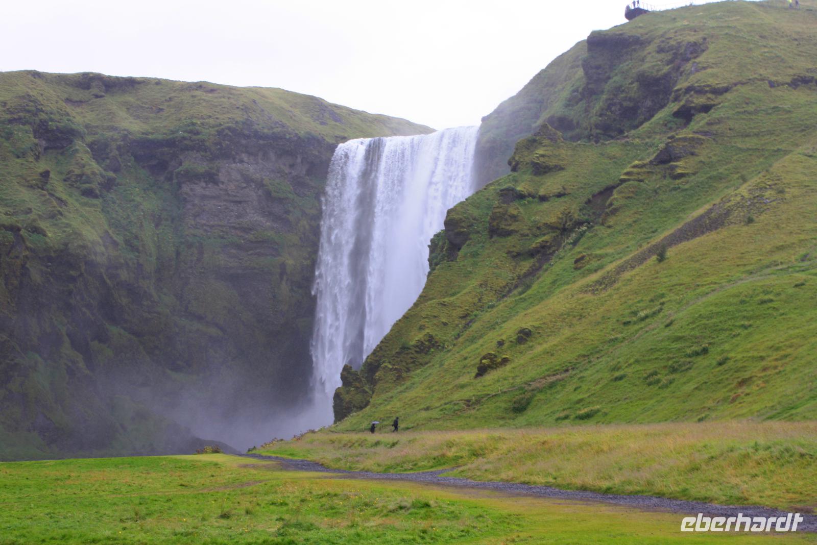 Unser nächster Halt war am Skogafoss - dem letzten großen Wasserfall unserer Rundreise . Auf einer breite von 25 Metern fällt der gleichnamige Fluss hier 60 Meter in die Tiefe. Über Treppen liefen wir zur kleinen Aussichtsplattform auf halber Höhe des Wasserfalls.