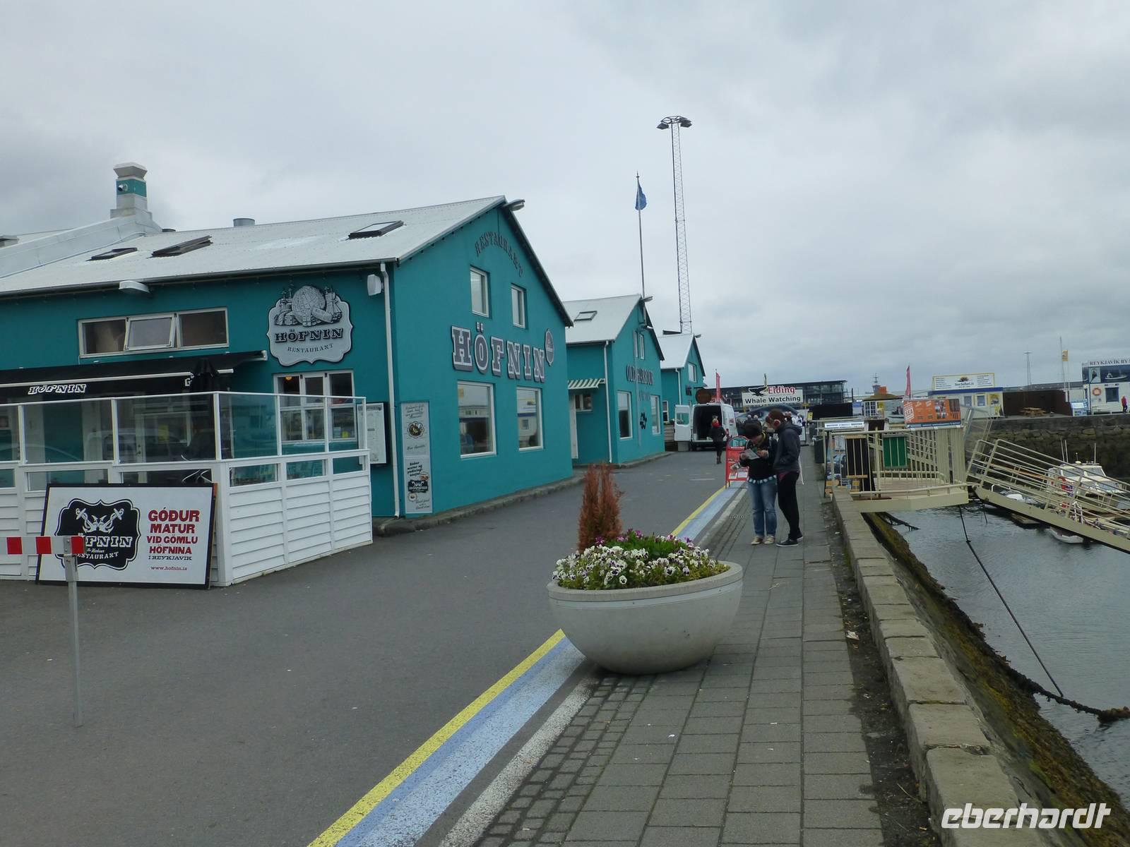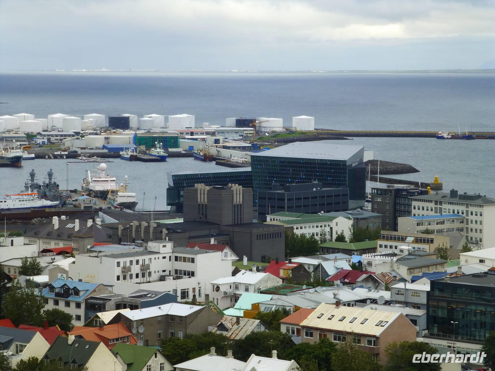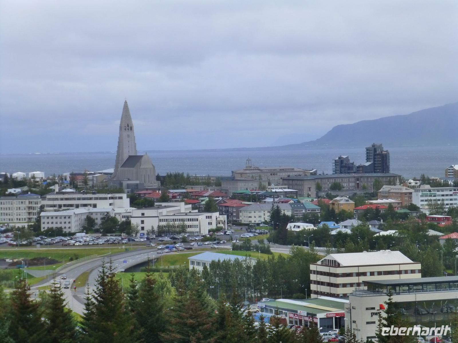 Der letzte Tag unserer Island-Reise war angebrochen. Am Vormittag hatten wir Freizeit in der Hauptstadt Reykjavik. Gemeinsam unternahmen wir einen Stadtspaziergang den Hügel hinauf zur Hallgrimskirche, dem Wahrzeichen Reykjaviks. Wir fuhren mit dem Lift hinauf auf den Kirchturm (Zusatzkosten: 700 ISK) und hatten eine weite Aussicht über die Stadt. Dann spazierten wir hinunter zum Stadtsee Tjörnin und schauten uns im modernen Rathaus eine große Relief-Landkarte von Island an. Vorbei am Parlament und der kleinen Domkirche gingen wir durch die Altstadt zum alten Hafen, wo wir eine Mittagspause in der bekannten Fisch-Kneipe „Seabaron" einlegten.