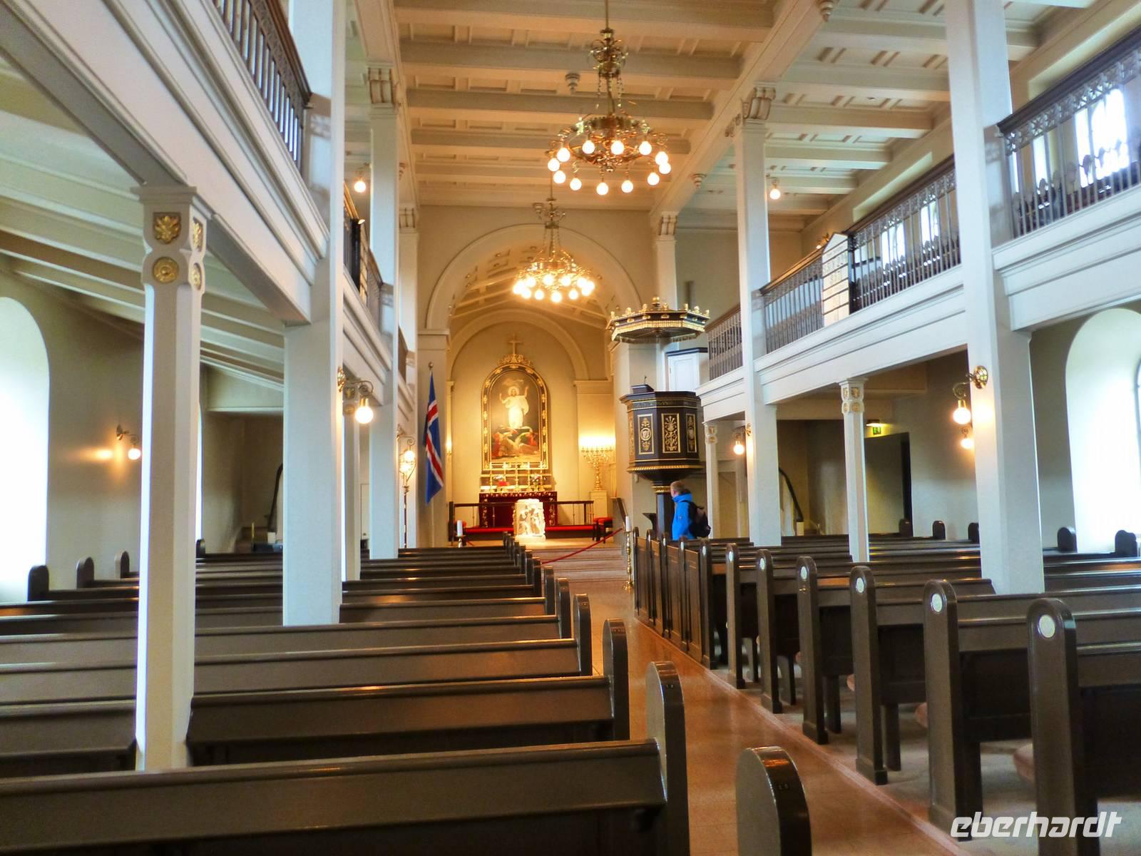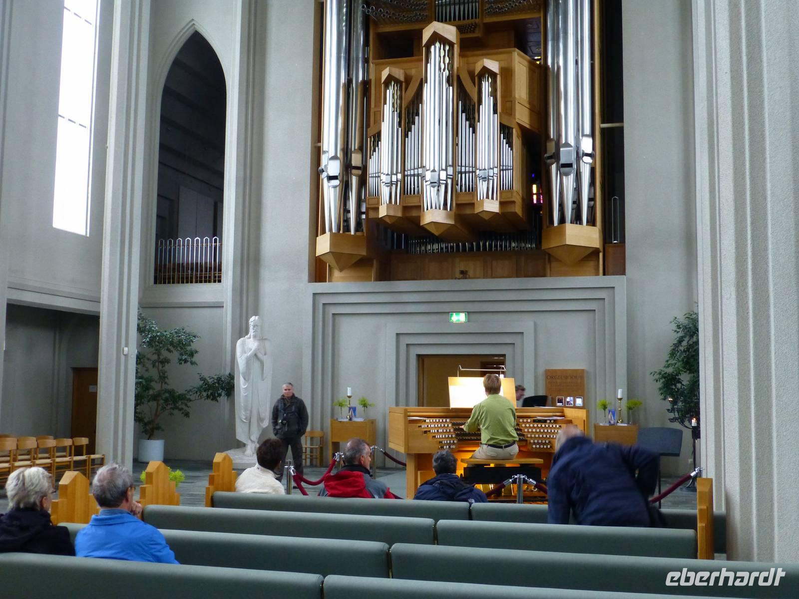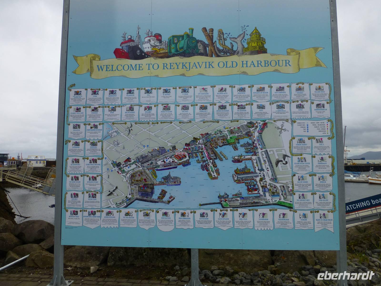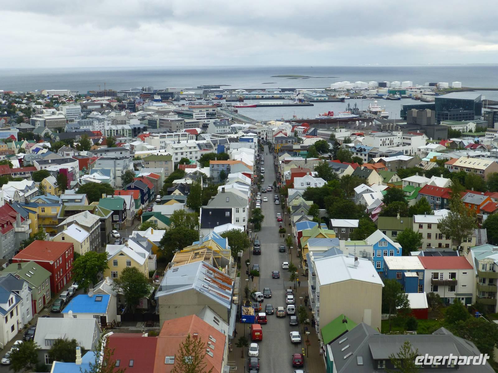 Der letzte Tag unserer Island-Reise war angebrochen. Am Vormittag hatten wir Freizeit in der Hauptstadt Reykjavik. Gemeinsam unternahmen wir einen Stadtspaziergang den Hügel hinauf zur Hallgrimskirche, dem Wahrzeichen Reykjaviks. Wir fuhren mit dem Lift hinauf auf den Kirchturm (Zusatzkosten: 700 ISK) und hatten eine weite Aussicht über die Stadt. Dann spazierten wir hinunter zum Stadtsee Tjörnin und schauten uns im modernen Rathaus eine große Relief-Landkarte von Island an. Vorbei am Parlament und der kleinen Domkirche gingen wir durch die Altstadt zum alten Hafen, wo wir eine Mittagspause in der bekannten Fisch-Kneipe „Seabaron" einlegten.