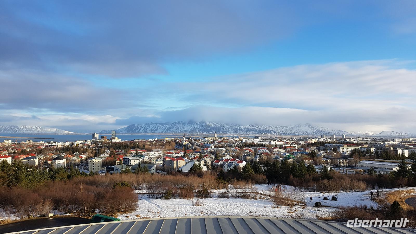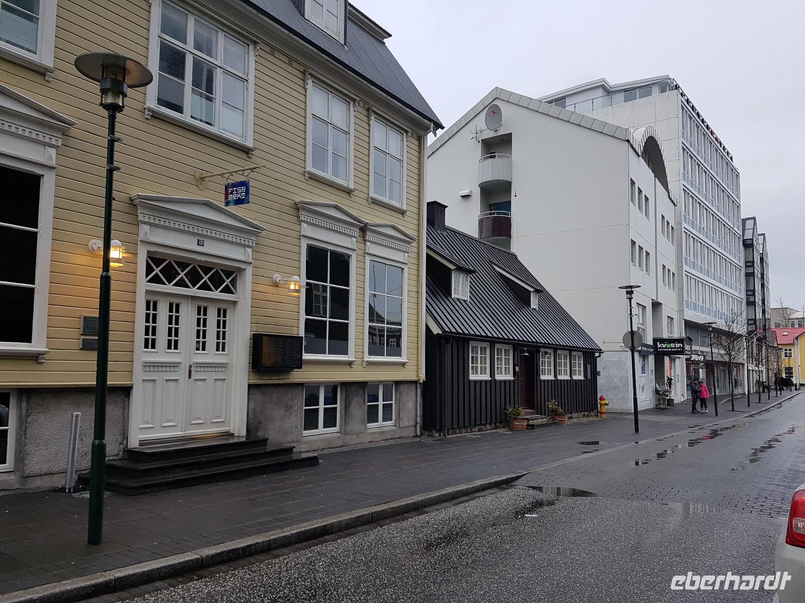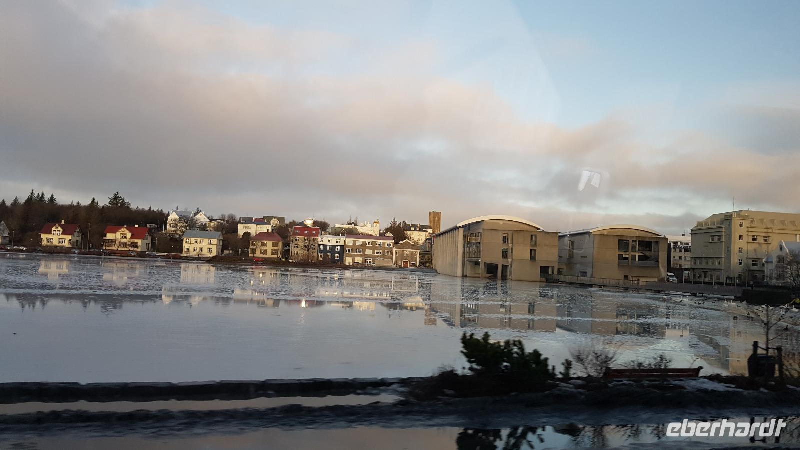 In Berlin Tegel traf sich fast die gesamte Single Gruppe und wir flogen mit ICELAND AIR nach Keflavik. Der Flug war sehr entspannt, jeder hatte einen Bildschirm vor sich und konnte aus dem Unterhaltungsprogramm etwas auswählen. In Keflavik am Kofferband trafen wir eine Teilnehmerin aus Frankfurt kommend und nun war unsere Gruppe komplett. Am Automaten oder am Schalter konnten wir Euro in isländische Kronen tauschen und ich hatte für jeden eine Umrechnungstabelle ausgedruckt für den schnellen Überblick. Mit Stefan fuhren wir ca. 50 km in die isländische Hauptstadt Reykjavik zu unserem Hotel Klettur. Wir bezogen unsere Zimmer und trafen uns dann für eine kurze Vorstellungsrunde und Informationen für die nächsten Tage. Dann gingen wir zu Fuss zum Restaurant Jörgensen. Dort erwartete man schon unsere Gruppe und wir nahmen Platz an einem langen Tisch und freuten uns auf das Abendessen. Es war sehr reichlich und schmackhaft und die Krönung war der Nachtisch. Eigentlich wollten wir danach einen kleinen Verdauungsspaziergang machen, aber die vereisten Fusswege hielten uns davon ab. So gingen wir direkt ins Hotel zurück.