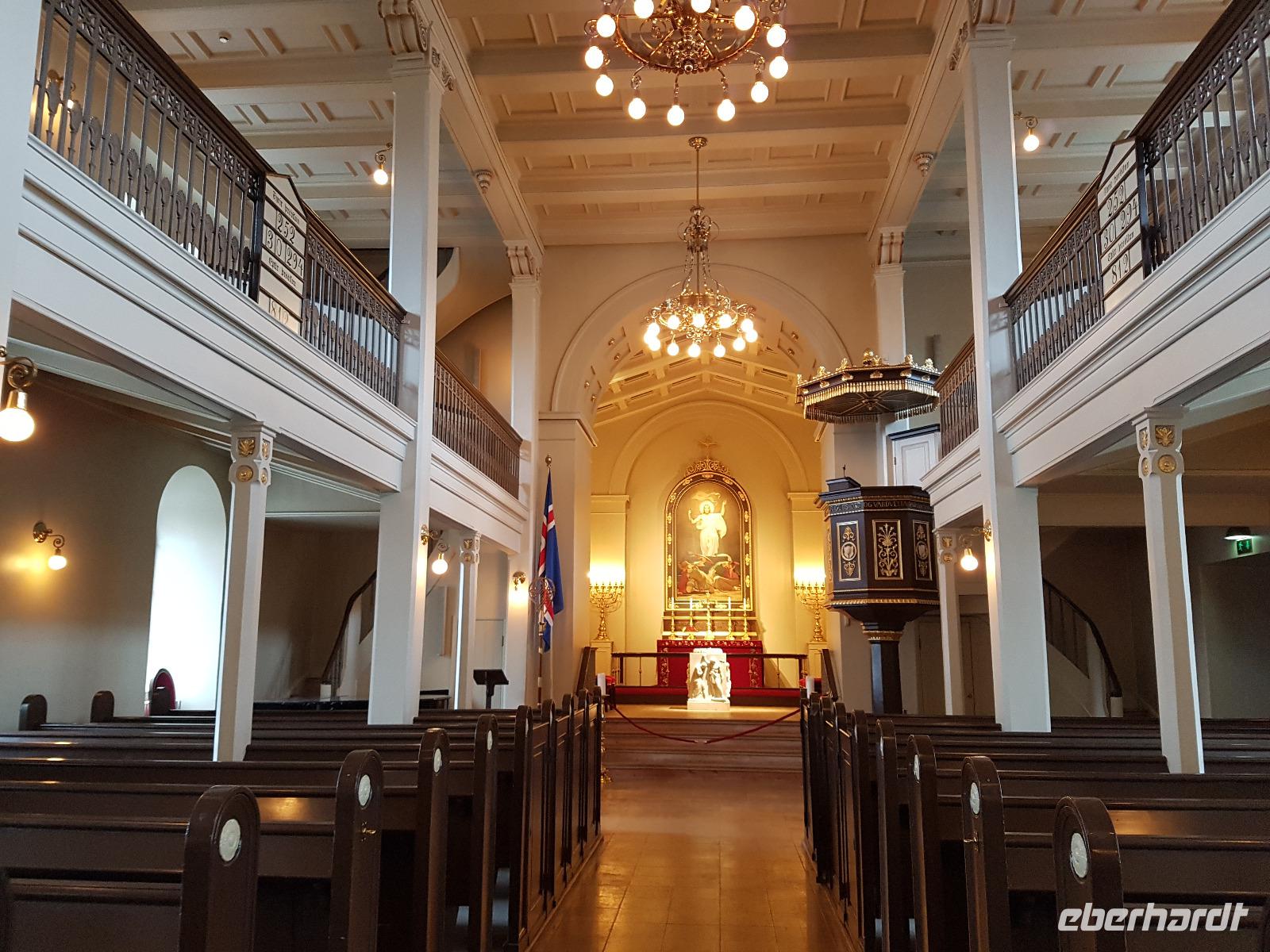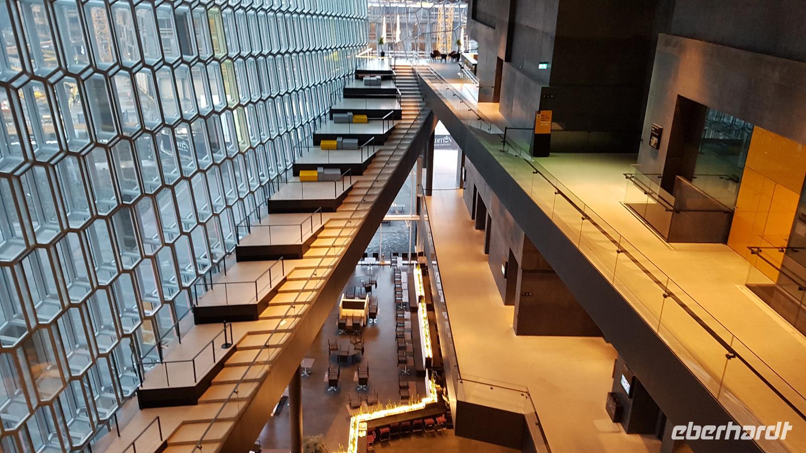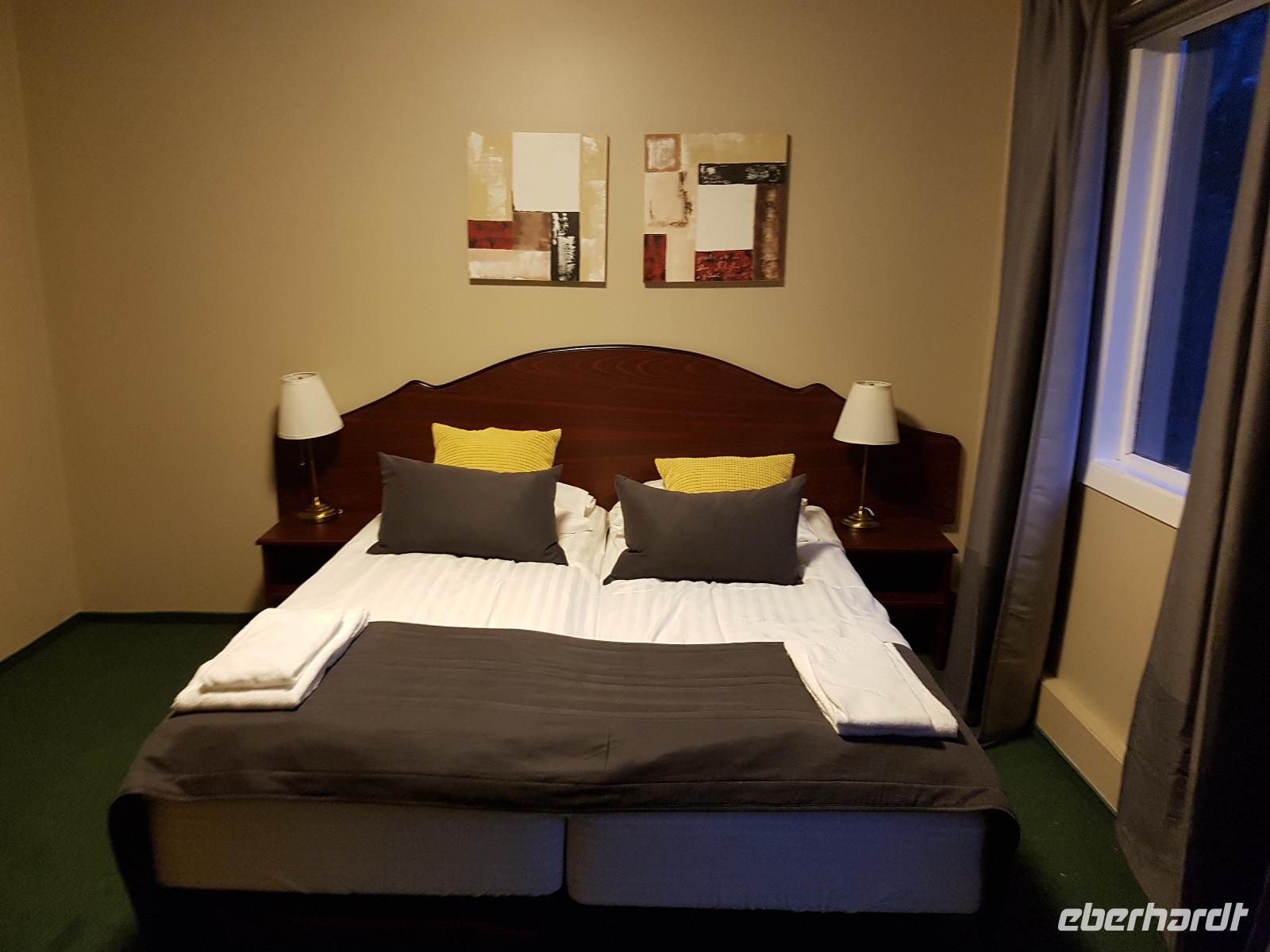 In Berlin Tegel traf sich fast die gesamte Single Gruppe und wir flogen mit ICELAND AIR nach Keflavik. Der Flug war sehr entspannt, jeder hatte einen Bildschirm vor sich und konnte aus dem Unterhaltungsprogramm etwas auswählen. In Keflavik am Kofferband trafen wir eine Teilnehmerin aus Frankfurt kommend und nun war unsere Gruppe komplett. Am Automaten oder am Schalter konnten wir Euro in isländische Kronen tauschen und ich hatte für jeden eine Umrechnungstabelle ausgedruckt für den schnellen Überblick. Mit Stefan fuhren wir ca. 50 km in die isländische Hauptstadt Reykjavik zu unserem Hotel Klettur. Wir bezogen unsere Zimmer und trafen uns dann für eine kurze Vorstellungsrunde und Informationen für die nächsten Tage. Dann gingen wir zu Fuss zum Restaurant Jörgensen. Dort erwartete man schon unsere Gruppe und wir nahmen Platz an einem langen Tisch und freuten uns auf das Abendessen. Es war sehr reichlich und schmackhaft und die Krönung war der Nachtisch. Eigentlich wollten wir danach einen kleinen Verdauungsspaziergang machen, aber die vereisten Fusswege hielten uns davon ab. So gingen wir direkt ins Hotel zurück.