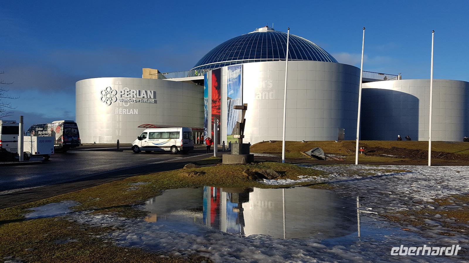 Ausgeruht und nach einem guten Frühstück holte uns Anna Lara, unsere Busfahrerin und Reiseleiterin für die gesamte Tour durch Island, am Hotel ab. Unsere Koffer wurden im kleinen Anhänger verstaut und wir machten es uns im Kleinbus gemütlich. Unser erster Stopp war am Konzerthaus Harpa und wir fuhren mit dem Fahrstuhl ganz nach oben, um den Blick durch die vielen kleinen kunstvoll gestalteten Fenster auf die Stadt zu geniesen. Die Harpa ist das kulturelle und soziale Zentrum der Stadt und ihr Name ging als Gewinner eines grossen Wettbewerbes zur Namensfindung hervor. 2011 fand im Mai das erste Konzert statt. Weiter fuhren wir an der Küste entlang in das Hafenviertel, dort wo noch heute die Fischer ihren Fang bringen und sich das Maritime Museum und das Walmuseum befinden. Durch die Innenstadt ins Universitätsviertel, vorbei am Tjörnin und dem neuen Rathaus erreichten wir die Hallgrimskirkja mit ihrem imposanten 75 m hohen Turm. Das Innere der Kirche besticht durch eine schlichte Eleganz. Im Sommer gibt es regelmässig Konzerte auf der grossen Orgel. Unser dritter Halt war auf dem Hügel am Perlan. 6 Edelstahltanks werden von einer Glaskuppel überspannt und in 5 Tanks wird das heisse Wasser für die Haushalte der Stadt gebunkert. Wir nahmen den Fahrstuhl ganz nach oben und betrachteten von der umlaufenden Aussichtsplattform Reykjavik und die umliegenden Berge bei Sonnenschein. Zum Mittagessen fuhren wir weiter nach Borganes.