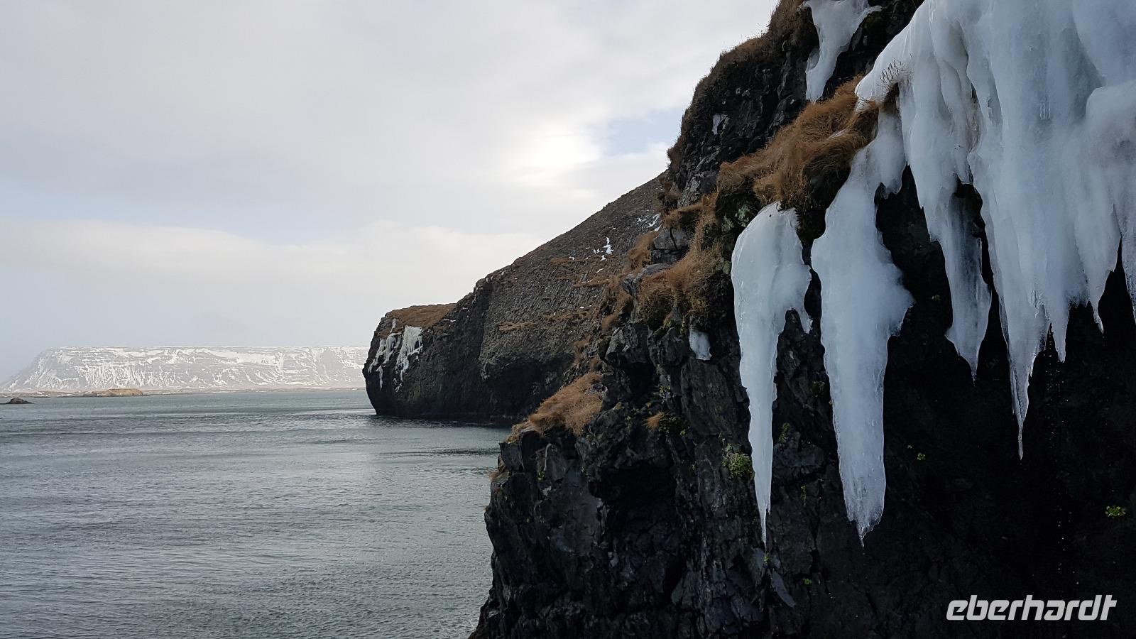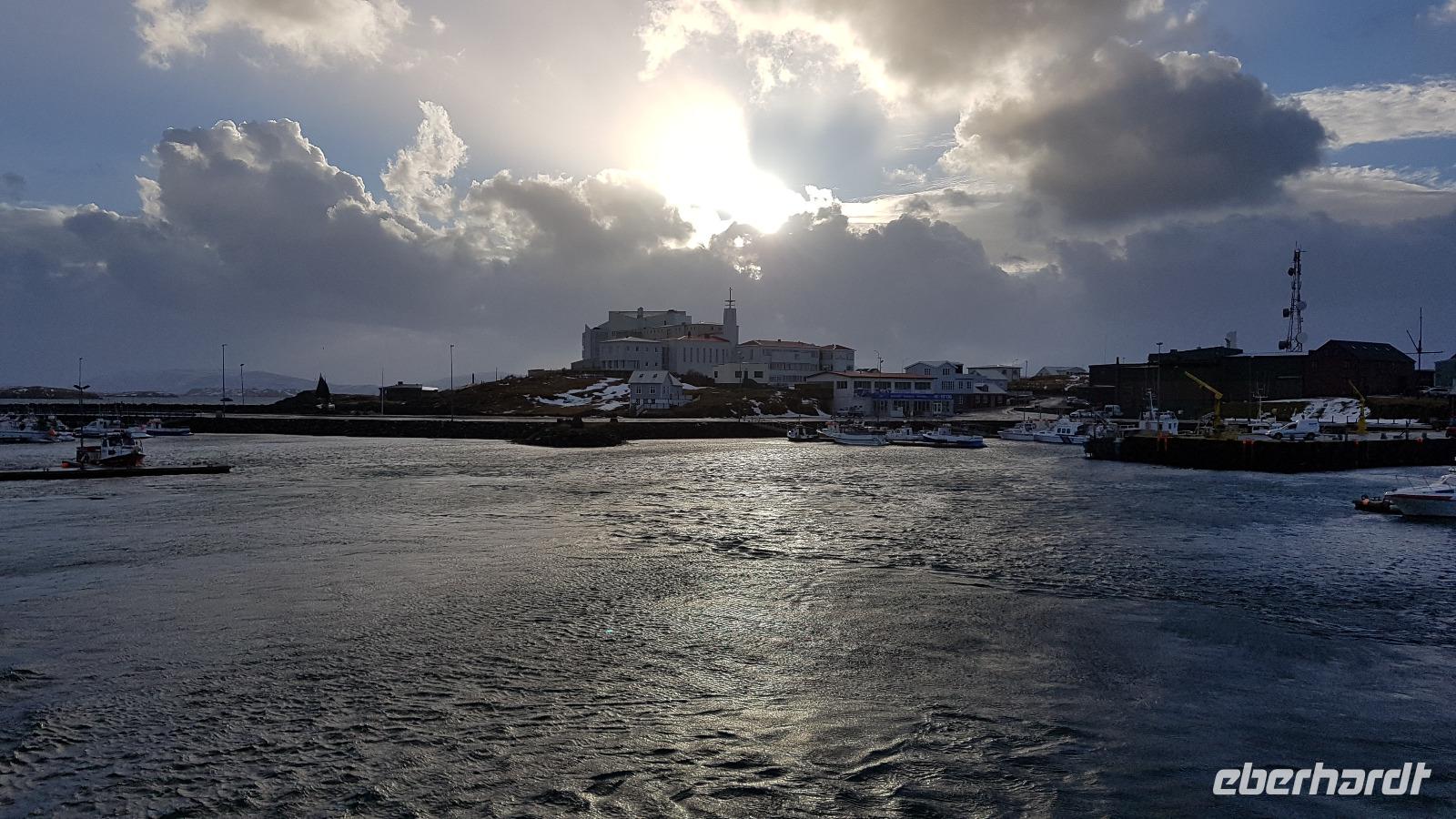 Nach einem sehr guten Frühstück brachen wir auf zur Fahrt auf die Halbinsel Snaefellsnes. Unterwegs machten wir einen Fotostopp und bald erreichten wir Stykkisholmur. Leider war die imposante Kirche dort geschlossen und so fuhren wir gleich zum Hafen auf eine Kaffeepause.
