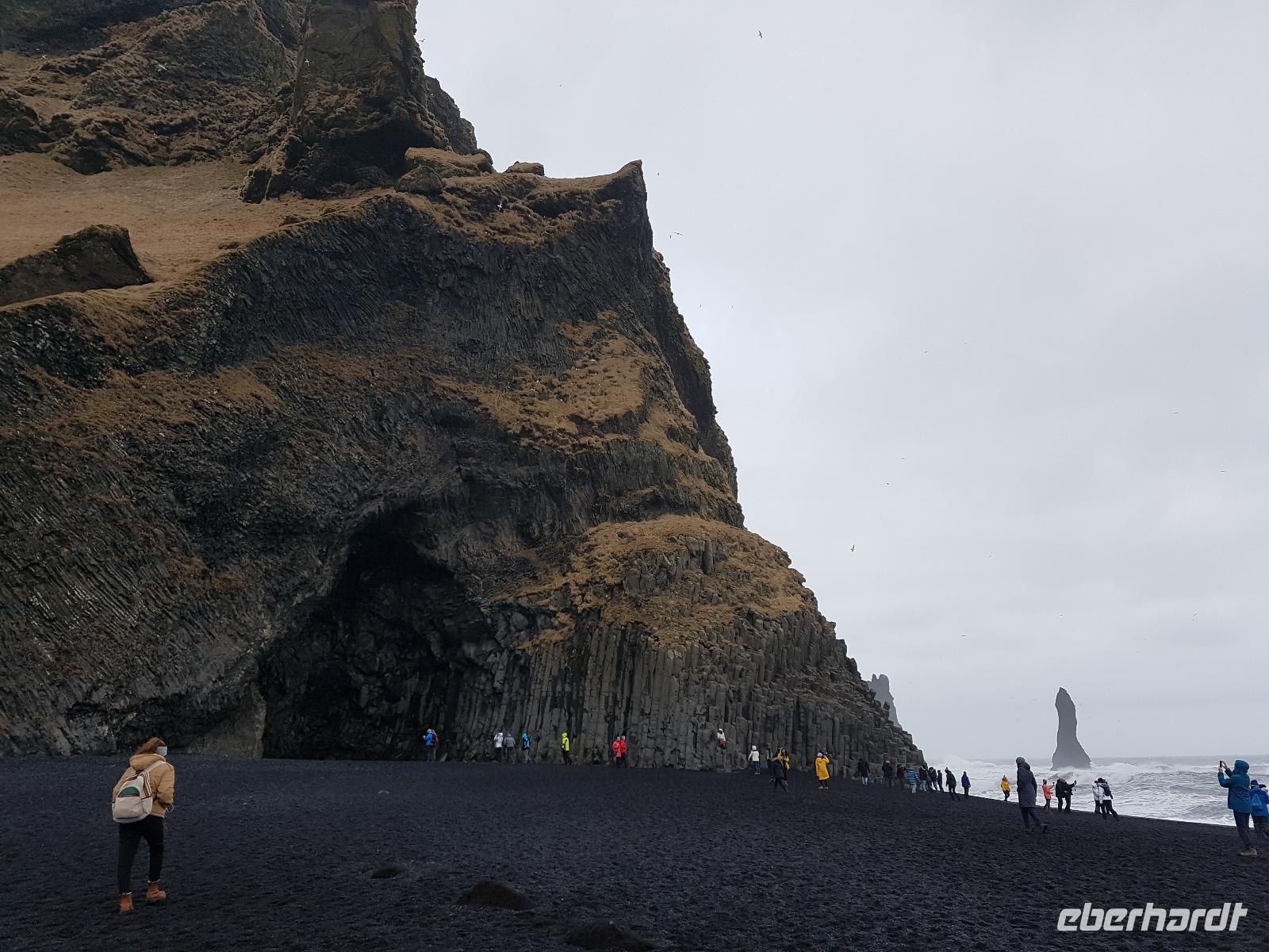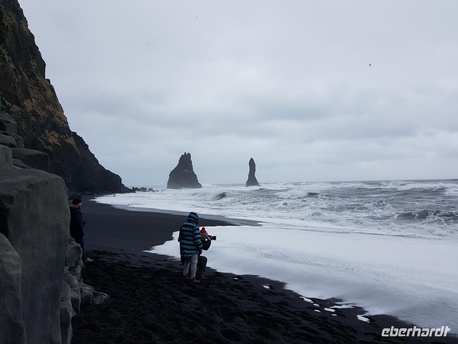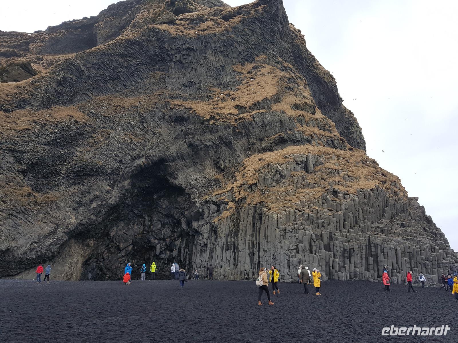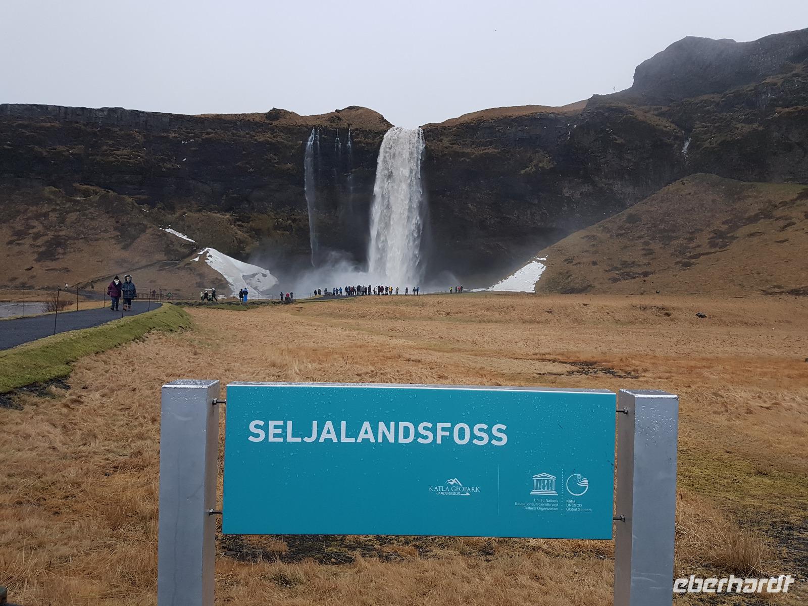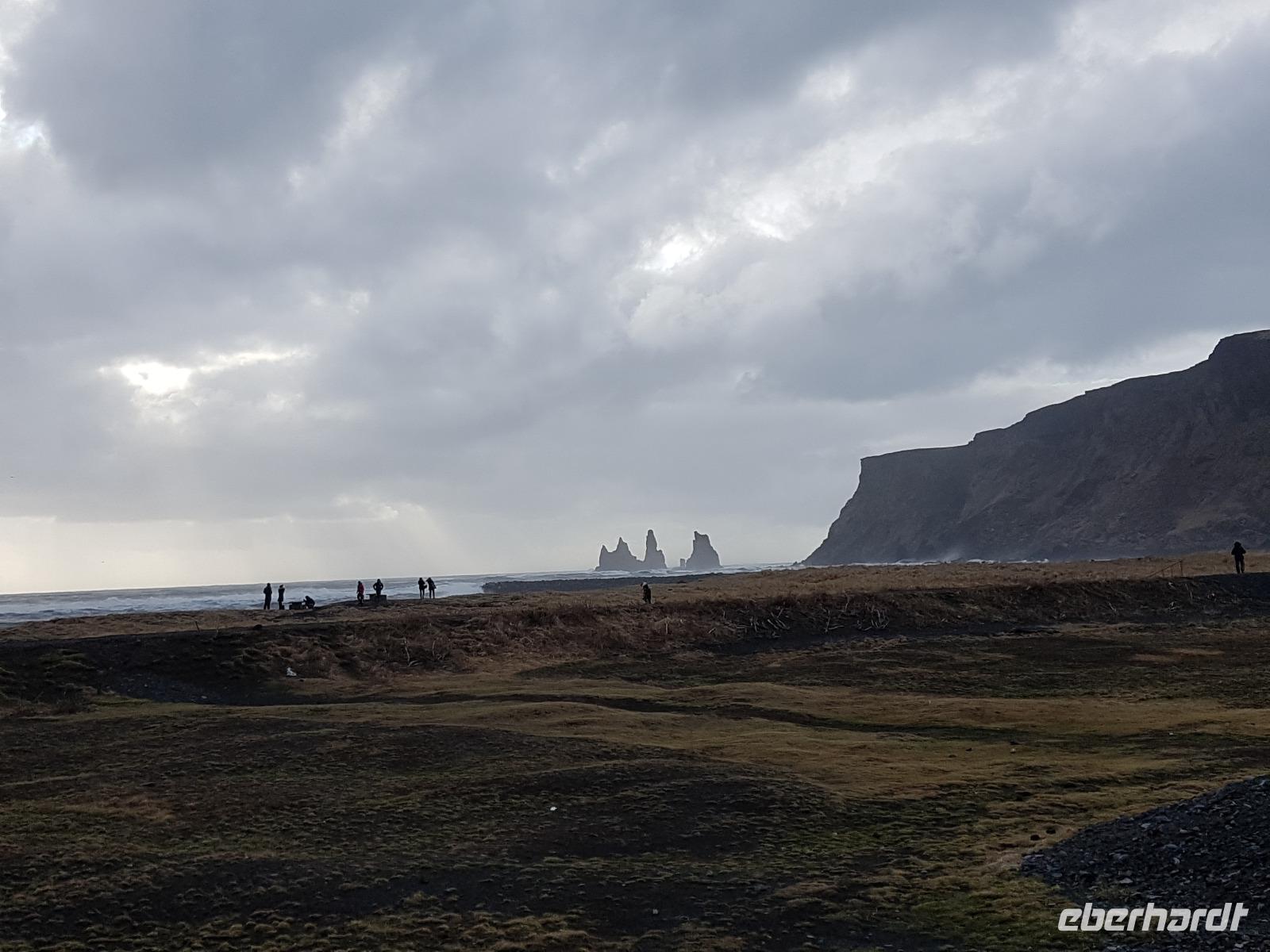 9 Uhr brachen wir wieder auf gen Süden. Unser erster Halt war am Seljalandwasser, hinter dem man im Sommer auch lang laufen kann. Im Winter jetzt war alles vereist und der Weg dahinter gesperrt. Dennoch war es ein feuchtes Vergnügen. Wenig später erreichten wir Skogar und begannen mit der Besichtigung im Museum Skogasafn. Martina führte uns und schilderte sehr anschaulich das schwere Leben auf Island in der Vergangenheit. Unzählige Gegenstände wurden hier von Pordur Tomasson zusammen getragen und sie sind wunderbar präsentiert. Auch die alten Torfhäuser im Freigelände erzählten viel über das entbehrungsreiche Leben der Bevölkerung. Seit 2002 ist noch ein Verkehrs- und Technikmuseum dazu gebaut worden. Leider setzte nun der angekündigte Regen ein und so hielten wir uns am Skogar Wasserfall nur ganz kurz auf für ein Foto und trafen uns dann im nahe gelegenen Bistro bei einer warmen Suppe wieder.