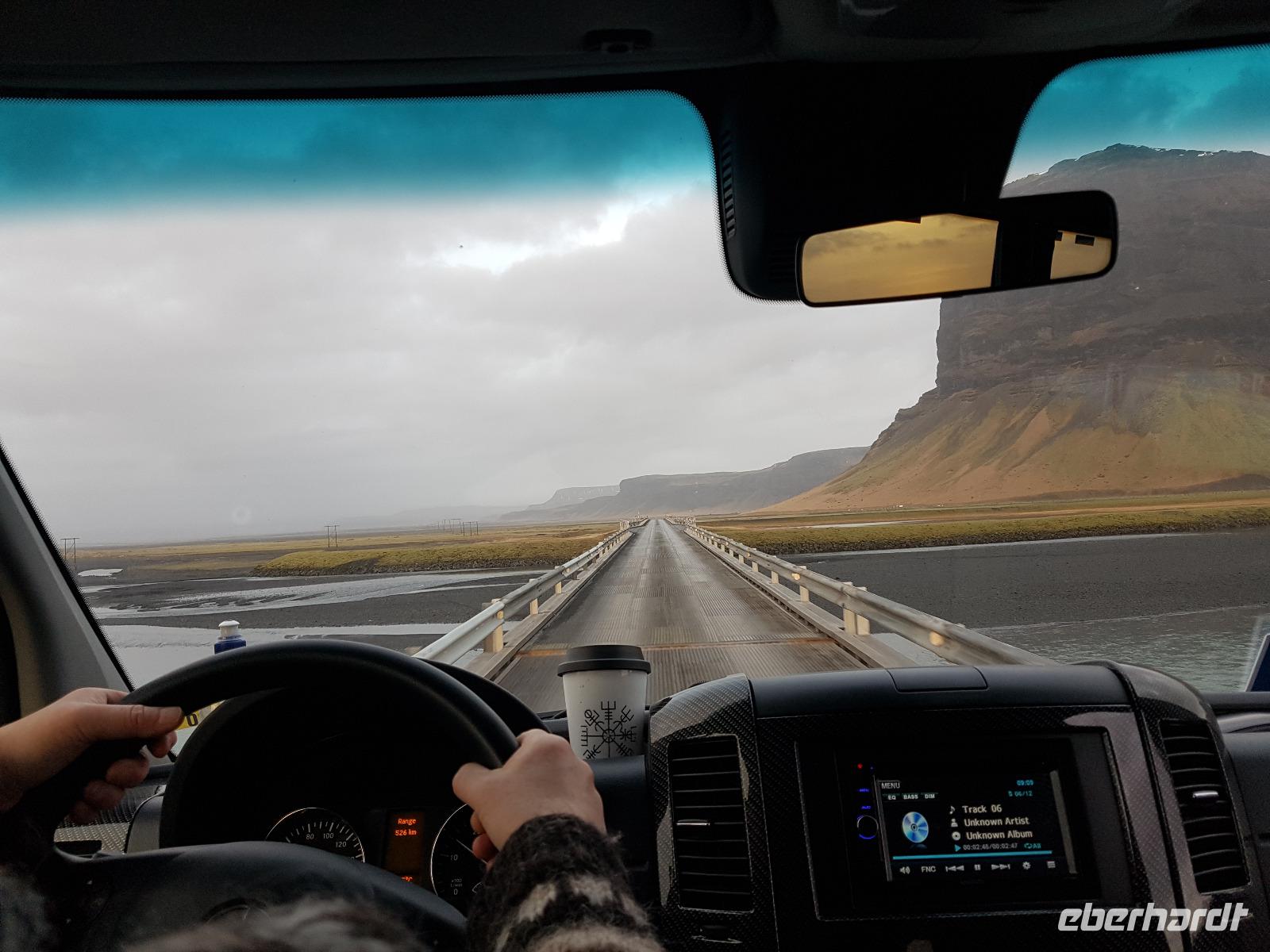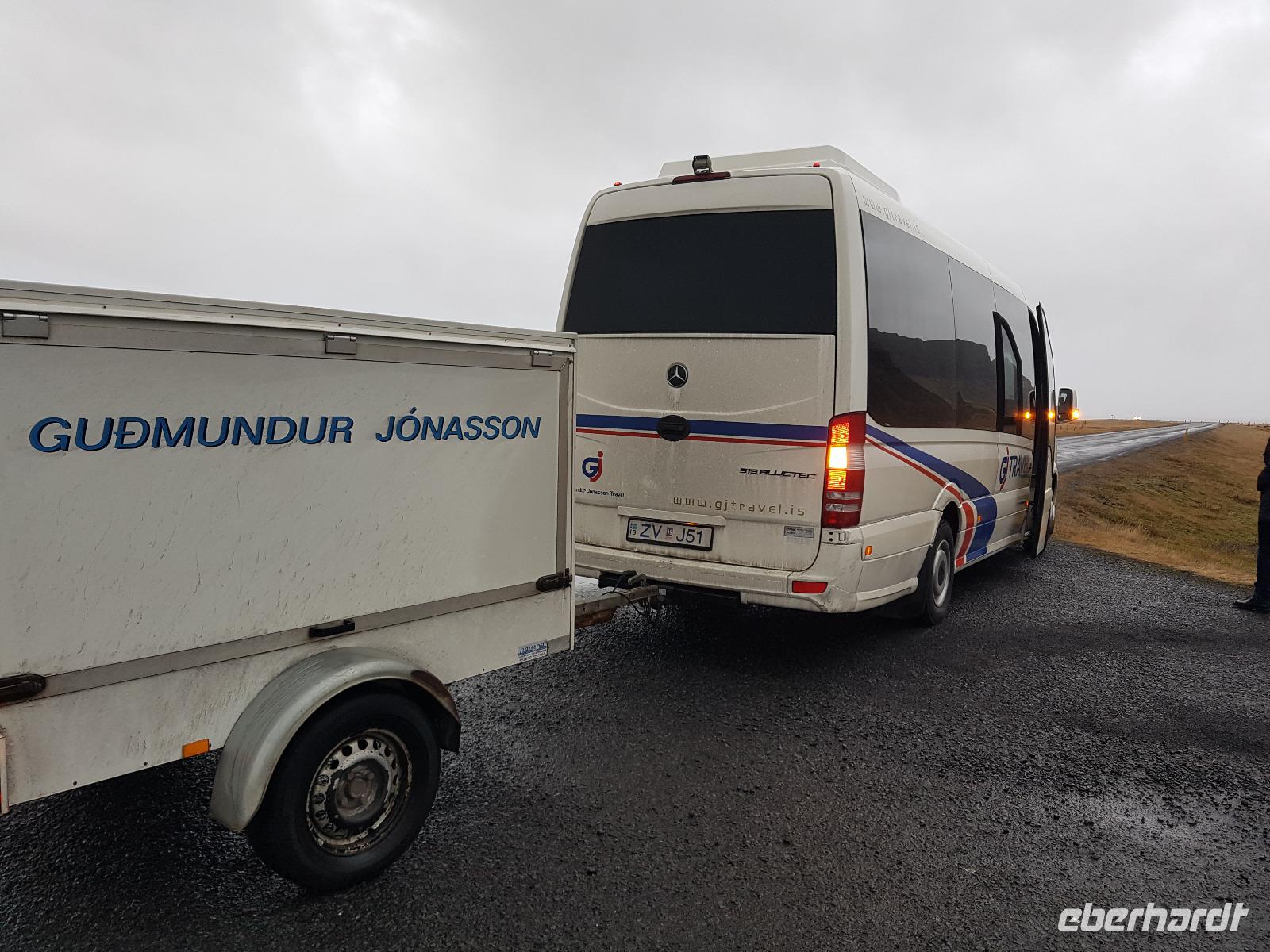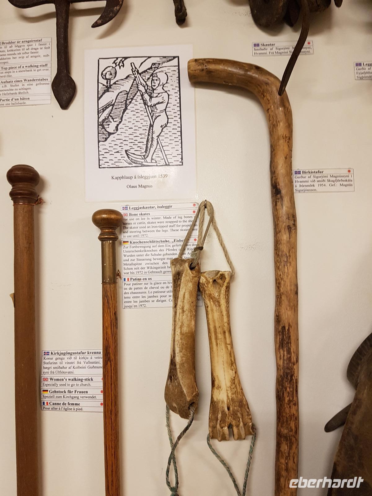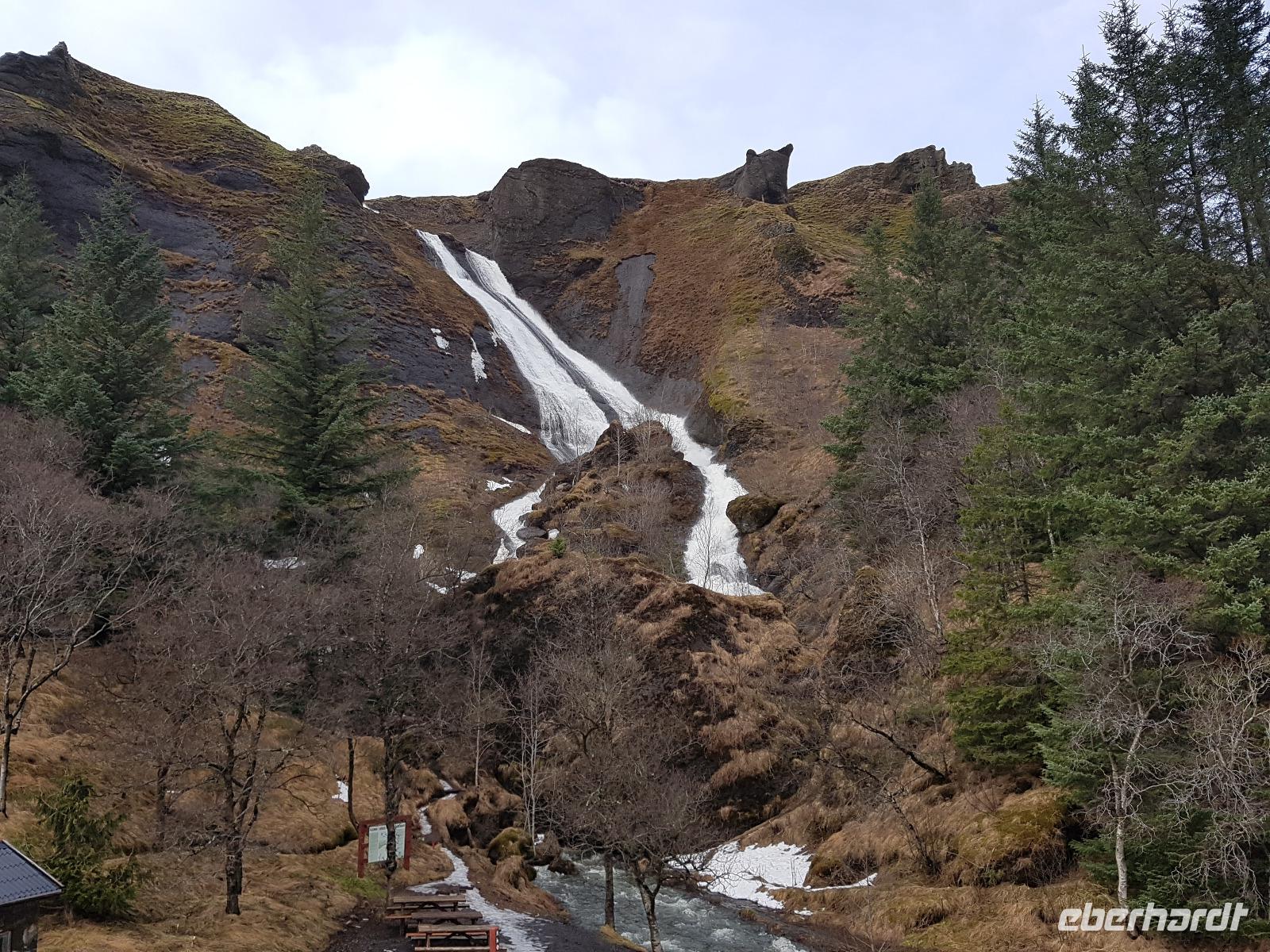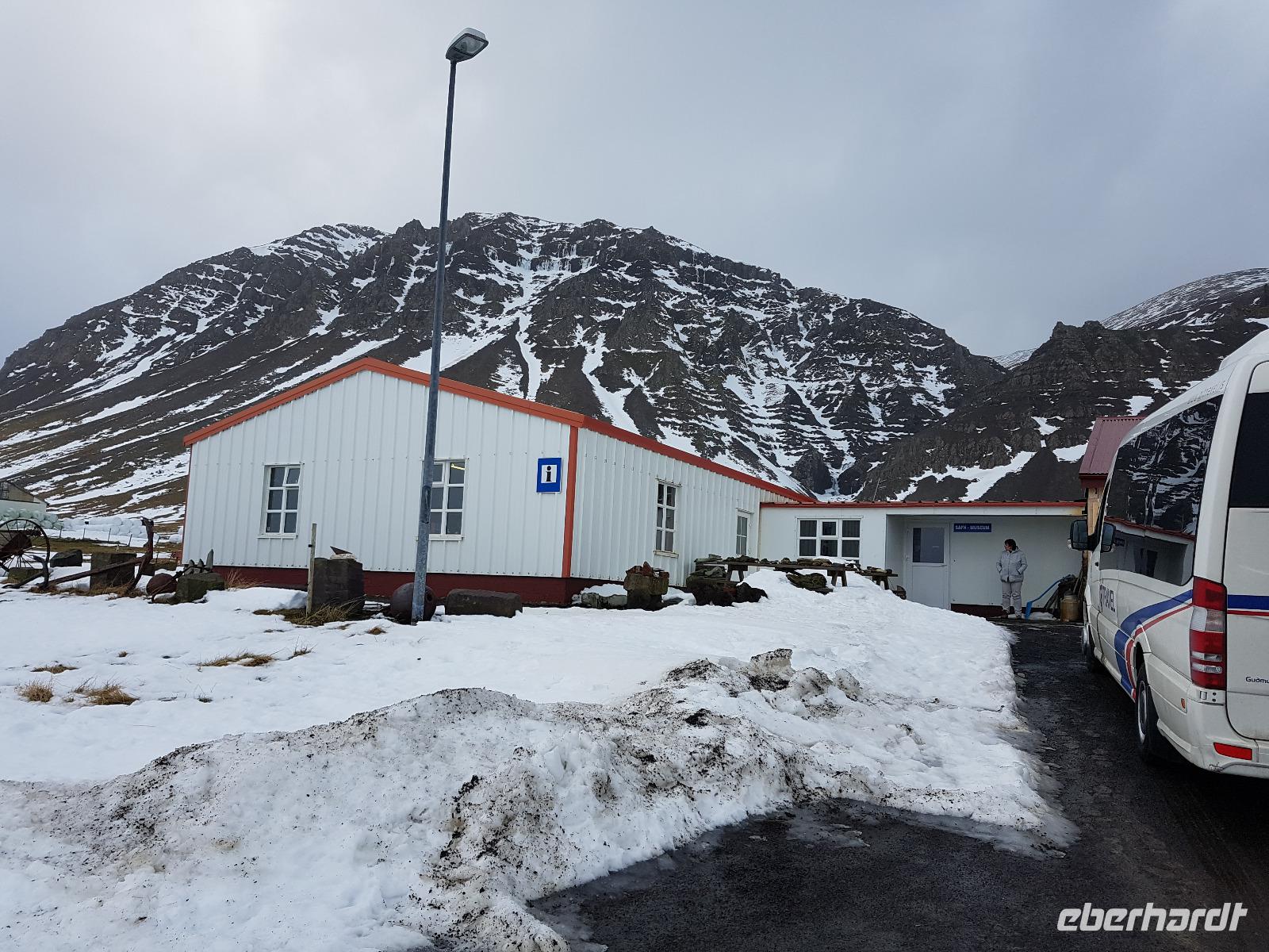 9 Uhr brachen wir wieder auf gen Süden. Unser erster Halt war am Seljalandwasser, hinter dem man im Sommer auch lang laufen kann. Im Winter jetzt war alles vereist und der Weg dahinter gesperrt. Dennoch war es ein feuchtes Vergnügen. Wenig später erreichten wir Skogar und begannen mit der Besichtigung im Museum Skogasafn. Martina führte uns und schilderte sehr anschaulich das schwere Leben auf Island in der Vergangenheit. Unzählige Gegenstände wurden hier von Pordur Tomasson zusammen getragen und sie sind wunderbar präsentiert. Auch die alten Torfhäuser im Freigelände erzählten viel über das entbehrungsreiche Leben der Bevölkerung. Seit 2002 ist noch ein Verkehrs- und Technikmuseum dazu gebaut worden. Leider setzte nun der angekündigte Regen ein und so hielten wir uns am Skogar Wasserfall nur ganz kurz auf für ein Foto und trafen uns dann im nahe gelegenen Bistro bei einer warmen Suppe wieder.