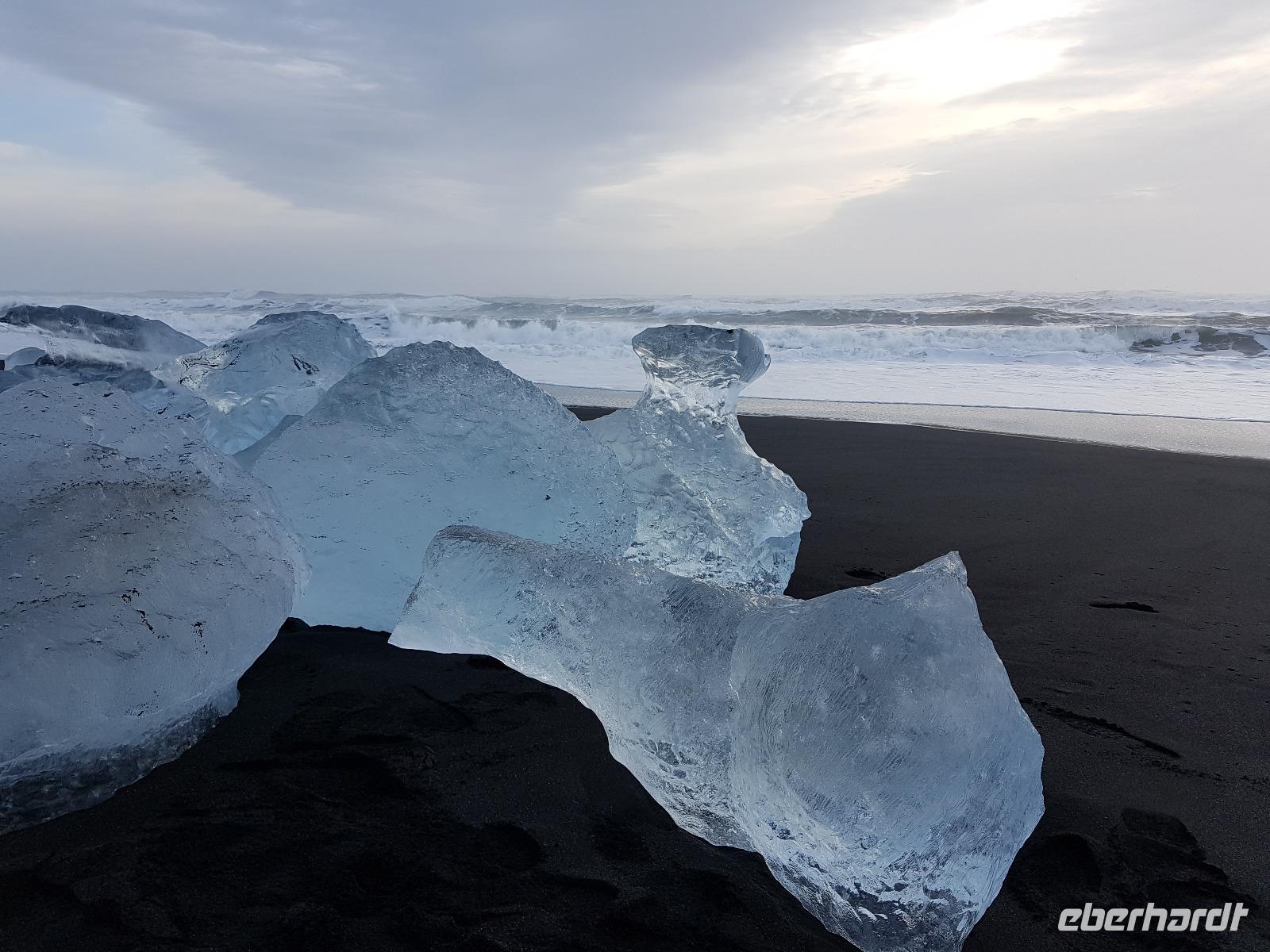 Island im Winter war nicht so kalt und so dunkel wie erwartet. Wir wollten Nordlichter sehen, erlebten dafür aber ein seltenes Gewitter. Riesige Eisberge am Lavastrand, vereiste Wasserfälle und wohlsc