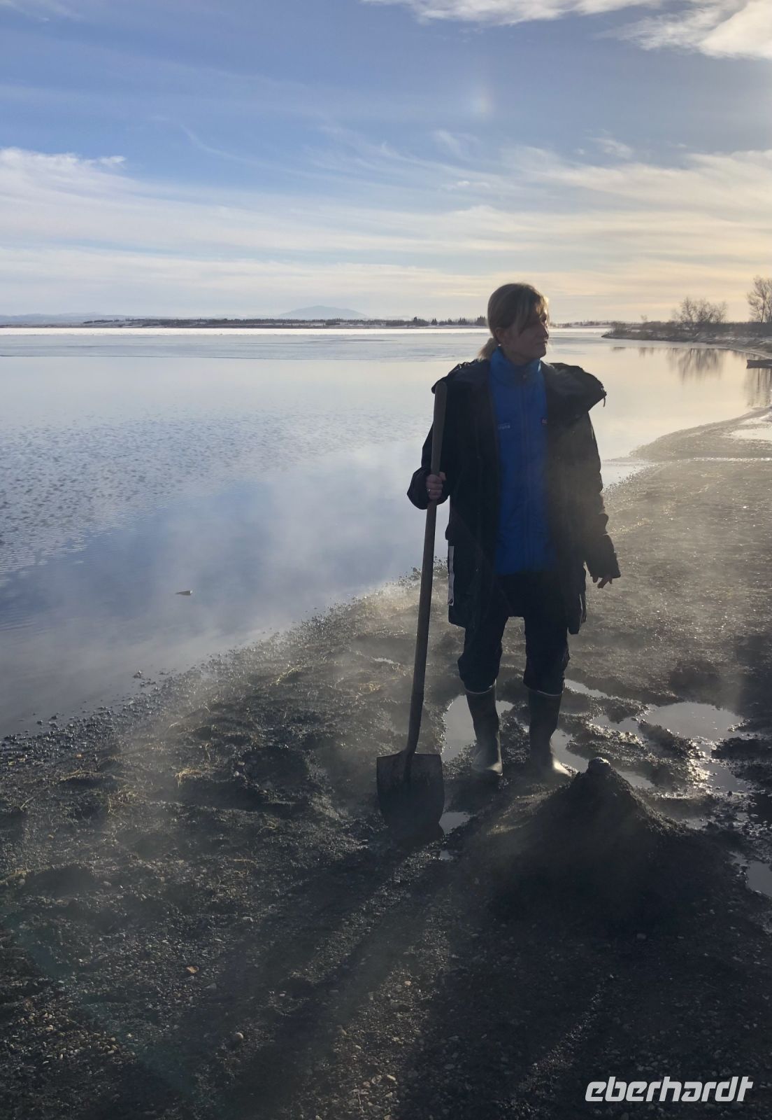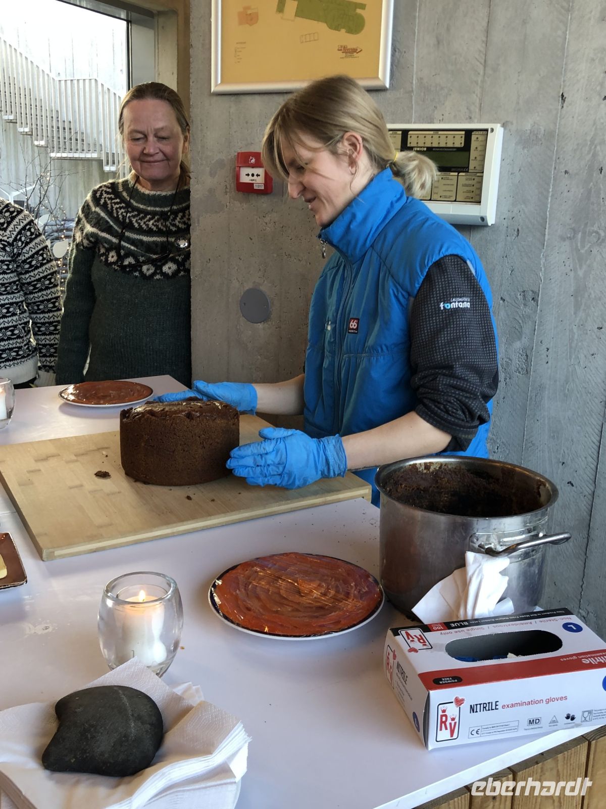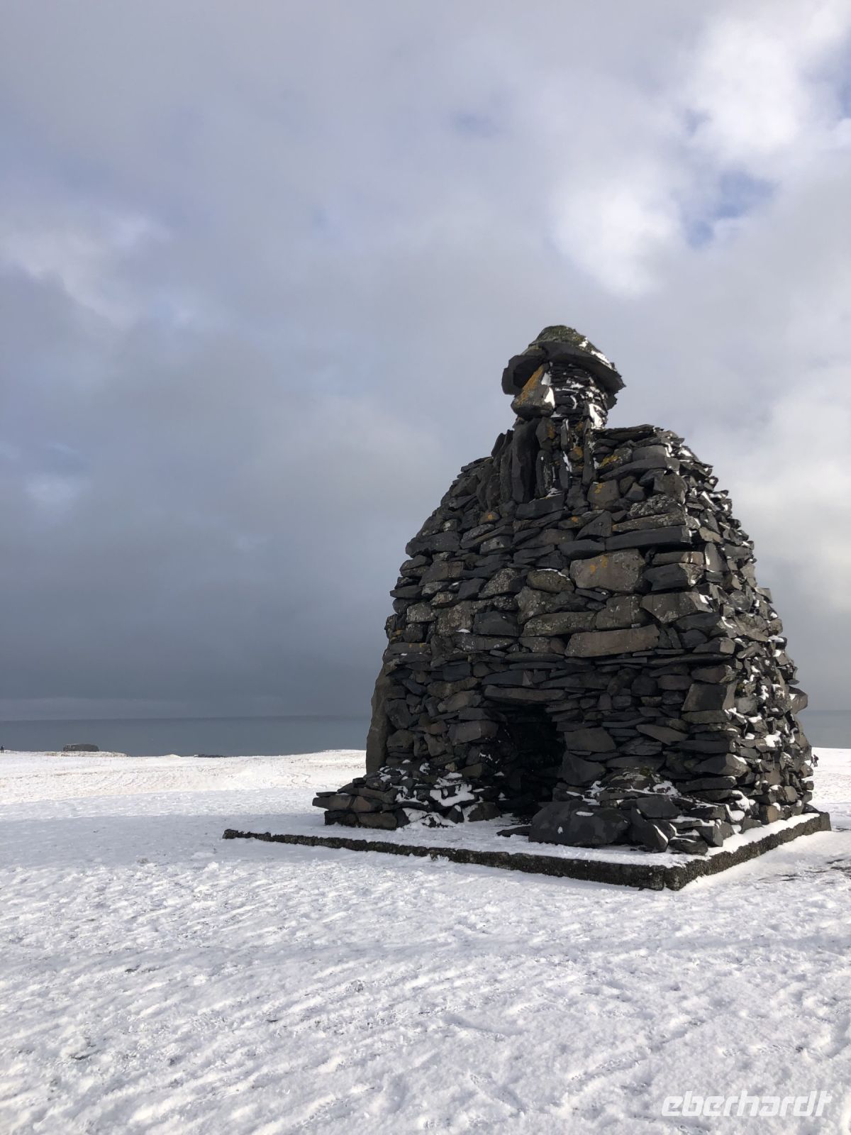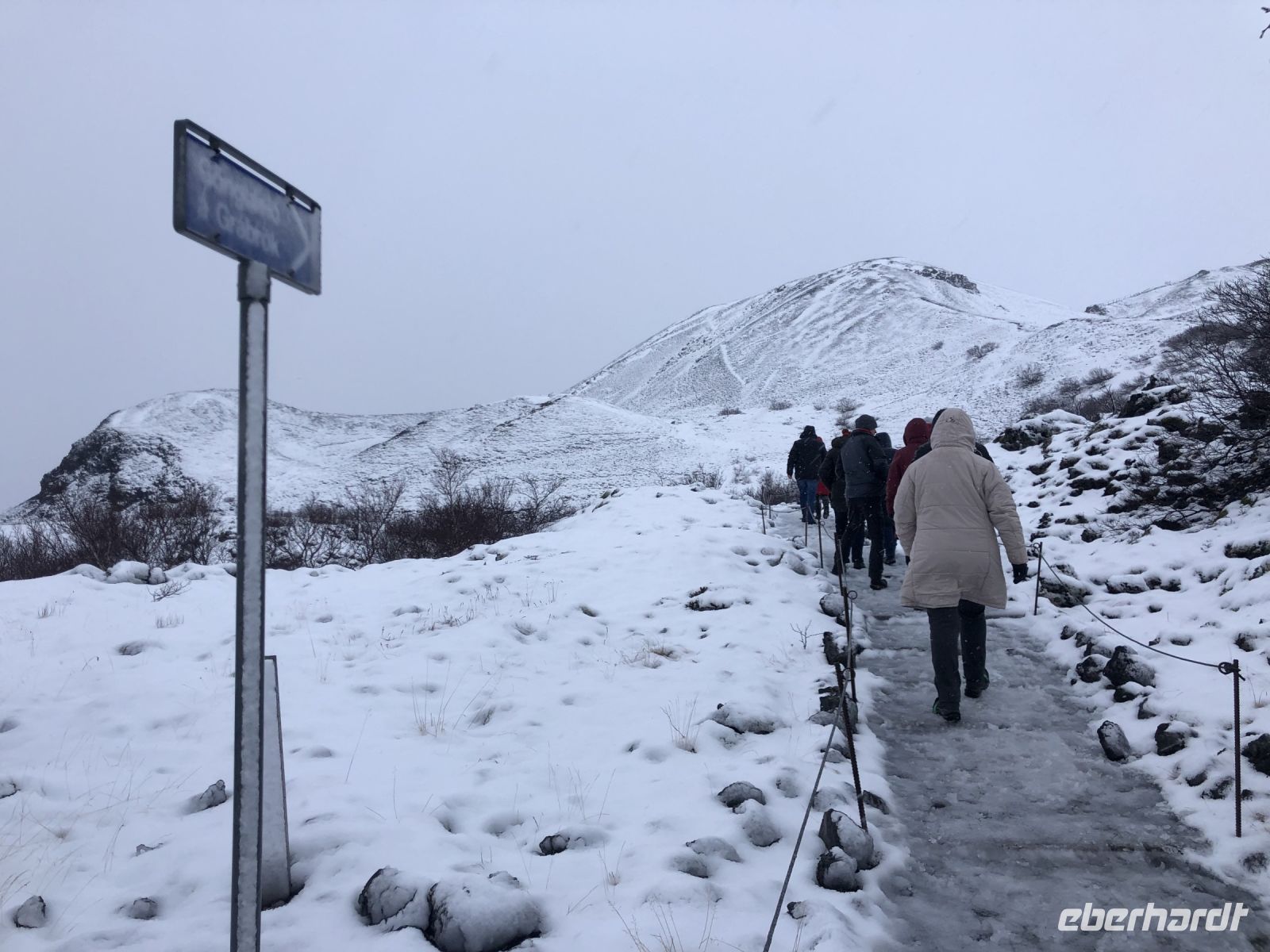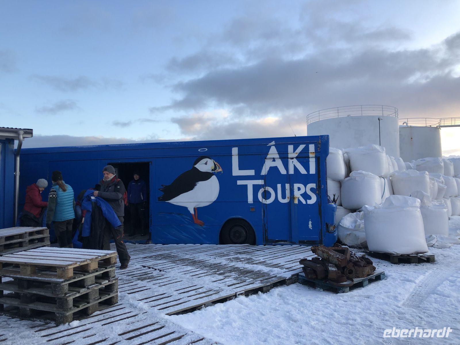 Es steht mal wieder ein aufregender Tag an. Wir machen uns zunächst auf den Weg zur Snæfelssness Halbinsel, die zahlreiche landschaftliche Schönheiten aufzuweisen hat und auch als „Island in Miniatur“ bekannt ist. Im Gegensatz zum gestrigen Tag, haben wir heute traumhaftes Wetter. Wir fahren mit unserem modernen Reisebus durch die endlos weiten, schneebedeckten Landschaften, die wie gemalt aussehen, bis zum kleinen Fischerörtchen Olafsvik. Auf dem Weg müssen wir die perfekte Kulisse um den Mount Kirkjufell noch einmal für einen kurzen Fotostopp ausnutzen. In Olafsvik angekommen werden wir von einer deutschen Mitarbeiterin zunächst mit blauen Overalls ausgestattet, die uns auf dem Boot vor Wind und Wetter schützen sollen. In voller Montur betreten wir das Schiff und verbringen hier die nächsten 3 Stunden. Wir haben Glück und sehen 2 Buckelwale, neben den wahnsinnig schönen Fjordlanschaften, die wir hinter uns lassen. Von einer entspannten Fahrt kann man aber nicht wirklich sprechen, denn der Seegang hatte es ganz schön in sich - so schaukelten wir vor uns hin und haben teilweise etwas mit unserem Magen zu kämpfen - Fischfutter gab es von unserer Gruppe allerdings nicht ;-) Trotz spektakulären Aussichten auf die umliegenden Landschaften freuen wir uns, wieder auf festem Boden zu sein. Im Anschluss an die Schifffahrt umkreisen wir die Halbinsel und unternehmen noch einen erfrischenden Spaziergang zu einem wunderschönen Aussichtspunkt. Da die Hakarl Manufaktur geschlossen hat, besuchen wir zum Abschluss des Tages noch das urige Einsiedlermuseum, wo wir entweder die Geschichte der Siedler Islands nähergebracht bekommen oder die isländische Saga um Egill Skallagrímsson.