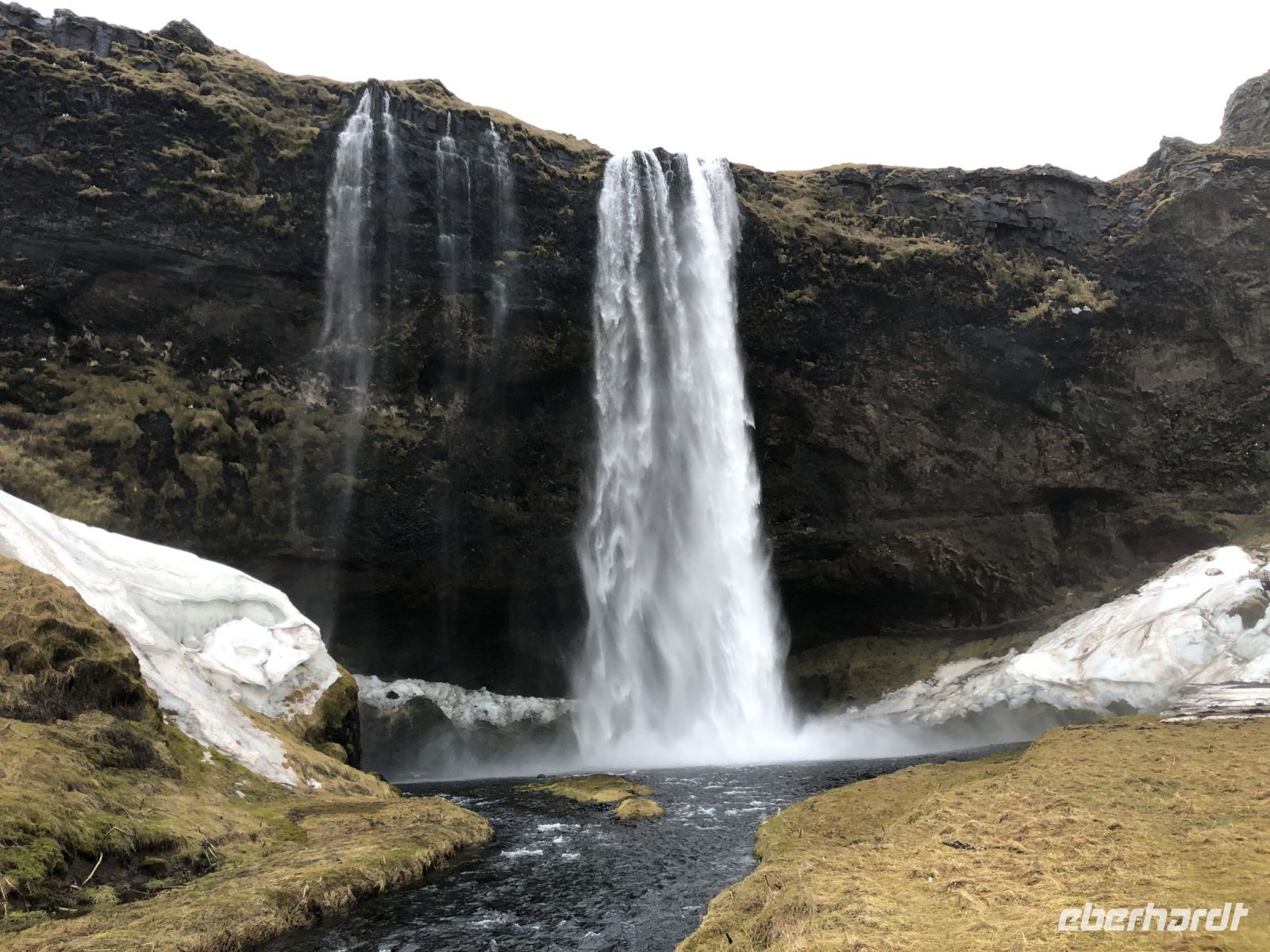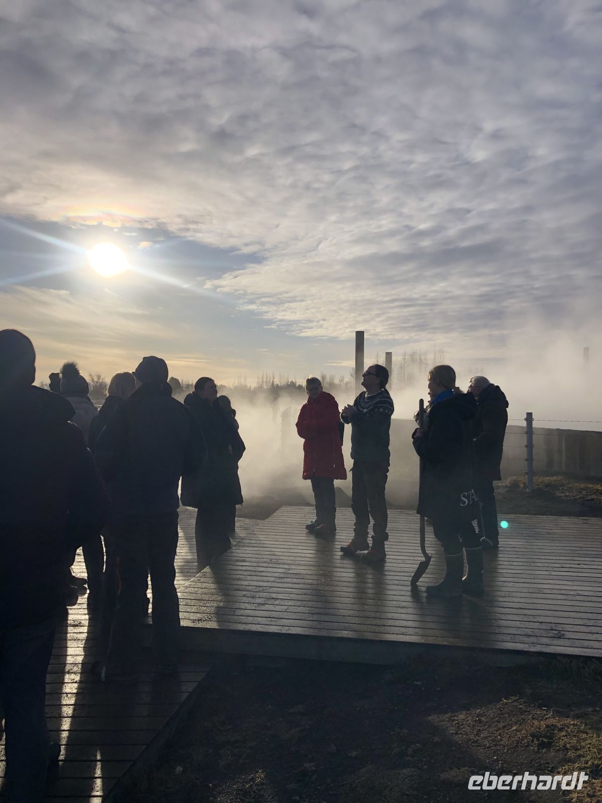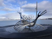 Der letzte Programmtag unserer Rundreise steht an. Wir haben heute eine lange Fahrt nach Reykjavik vor uns, daher starten wir relativ zeitig. Auf dem Weg planen wir einen Stopp am Seljalandfoss, der ungefähr auf halber Strecke zwischen Kirkjubæjarklaustur und Reykjavik liegt. Obwohl wir früh dran sind, sind hier schon viele andere Touristen unterwegs. Eigentlich haben wir uns darauf gefreut, hinter dem Wasserfall entlangzulaufen, allerdings sehen wir schon von Weitem, dass der Fußweg komplett verschneit und vereist ist, daher wurde dieser leider vorübergehend gesperrt. Aber das macht nichts, denn auch die Vorderansicht ist schon beeindruckend. Die Fahrt geht weiter, zurück in die isländische Hauptstadt - wo alles begann. Ungefähr 2 Stunden brauchen wir vom Seljalandsfoss. Anna zeigt uns mit dem Bus noch ein paar Museen, Restaurants & Aktivitäten, die wir in den nächsten 4 Stunden unternehmen bzw. besuchen können. Alle verbringen die freie Zeit individuell und besuchen zum Beispiel, die Attraktion „Fly over Iceland“ - ein virtueller Flug über Island, gehen bummeln auf der Einkaufsstraße oder testen die isländischen Köstlichkeiten der Stadt aus. Auch ein Spaziergang entlang des Hafens mit den schneebedeckten Bergen im Hintergrund, vorbei an der „Sonnenfahrt“-Skulptur, bietet sich gut an. Gegen Abend werden wir von unserem Bus abgeholt, der uns zur Blauen Lagune bringt. Hier können wir zum Abschluss nochmal richtig schön in dem eisblauen, heißen Thermalwasser entspannen. Bei einer Schlammmasse und einem Getränk von der Lagos-Bar genießen wir die letzten Stunden der Reise und habe eine Menge Spaß.