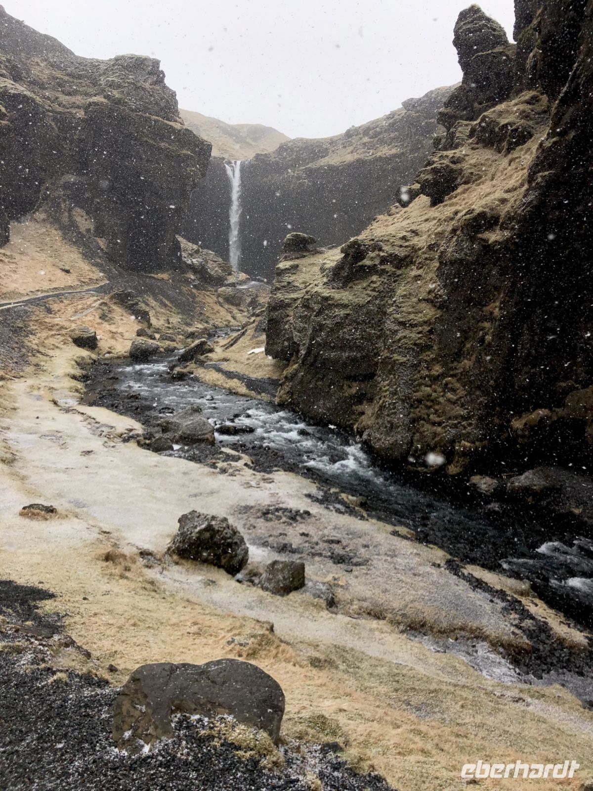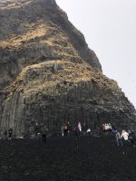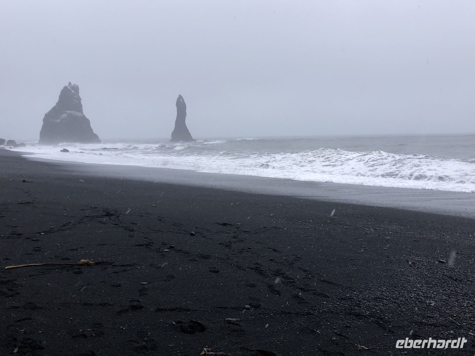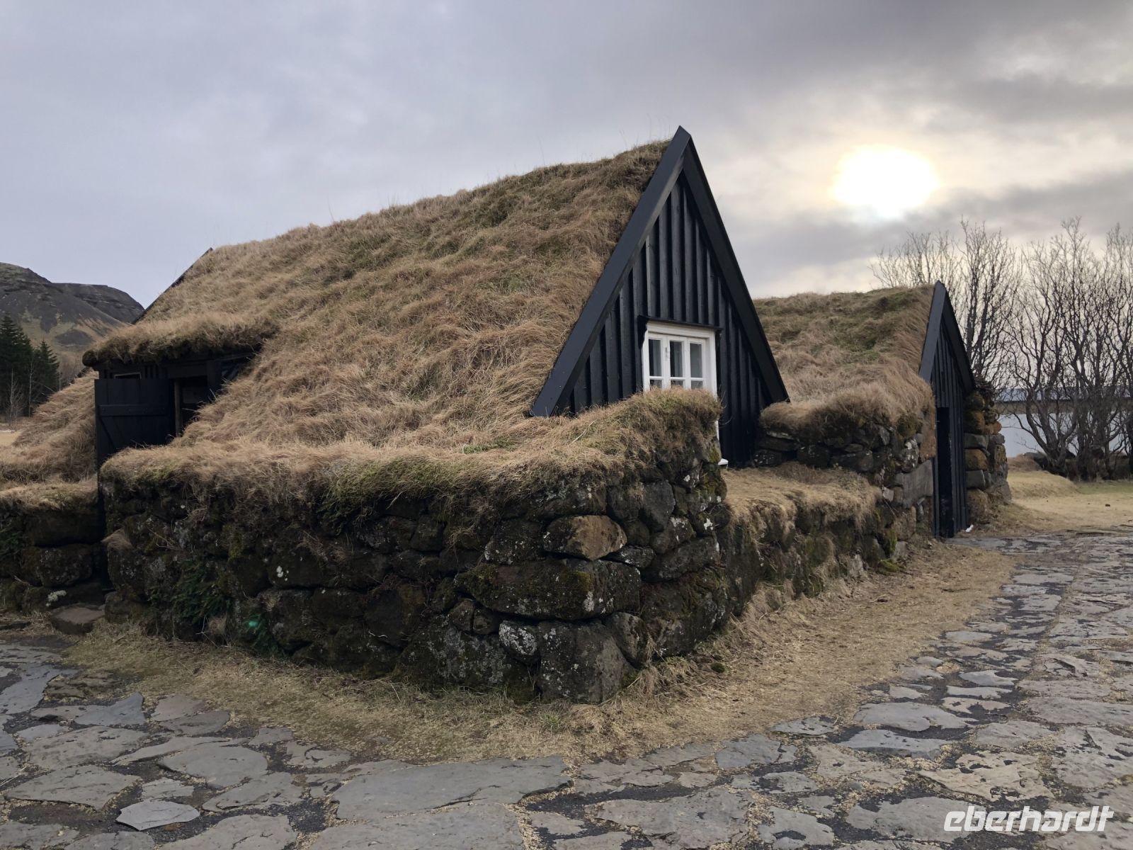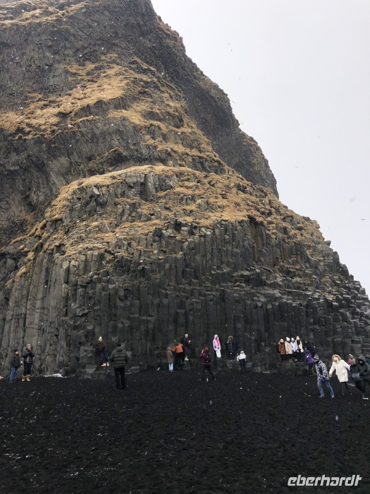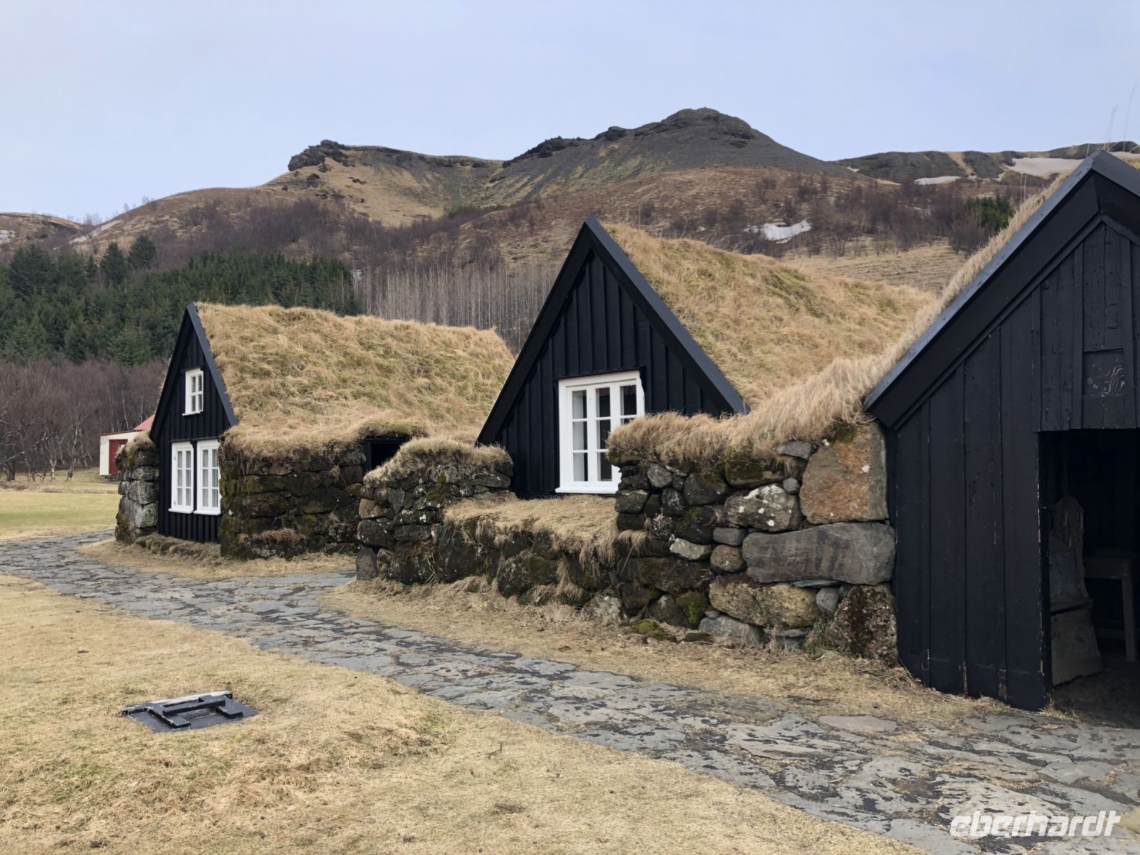Es geht weiter in Richtung Süden. Wir verlassen das wunderschöne Landhotel und starten unsere Route nach Skogar. Dort angekommen erblicken wir schon von Weitem die mächtigen Wassermassen des Skogarfoss in die Tiefe stürzen. Mal wieder erinnert die Landschaft an ein Gemälde. Im Anschluss besuchen wir das nahegelegene Skogar Museum. Seit Mitte des letzten Jahrhunderts wurden hier Exponate des täglichen, zumeist schweren, Lebens auf Island gesammelt – aus Fischerei, Landwirtschaft und Alltag. Wir bekommen zunächst eine kleine Einführung, von einer sympathischen jungen Frau, die glücklicherweise auch wieder deutsch sprechen kann. Nach der Führung gehen wir in das anliegende Freilichtmuseum und können uns einen Eindruck von dem Leben der isländischen Vorfahren machen. Als kleine Stärkung gibt es eine leckere Suppe, entweder Lammsuppe oder Kürbis Suppe, mit selbstgemachtem Brot im Restaurant serviert. Außerplanmäßig macht Anna noch einen kleinen Spaziergang mit uns zum Kvernufoss, dem unbekannten Nachbarn des Skogafoss – wo wir kaum einen anderen Menschen antreffen. Es fängt an zu schneien und die Kulisse sieht aus wie in einem Märchenfilm. Bevor wir in unser nächstes Hotel fahren, machen wir einen Halt am schwarzen Sandstrand, nahe Vik. Die Wellen brechen mit einer wahnsinnigen Wucht an der Küste des schwarzen Strandes, so dass wir nicht zu nah ans Wasser gehen dürfen. Nebenbei schneit es, so dass der schwarze Sand teilweise mit weißen Schneeflocken bedeckt wird und einen großartigen Kontrast bildet. Danach fahren wir noch in das südlichsten Küstenörtchen und machen eine Pause zum Shoppen, Kaffee trinken oder spazieren. Mal wieder nähert sich ein toller Tag dem Ende. Unser nächstes Hotel liegt inmitten einer Eis- und Schneelandschaft. Wir sind diesmal etwas früher im Hotel und haben noch etwas Freizeit, entweder zum Schlafen, zum Baden im Hot Tube oder um den ein oder anderen Drink zur Happy Hour zu verköstigen. Wir essen wieder hervorragend zu Abend und verabschieden uns in die Zimmer. Unsere ambitionierte Polarlicht-Fotografin erspäht mitten in der Nacht ein (diesmal nicht so starkes) Nordlicht und hält es für uns anderen Schläfrigen fotografisch fest.