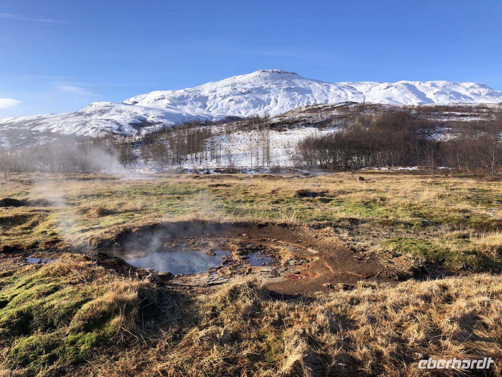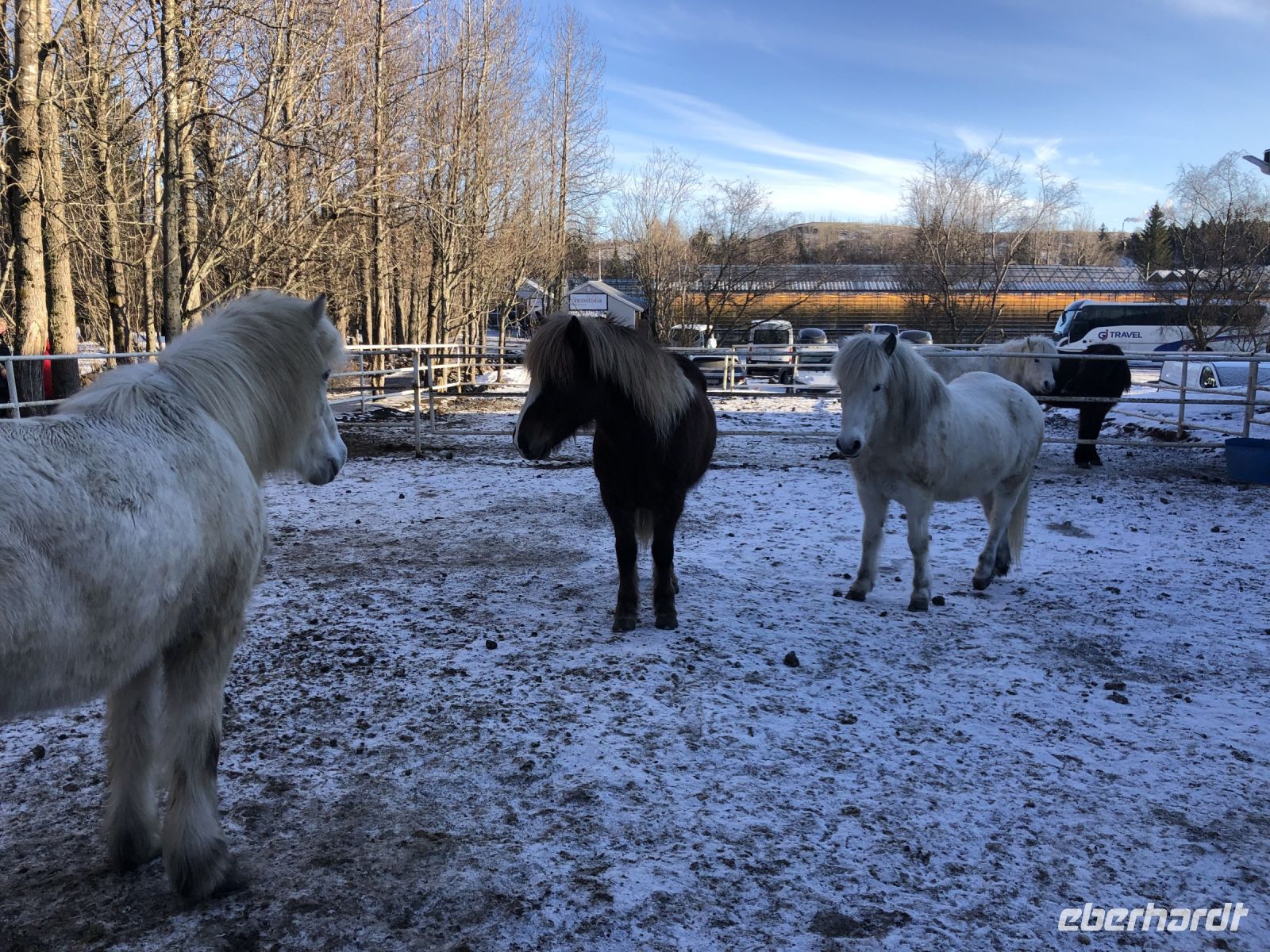 Wir verlassen das Hotel um 08.00 Uhr morgens, denn heute steht ein Highlight nach dem anderen auf dem Programm. Zunächst fahren wir zum goldenen Kreis: Eine 300 Kilometer lange Route zu den drei beliebtesten Naturattraktionen Islands: dem Geothermalgebiet Geysir, dem Wasserfall Gullfoss und dem Þingvellir-Nationalpark. Letzteren fahren zuerst an und begeben uns zu Fuß zwischen die amerikanische und eurasische Kontinentalplatten. Wir haben schnell gemerkt, dass der goldene Kreis schon lange kein Geheimtipp mehr ist, sondern viele internationale Touristen den gleichen Plan verfolgen wie wir - und das, obwohl Nebensaison ist. Wir möchten uns nicht vorstellen, wie es hier im Sommer zugeht. Nach dem wir die Pfade zwischen den Kontinentalplatten bestritten haben, machen wir uns auf den Weg zum Gullfoss - dem goldenen Wasserfall, der über 2 Etappen in die Tiefe stürzt. Das Wetter ist heute traumhaft schön und wir haben sogar das Glück, einen kleinen Regenbogen am Wasserfall zu sehen. Wir fahren weiter zum Strokkur, einem Geysir, der alle 5-7 Minuten eine große Fontäne ausstößt. Nebenan finden wir zudem den Geysir, welcher der Namensgeber für alle Geysire weltweit ist, allerdings ist dieser im Gegensatz zum brodelnden Strokkur nicht mehr aktiv. Obwohl wir heute schon eine Menge gesehen haben, warten noch weitere Highlights auf uns - Die Tagestour auf den Spuren des goldenen Kreises führt uns weiter zum Friedheimar Pferdehof. Hier werden uns von einer jungen, ausgewanderten Schweizerin, die beeindruckenden Islandpferde gezeigt. Wir können den Stall besichtigen, die Pferde streicheln und fotografieren und bekommen zum Schluss eine Demonstration der 5 verschiedenen Gänge, die nur die Islandpferde können. Das klappt selbst mit einem Glas Bier in der Hand erstaunlich gut. Im Anschluss laufen wir den kleinen Weg zur Friedheimar Tomatenfarm runter und erfahren mehr über die Tomatenproduktion in den künstlichen Gewächshäusern und dürfen selbstverständlich auch die knackigen und saftigen Tomaten kosten. Nach den zahlreichen Eindrücken sind auch wir so langsam erschöpft und wir fahren nach dem wahninnig schönen Tag bei Sonnenuntergang in das traumhaft gelegene Landhotel. Die Vorhersage für Nordlichter ist heute nicht allzu schlecht und die Lage mitten im Nirgendwo könnte nicht besser sein. Wir verabreden uns also für 11 Uhr, um einen Schritt in die Dunkelheit zu wagen. Schon vorher erspähen ein paar aufmerksame Gäste die ersten Anzeichen der Aurora Borealis und geben dem Rest der Gruppe vorfreudig Bescheid, dass es bald so weit sein könnte. Wir sind alle aufgeregt und verfolgen das Spektakel am Himmel und siehe da - so langsam färbt sich ein Teil im Himmel grünlich. Wir haben Glück und sehen die Nordlichter am Himmel tanzen. Was für ein Tagesabschluss… - Dieser Tag bleibt garantiert in Erinnerung!
