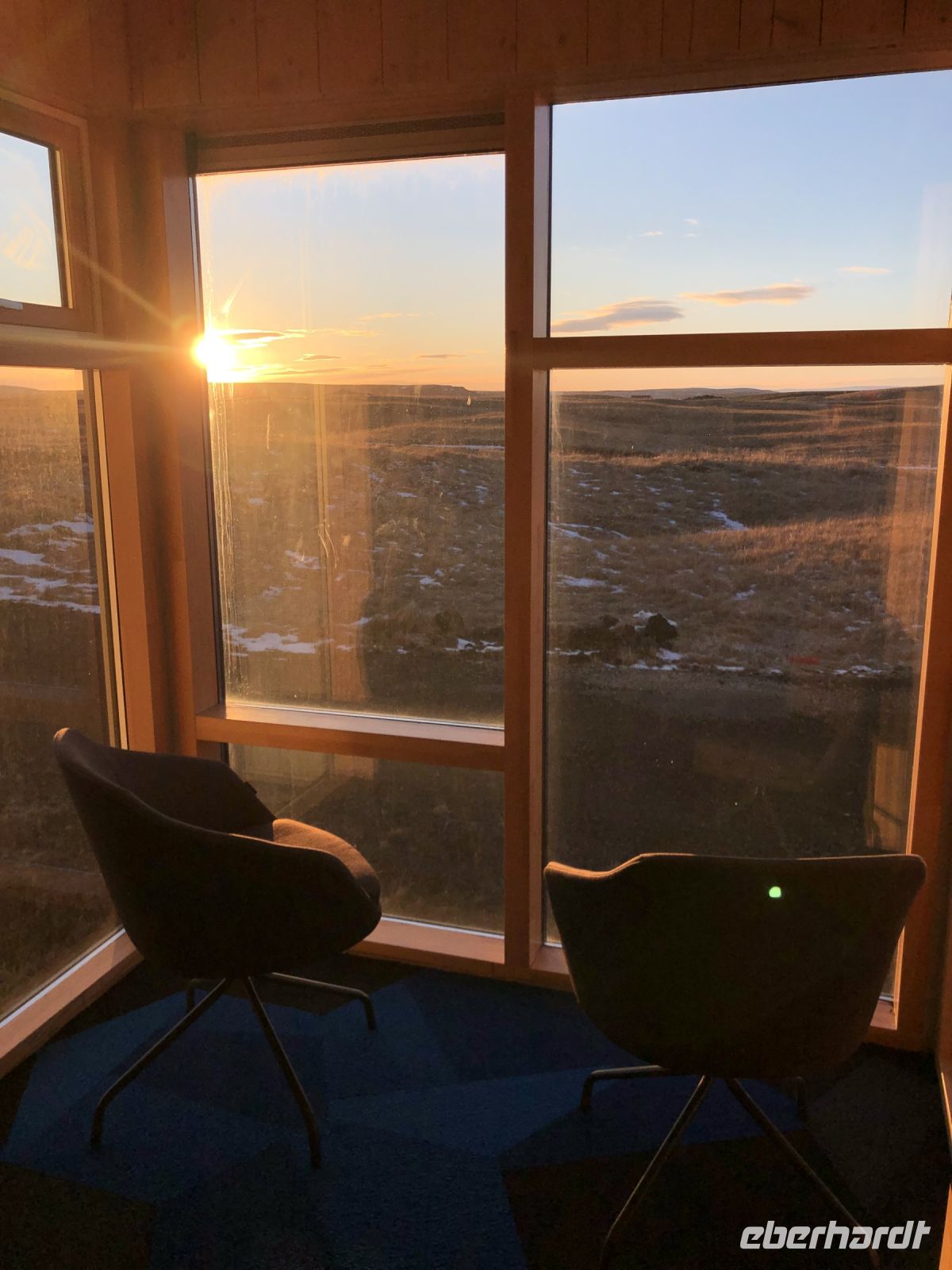 Weiter geht die Fahrt in Richtung Borganes. Die Region um Borganes ist auch bekannt für seine zahlreichen Sagen und wurde unter anderem auch als Drehort für den Serienhit „Game of Thrones“ genutzt. Auf dem Weg machen wir verschiedene Stopps und lassen uns vom Krater Grabrok, der geothermal Region Deildangtuhungver und dem Hraun Wasserfall, der sich aus knapp 80 kleinen Wasserfällen zusammensetzt, beeindrucken. Nach einem ereignisreichen, windigen, verschneiten und regnerischen Tag fahren wir in das Vermaland Hotel, wo wir die nächsten 2 Nächte verbringen. Wir wagen heute Nacht einen Schritt in die Dunkelheit und erhoffen uns, in der dunklen Umgebung ein paar Nordlichter zu entdecken - leider vergeblich :-( Dennoch war der kleine nächtliche Spaziergang schön und erinnerte so manche Gäste an das frühere Ferienlager. Nachdem wir uns bei heißem Kakao und Tee in der Hotellobby aufgewärmt haben, verabschieden wir uns auf unsere Zimmer, denn morgen heißt es wieder früh aufstehen.