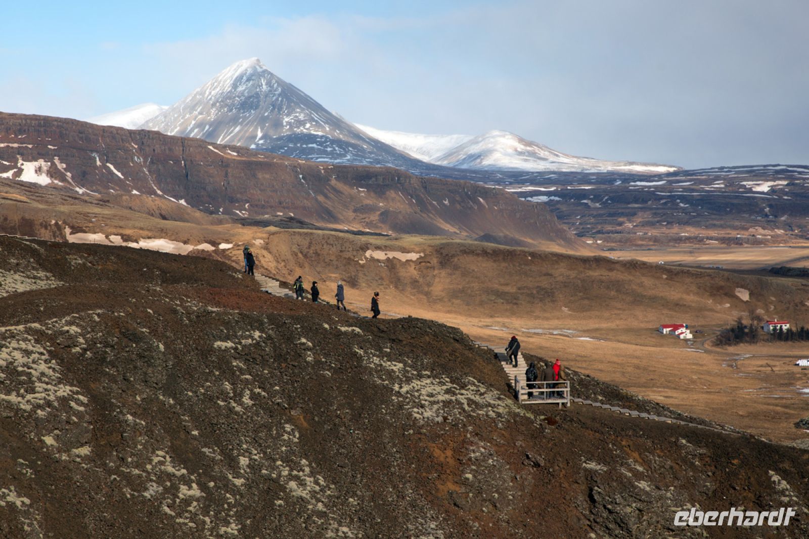 Abfahrt 9 Uhr am Fosshotel und Stadtrundfahrt Reykjavik. 11.30Uhr erreichen wir Borgarnes und besuchen das Settlement Center. Abfahrt um 12.30 Uhr zur Raststätte fürs Mittagessen. 13.40 Uhr Aufbruch Richtung Vulkan Grabrok.