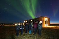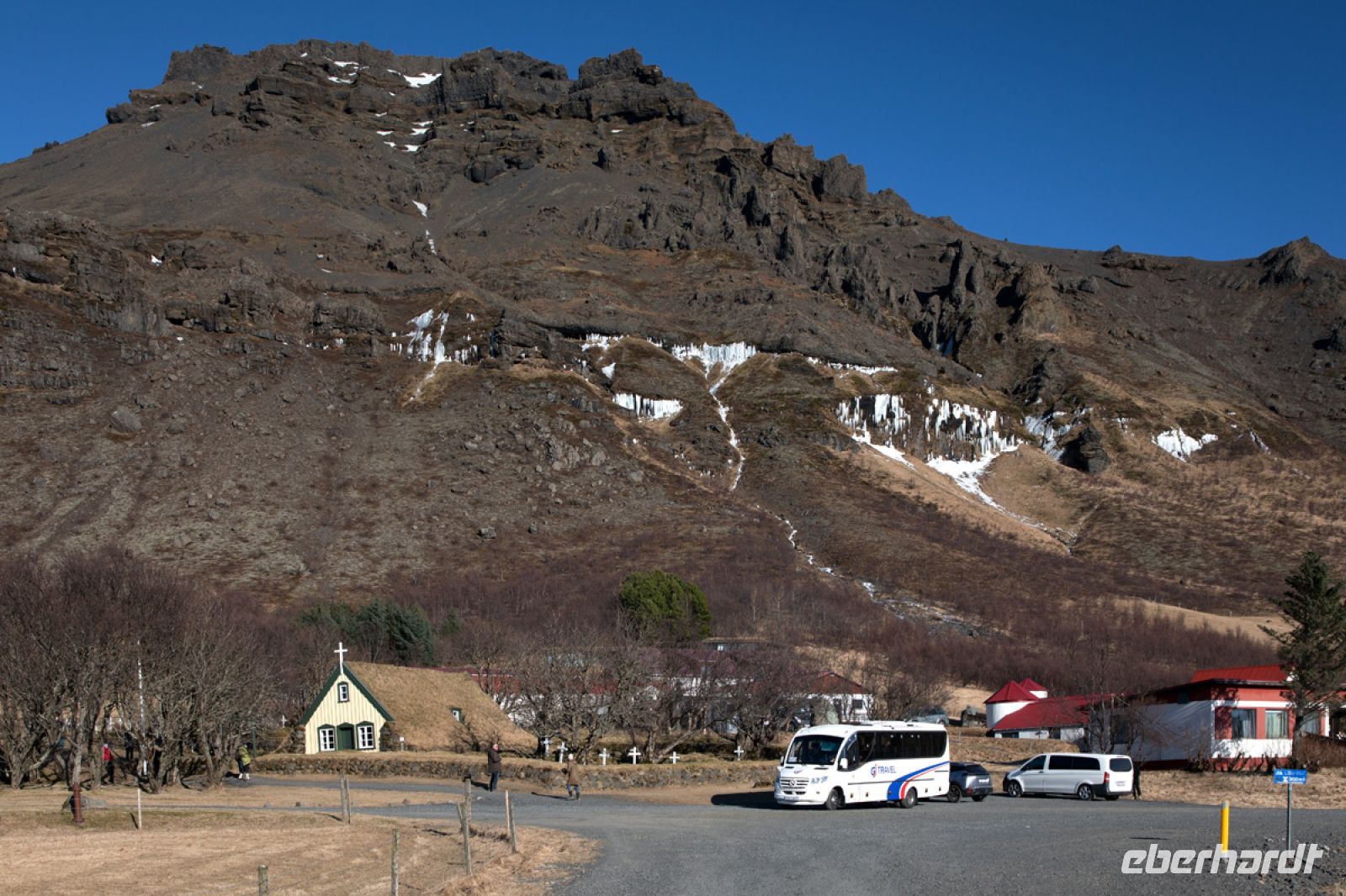 Frühstück 7 Uhr. 8.00 Abfahrt. Kurz nach 10 Stop an der Schwarzen Kirche und Weiterfahrt im Süden der Halbinsel Snæfellsnes. Es herrscht Sturm und es ist sehr kalt. Die RT flüchten schnell wieder in den Bus. Die Walsafari wurde wegen des Sturmes abgesagt. Rast Mittag von 11 bis 11.30 Uhr in Arnastapi. 1 Stunde verbringen wir in der hochinteressanten Lava Höhle Vatnshellir Cave. Alle sind begeistert als Ersatz für die Walsafari. Weiterfahrt 13.15. Stop in Olafsvik. 14.30 weiter zum Berg Kirkjufell. 15.15 Uhr Abfahrt vom schönsten Berg Islands zurück zum Hotel. 17 Uhr Ankunft Hotel, 19 Uhr Abendessen.Eine halbe Stunde nach Mitternacht ziehen Polarlichter auf. Wir haben eine WA Gruppe gebildet, bin mit 4 Leuten bis 2.30 Uhr draußen. KP2 bereits beachtliche Fotos.