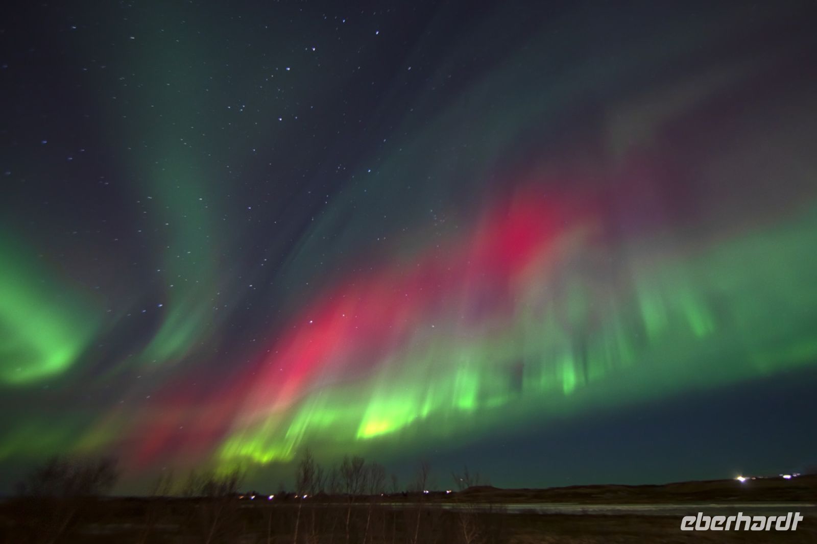 Pünktlich Abfahrt 8.00 Uhr am Hotel. Wir unternehmen eine kleine Wanderung von 1km entlang der tektonischen Spalte zwischen Amerika und Europa. Es ist saukalt mit heftigem Wind und Sonne pur. 11 Uhr bis 11.45 Uhr Brot backen in der heißer Erde am Ufer mit Verkostung in Laugarvatn Fontana. Geysir Strokkur Fotografieren Mittagspause bis 13.30 Uhr. Farm mit Island Pferden und Tomaten Gewächshäusern am Nachmittag. Ankunft im Hotel gegen 17.00 Uhr. Abendessen 18.30 und um 21 Uhr brennt der Himmel! KP 5 ein absolutes Highlight für die Gruppe. Mit kurzen Aufwärmphasen geht es immer wieder hinaus bis nach Mitternacht.