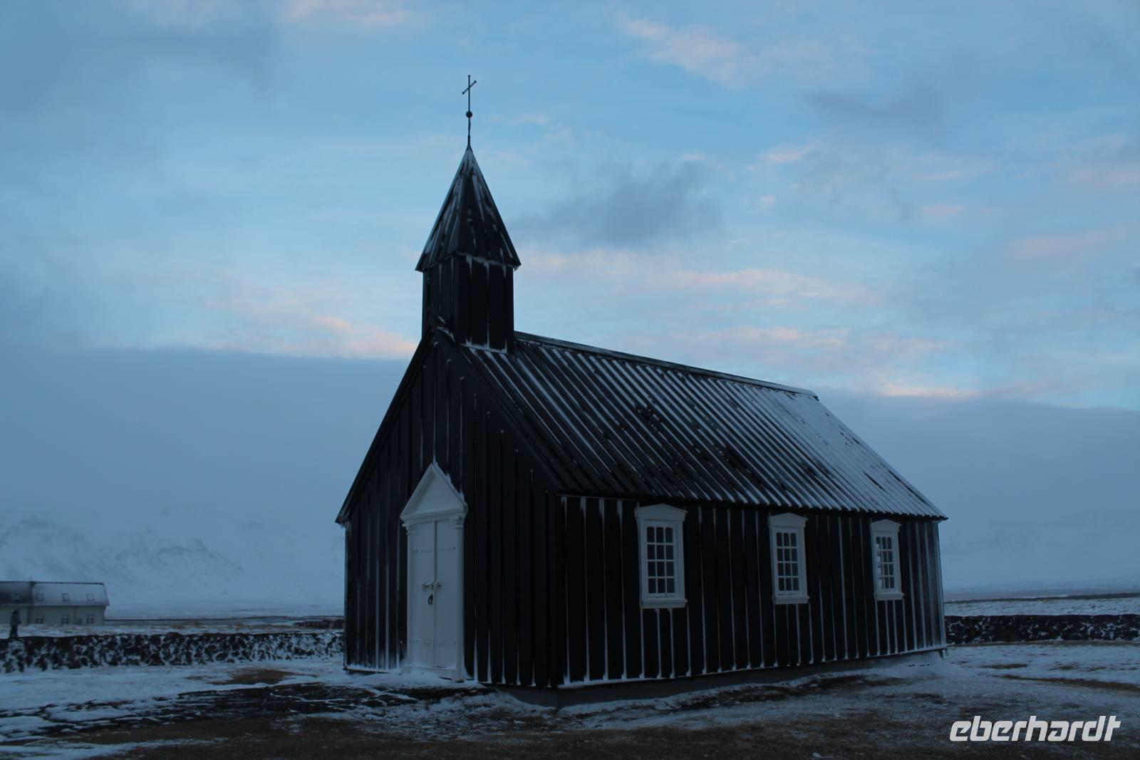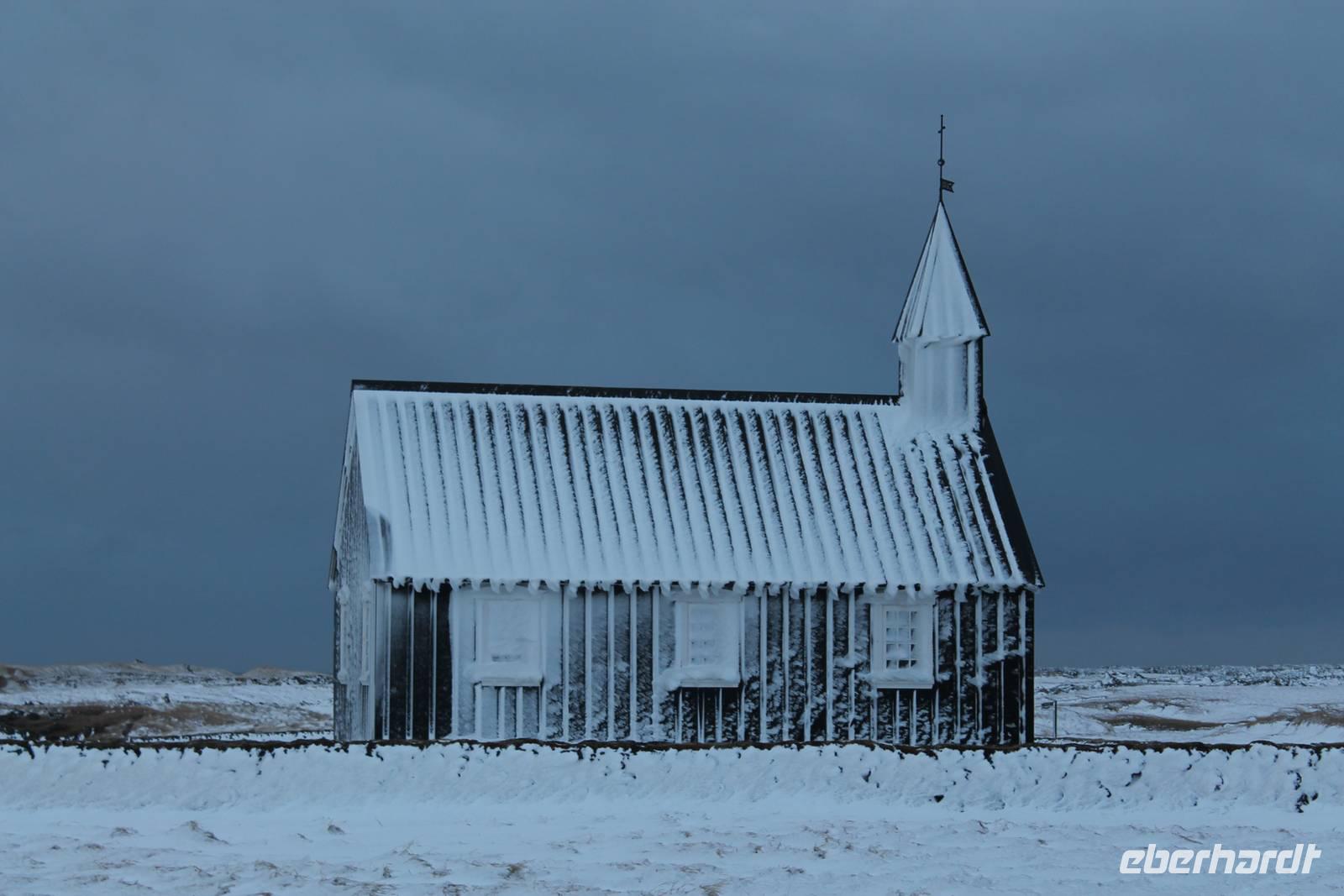 Inzwischen haben wir uns daran gewöhnt im Dunkeln zu frühstücken und so treffen wir uns heute um 09.00 Uhr zur Abfahrt. Die Wettervorhersage für die Snaefellsnes-Halbinsel, unser heutiges Ziel, sieht bedeutend besser aus als die letzten Tage. Trotzdem ist noch mit starken Winden zu rechnen und die Temperaturen fallen heute unter 0 Grad. Der namensgebende Vulkan soll ja laut Jules Vernes "Reise zum Mittelpunkt der Erde" der Einstieg zum Erdinneren sein. Die ersten beiden Stunden bis wir die Halbinsel erreichen, fahren wir im Dunkeln. Mit der Dämmerung erkennen wir die ersten Naturschönheiten dieses Gebietes, welches auch „Island en miniature" genannt wird. Am ersten Fotostopp haben wir dann auch den Erstkontakt mit dem heutigen Wetter: minus 7 Grad, die sich bei eisigem Wind allerdings bedeutend kälter anfühlen. Unser erster Stopp ist in Olafsvik, einem beschaulichen, erfolgreichen Fischerort an der Nordküste der Snaefellnes-Halbinsel. Wir trotzen dem inzwischen 80 km/h schnellen Winden und schauen uns im Hafen um. Die Weiterfahrt gestaltet sich sehr abenteuerlich, denn der Schneesturm des Vortages hat seine Spuren auf den Straßen hinterlassen. Unser erfahrener Chauffeur Ragnar muss über eine vollkommen zugeeiste Hauptstraße, die von starken Seitenwinden und damit verbundenen Schneewehen weiter zugeschneit wird, navigieren - eine wirkliche Herausforderung. Ragnar meistert alles hervorragend und gibt uns sogar bei einem nicht ganz einfachen Fotostopp mitten auf der Eispiste die Gelegenheit für außergewöhnliche Bilder. Leider muss der Besuch des Strandes von Djúpalónssandur wegen Unbefahrbarkeit der Straße entfallen und bei tief hängenden Wolken und weiteren vereinzelten Schneestürmen bleibt uns auch der Gipfel des Snaefellsnes-Gletschers verwehrt. Aber Sicherheit geht vor und die schönen Seiten des knackigen Winterwetters lernen wir dann bei einem wunderschönen Küstenspaziergang an der Südküste von Arnarstapi nach Hellar kennen. Bizarre Felsformationen, das tosende Meer und die frische Luft werden zu einem herrlichen Erlebnis. Ziemlich durchgefroren wieder am Bus angekommen, überrascht uns Eberhardt mit einem isländischen Schnaps, dem auch als „Schwarzen Tod" bekannten Kartoffelschnaps „Brennivin", und einer Kostprobe von Trockenfisch. Niemand, der sich über den Geschmack beschwert... Anschließend kehren wir im kleinen Ort Budir ins Hotel ein und genießen bei Kaffee und Tee einen extra für uns gebackenen - wenn auch nicht ganz preiswerten - Schokoladenkuchen. In Budir gibt es auch eine kleine, aus dem Jahr 1847 stammende, Landkirche mit angrenzendem Friedhof. In der vereisten Umgebung ein schönes Fotomotiv. Inzwischen setzt bereits wieder die Dämmerung ein und wir starten unsere Fahrt in Richtung Reykjavik. In Borgarnes stoppen wir nochmals und haben die Gelegenheit für das morgige Silvester noch Feuerwerk einzukaufen. In Island darf jeder Erwachsene Feuerwerk bis zum 6. Januar zünden und die Erlöse des Verkaufs kommen den isländischen Rettungsmannschaften zu Gute. Die Fahrt führt uns dann noch eine Stunde nach Reykjavik, wo wir in unser Icelandair-Hotel Natura einchecken, unser Hotel für die kommenden 2 Nächte. Bei Lachs, Lamm und Skyr mit Beeren lassen wir unseren ersten Abend in Reykjavik im Hotelrestaurant bzw. der Bar ausklingen.