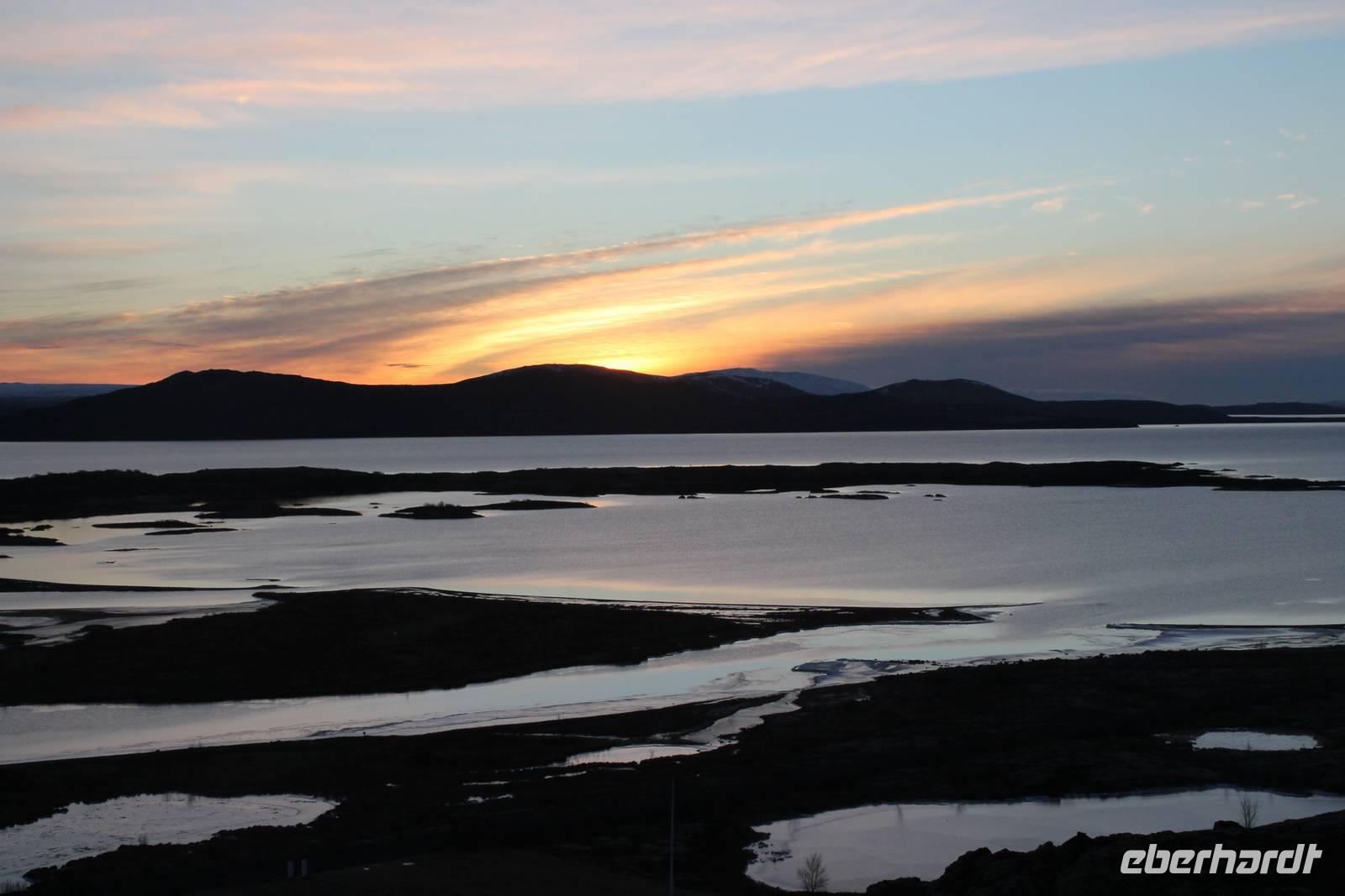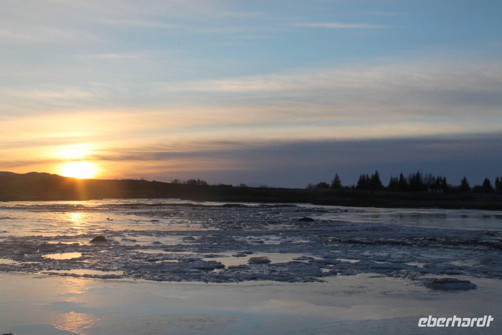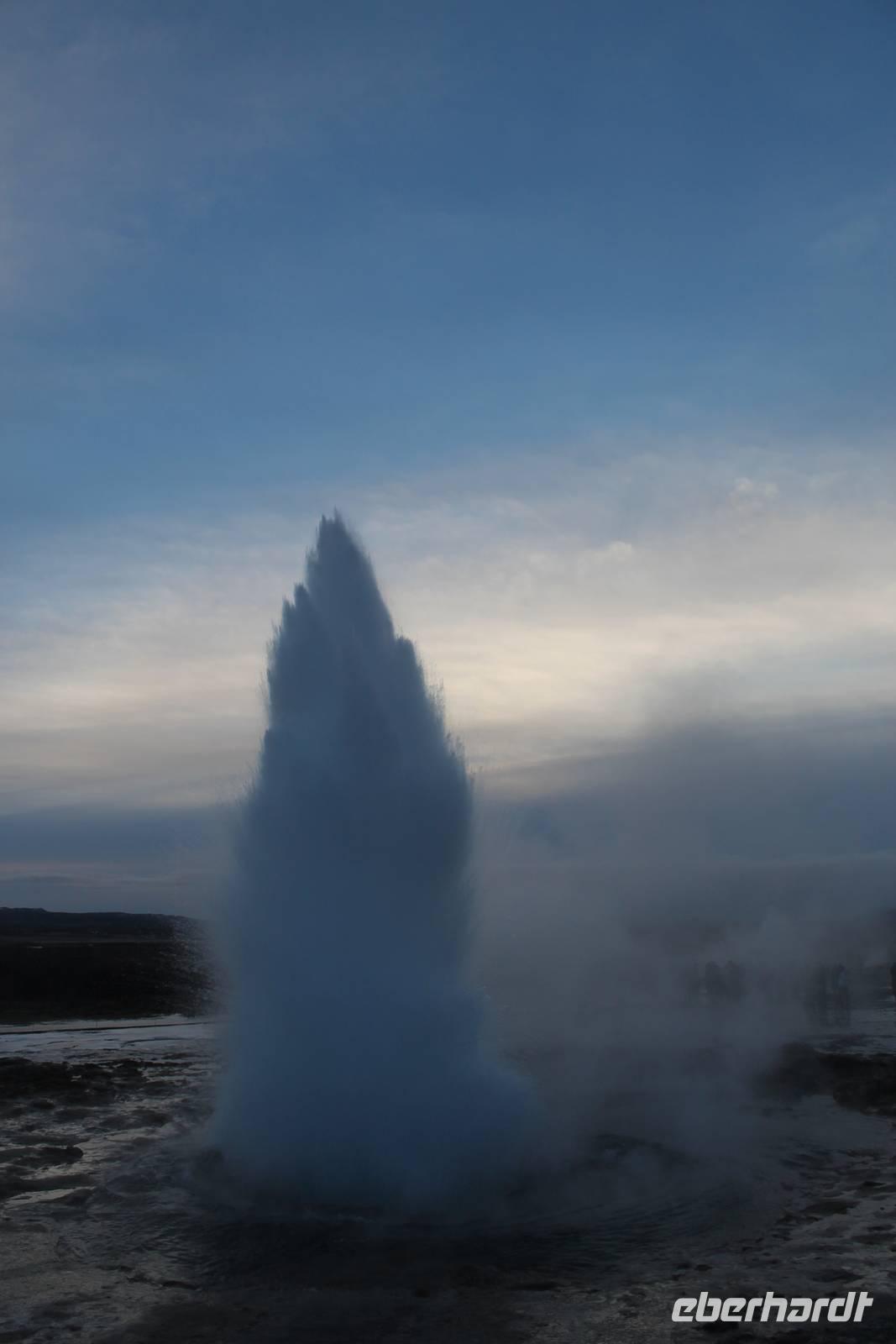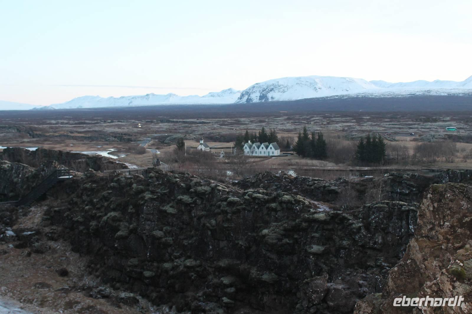 Als wir heute unser Hotel um 10 Uhr in Richtung Goldener Kreis verlassen, hat die Dämmerung schon eingesetzt und durch den fehlenden Wind und den nur leicht bewölkten Himmel setzen nahezu Frühlingsgefühle ein . Auf der Fahrt zu den wohl bekanntesten Naturschauspielen Islands erleben wir einen traumhaften Sonnenaufgang, der den schneebedeckten Hausberg Reykjaviks in ein mystisches Licht taucht. Bei unserer Ankunft im geschichtsträchtigen Thingvellir Nationalpark klettern dann die ersten Sonnenstrahlen über die umliegenden Bergketten und tauchen den größten See Islands, den Thingvallavatn, ein goldenes Licht. Es ist richtig knackig kalt und wir spazieren mit Snorri vom Informationszentrum aus durch die Allmänner-Schlucht, am Gesetzesberg und am Ertränkungspfuhl vorbei durch das Spaltensystem des Nationalparks. Hier im Thingvellir befindet sich eine geotektonische Spalte, wo eurasische und amerikanische Kontinentalplatte auseinander driften. Außer der geologischen Bedeutung ist dieses Tal natürlich auch geschichtlich interessant, da hier im Jahr 930 das erste Thing der freien Männer Islands stattfand. Diese Tradition bestand übrigens bis ins 19. Jahrhundert und noch heute werden große Feierlichkeiten wie die Feier zur 1000-jährigen Zugehörigkeit zum Christentum im Thingvellir begangen. Anschließend führte uns der Weg weiter ins Geothermalgebiet Haukadalur. Hier konnte man nicht nur DEN Geysir, den Namensgeber für alle Springquellen in der Welt, bestaunen, sondern vor allem sein Bruder Strokkur zog uns in den Bann. In einer Regelmäßigkeit stößt er eine Wasserfontäne in den Himmel, so dass die Fotografen die Zeit für DEN perfekten Schuss verwenden können. Heute legten wir hier auch gleich unsere Mittagspause ein und das ein oder andere Souvenir konnte erstanden werden. Weiter ging es zum Gullfoss, den Goldenen Wasserfall, der sich in einem fantastischen Winterkleid . teils sogar zugefroren - präsentierte. Nachdem dieser wunderbare Wasserfall aus allen Möglichkeiten bestaunt wurde, starteten wir in Richtung unseres Hotels an der Südküste. Ein Zwischenstopp musste aber noch sein. Im ehemaligen Bischofssitz Skálholt bestaunten wir nicht nur das kleine Museum im Keller der Kirche, sondern unser Snorri überraschte uns einmal mehr mit seiner Vielseitigkeit. Um die geniale Akustik der Kirche zu demonstrieren, schnappte sich Snorri eine Trompete und spielte uns eine alte isländische Volksweise vor. Diese Vorstellung forderte Applaus und natürlich eine Zugabe. Daumen hoch, lieber Snorri, für diese Überraschung. Dann noch eine Stunde Fahrt und wir erreichten das Hotel Rangá in der Nähe von Hella, mein Lieblingshotel in Island. Einsame Lage, schicke Zimmer und fantastisches Essen für die nächsten zwei Nächte stehen auf dem Programm. Heute war der kulinarische Höhepunkt der Reise angesagt, denn es gab ein 7-Gänge-Menü, das alle überzeugen konnte. Nach dem Abendessen testeten einige die hot tubs des Hotels und alle warteten gespannt, ob bei ziemlich klarem Himmel Nordlichter zu sehen sind. Man konnte sich sogar auf einer Weckliste an der Rezeption einschreiben lassen, um nichts zu verpassen.