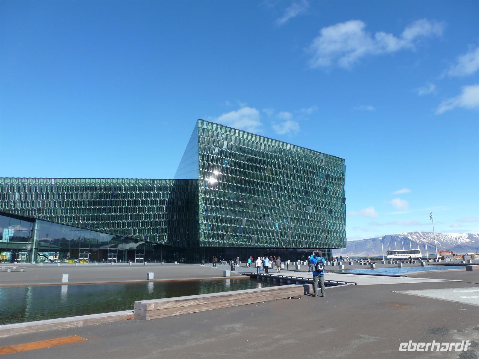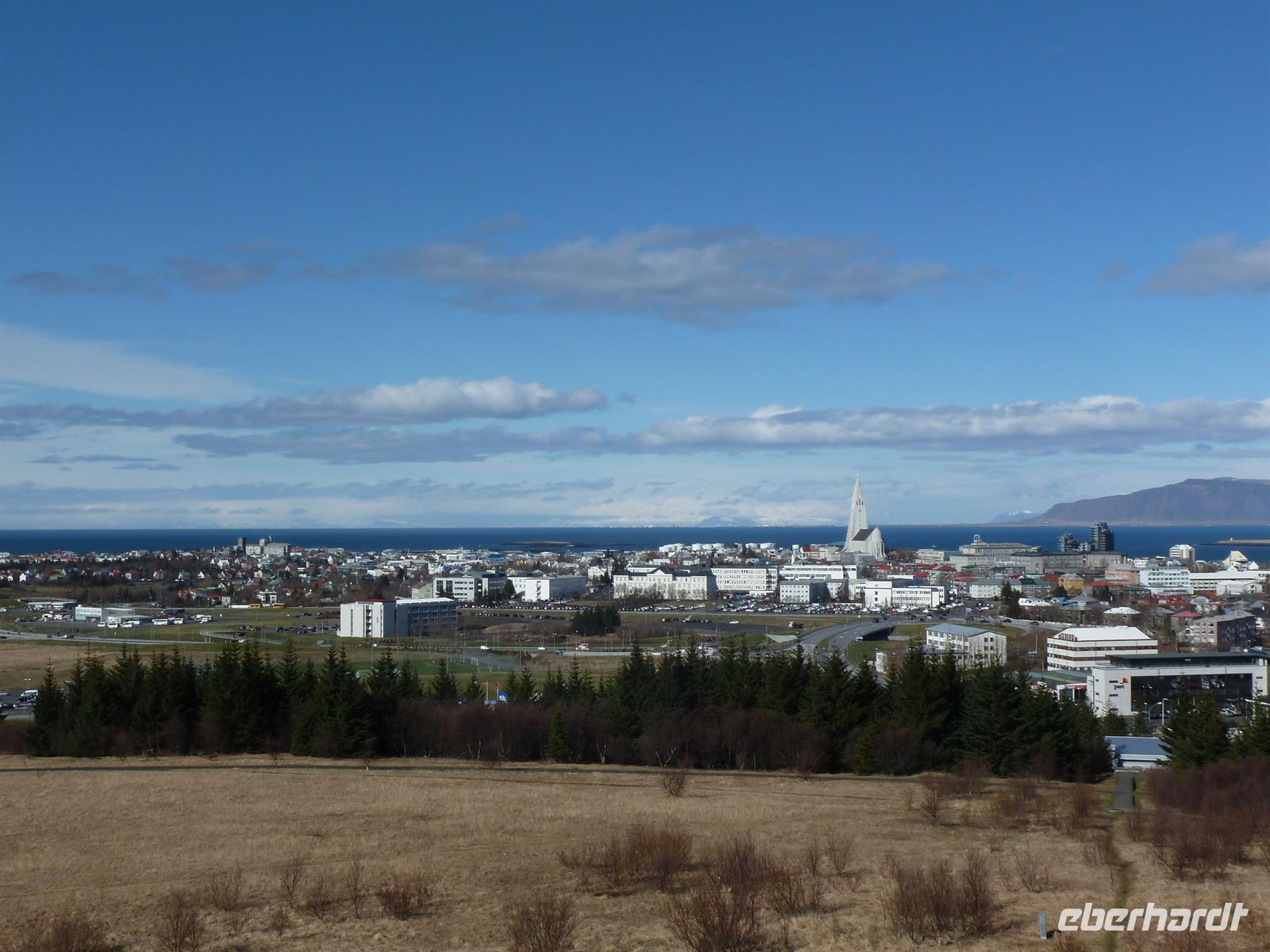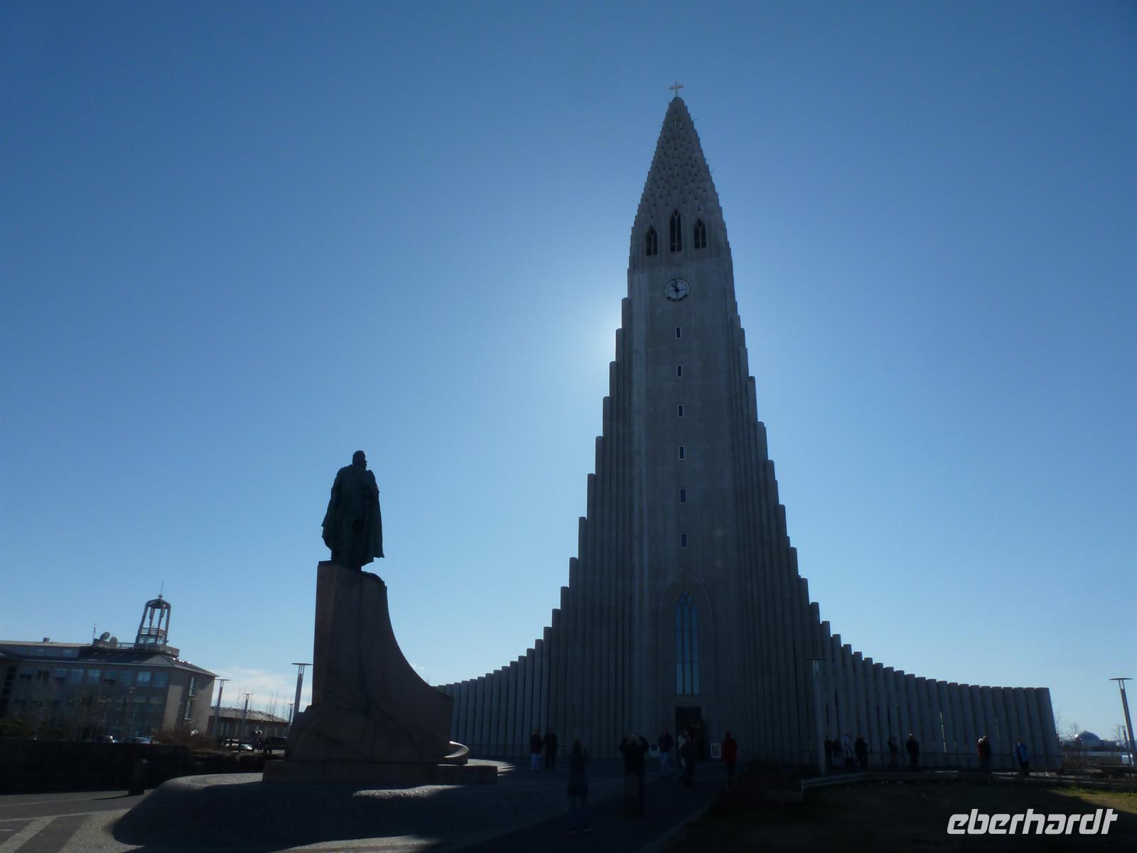 Am Montagabend trafen sich 29 Reisegäste und die Eberhardt-Reisebegleitung Petra Scherbaum im Flughafen Berlin-Schönefeld zur Reise „Island - Insel aus Feuer und Eis“. Am frühen Dienstagmorgen kamen wir auf dem Flughafen in Keflavik an und wurden herzlich von der isländischen Reiseleiterin Rósa Helgadóttir begrüßt. Per Bus wurden wir zu dem Hotel „Natura“ in Reykjavík gebracht. Nach einer kurzen Nacht wollten wir nun die kleine Hauptstadt Islands erkunden. Rósa überraschte uns mit Ostereiern aus Schokolade. Sie zeigte uns gleich die Hallgrimskirkja, die imposante Kirche.