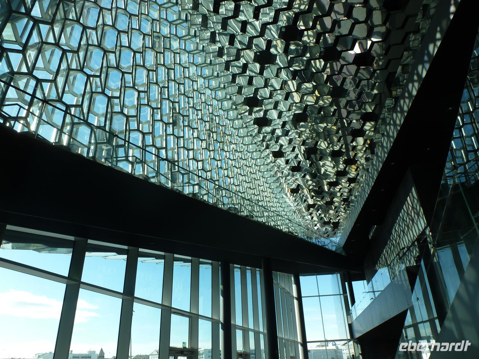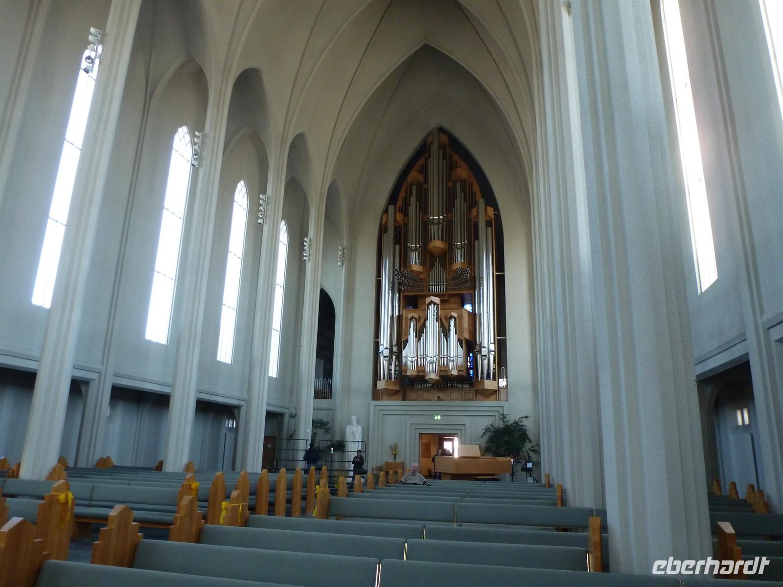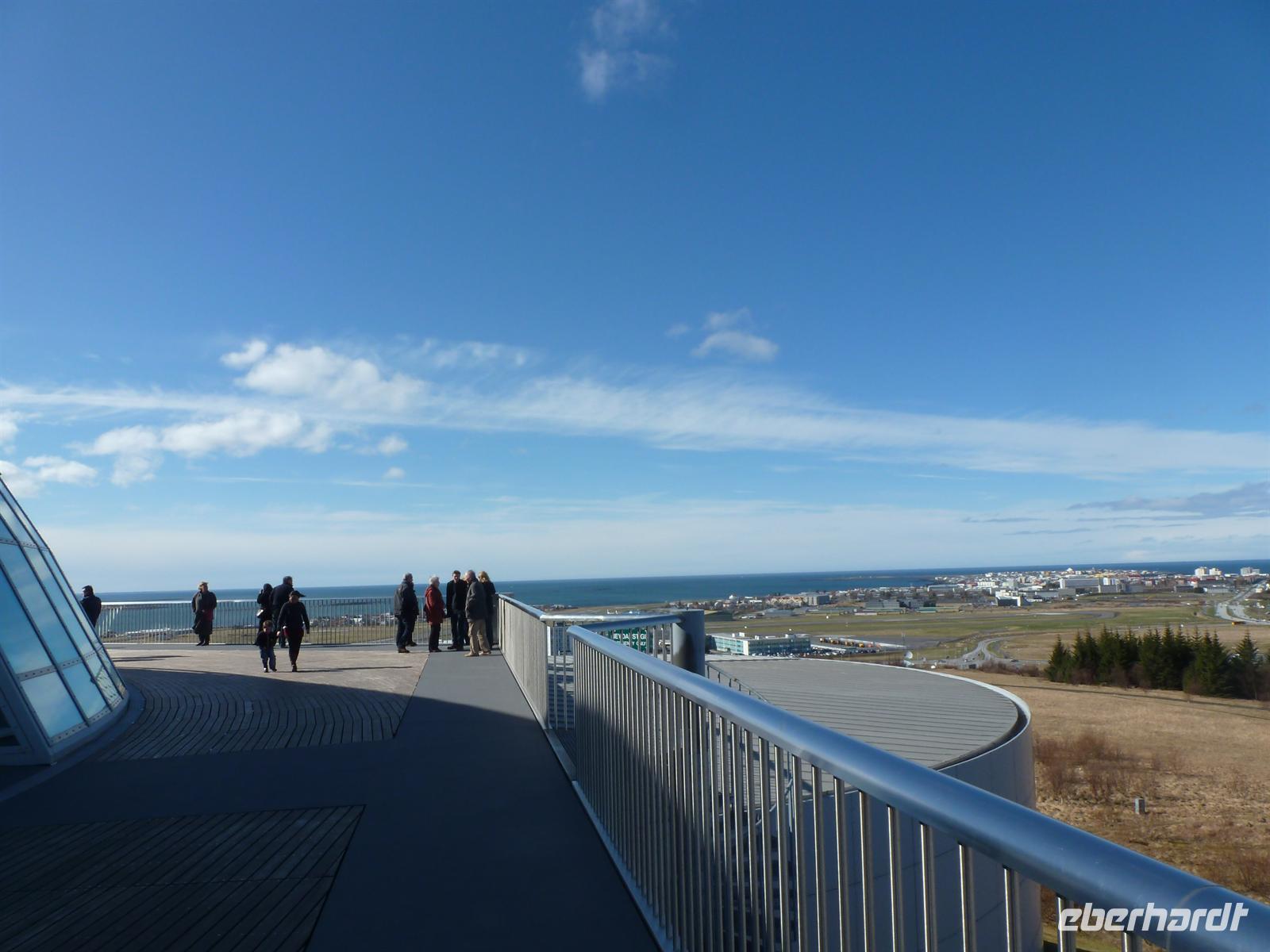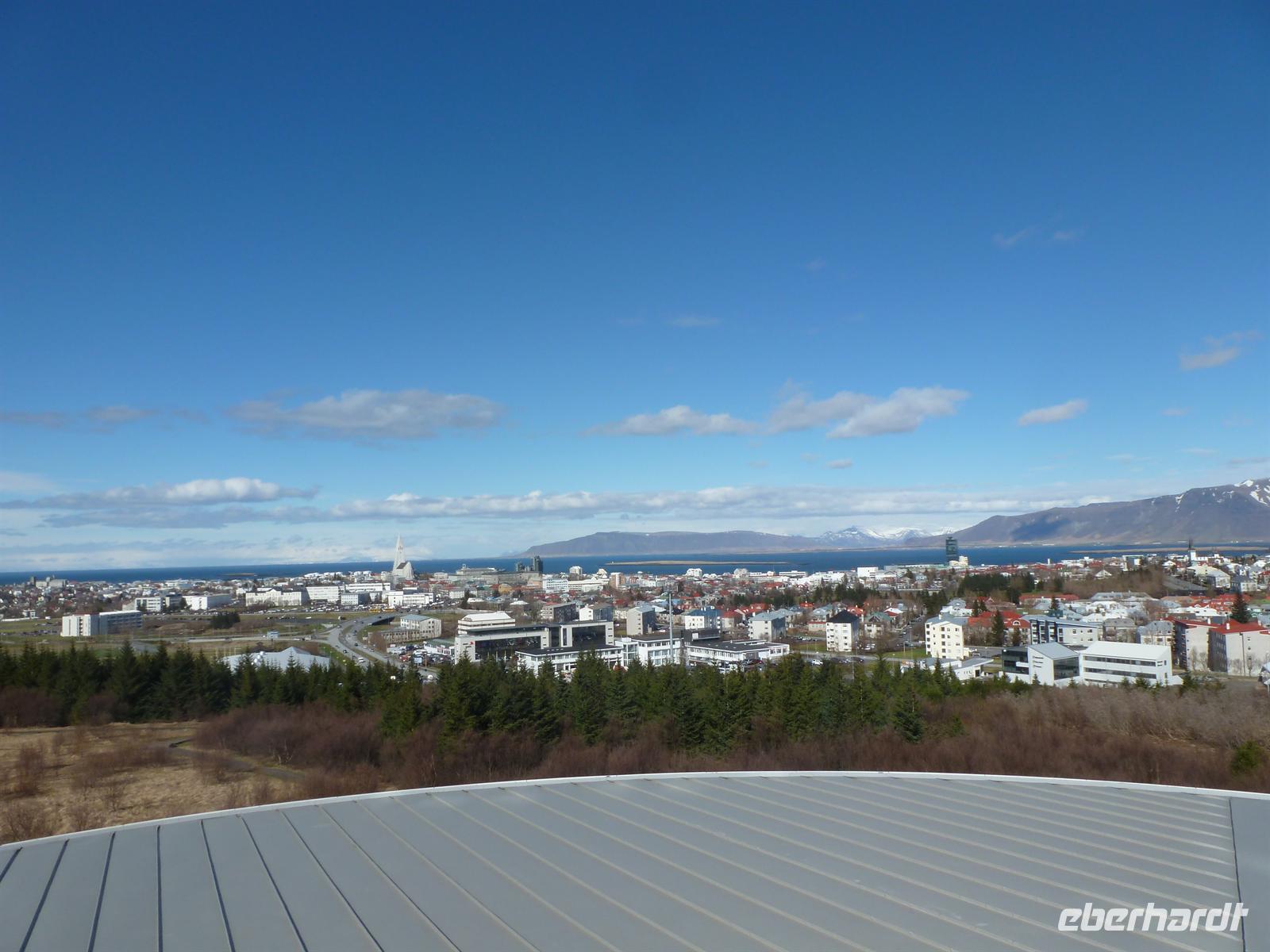 Am Montagabend trafen sich 29 Reisegäste und die Eberhardt-Reisebegleitung Petra Scherbaum im Flughafen Berlin-Schönefeld zur Reise „Island - Insel aus Feuer und Eis“. Am frühen Dienstagmorgen kamen wir auf dem Flughafen in Keflavik an und wurden herzlich von der isländischen Reiseleiterin Rósa Helgadóttir begrüßt. Per Bus wurden wir zu dem Hotel „Natura“ in Reykjavík gebracht. Nach einer kurzen Nacht wollten wir nun die kleine Hauptstadt Islands erkunden. Rósa überraschte uns mit Ostereiern aus Schokolade. Sie zeigte uns gleich die Hallgrimskirkja, die imposante Kirche.