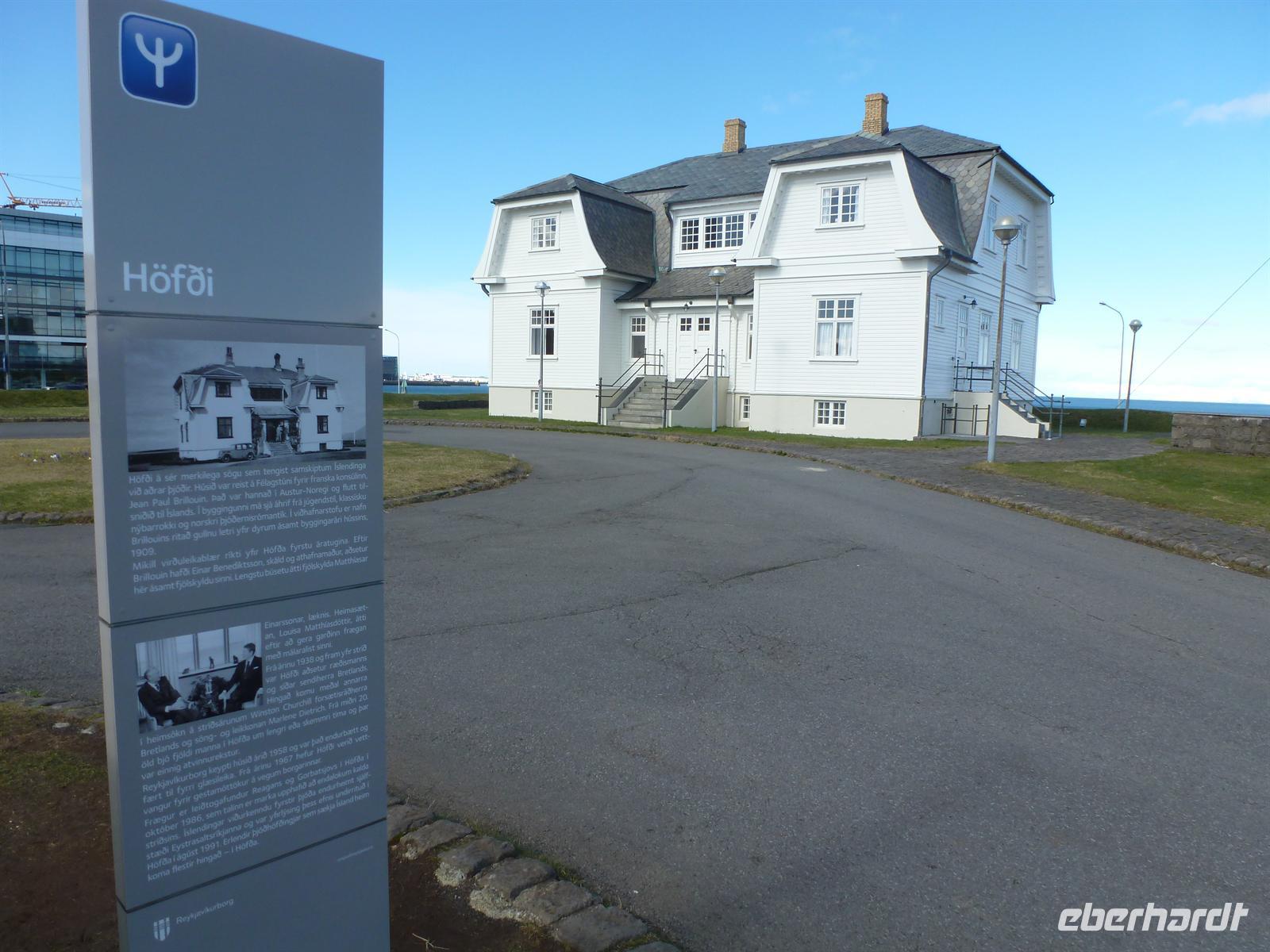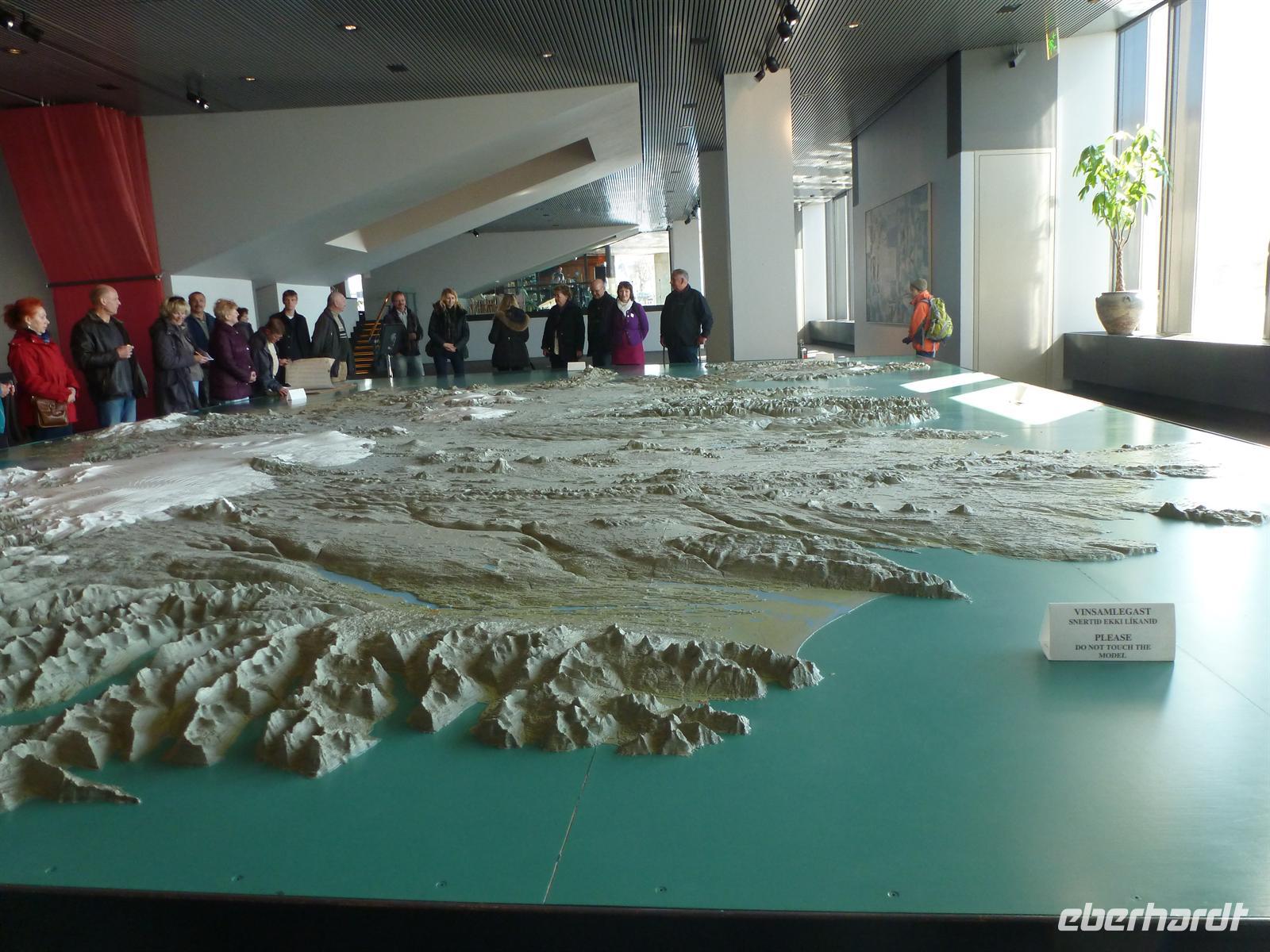 Im Nationalmuseum erfuhren wir viele Dinge über das frühere Leben der Isländer. Wir gingen ins Rathaus zum großen Relief von Island und spazierten bei Sonnenschein in der Altstadt und am See Tjörnin mit einem kurzen „Kaffeestopp“ in einer Bank bis zum neuen Konzerthaus Harpa, auch dies sehr modern und architektonisch außergewöhnlich. An den neueren geschichtlichen Höhepunkt Islands, dem Gipfeltreffen 1986 zwischen Reagan und Gorbatschow, wurden wir erinnert als wir Höfdi, das Gästehaus der Regierung, von außen besichtigen. Mit dem Bus ging es weiter zum Perlan, der „Perle“, den optisch nicht ganz versteckten Heißwasserspeichern mit Restaurants und Museum. Sie liegt auf dem Hügel Öskjuhlíd, gegenüber unserem Hotel, und bot uns einen grandiosen Blick über Reykjavík. Später konnten wir uns in der Blauen Lagune mit dem milchig hellblauen, warmen Wasser, entspannen und „verjüngen“: Rosa empfahl uns eine Gesichtsmaske aus dem weißen Schlamm, weil sie die Haut um 10 Jahre jünger aussehen lässt. Zurück im Hotel fielen wir nach einem servierten Abendessen gleich ins Bett, denn wir wollten ein wenig Schlaf nachholen.