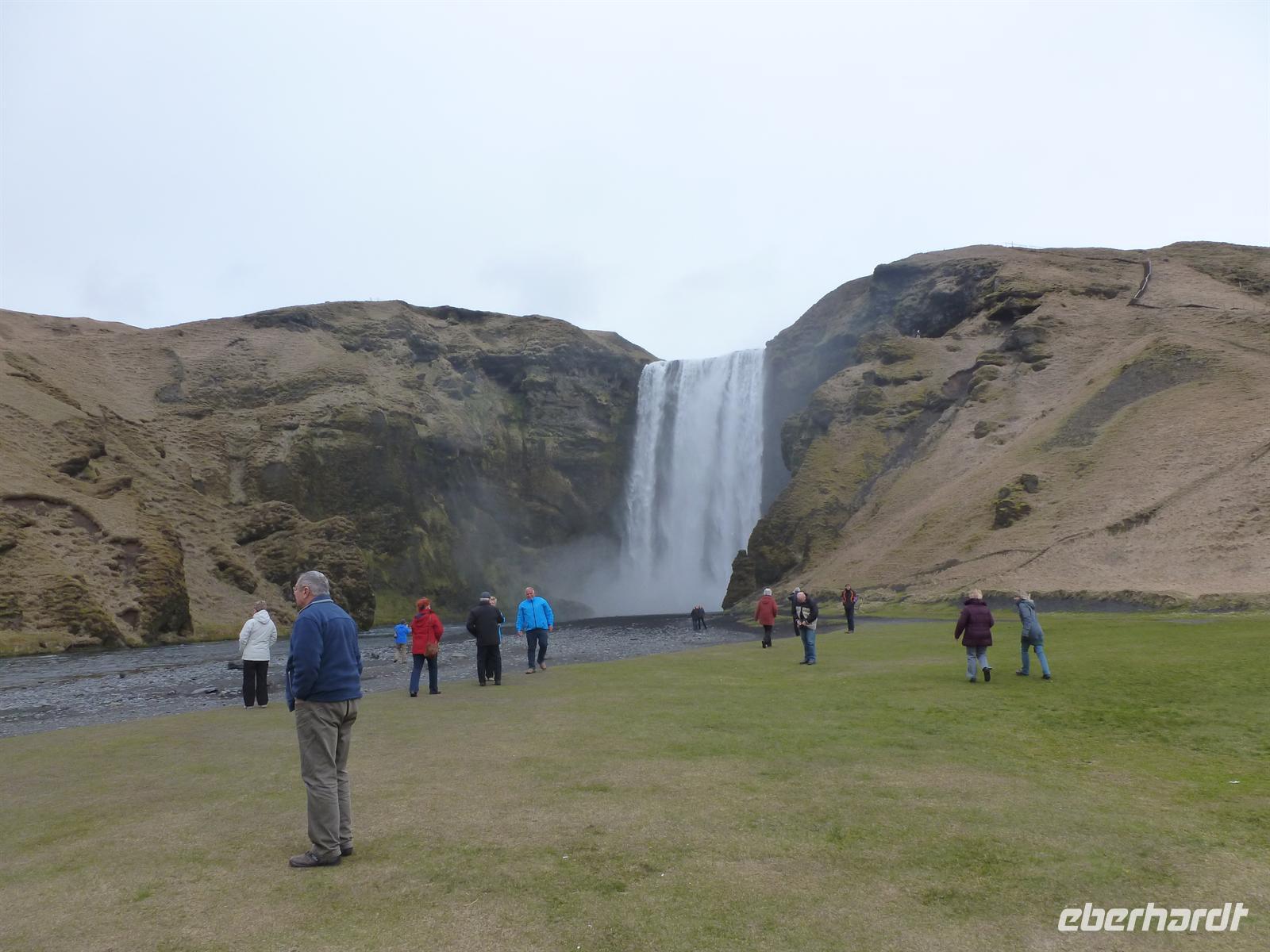 Am Mittwoch ging unser Ausflug die Südküste entlang. In der Nacht hat es geschneit und so fuhren wir erst an weißen Lavafeldern vorbei. Später wurde es wieder wärmer, aber windig. Im Besucherzentrum am Eyjafjallajökull sahen wir einen sehr anschaulichen Film von dem Asche-Vulkanausbruch 2010 und dessen weitreichenden Folgen. Anschließend im Heimat-und Freilichtmuseum Skógar gab es viel zu entdecken und wir erfuhren wieder viel Wissens- und Staunenswertes. Dem Museumsgründer Thodur Tomasson sei für seine musikalischen Einlagen herzlich gedankt! Nach einem Stopp am Wasserfall Skogafoss ging es weiter nach Vík, wo wir Mittagsrast machten. Die versteinerten Trolle Reynisdrangar grüßten von Weitem und ein reichhaltiges Angebot an Wollerzeugnissen musste auch begutachtet werden.