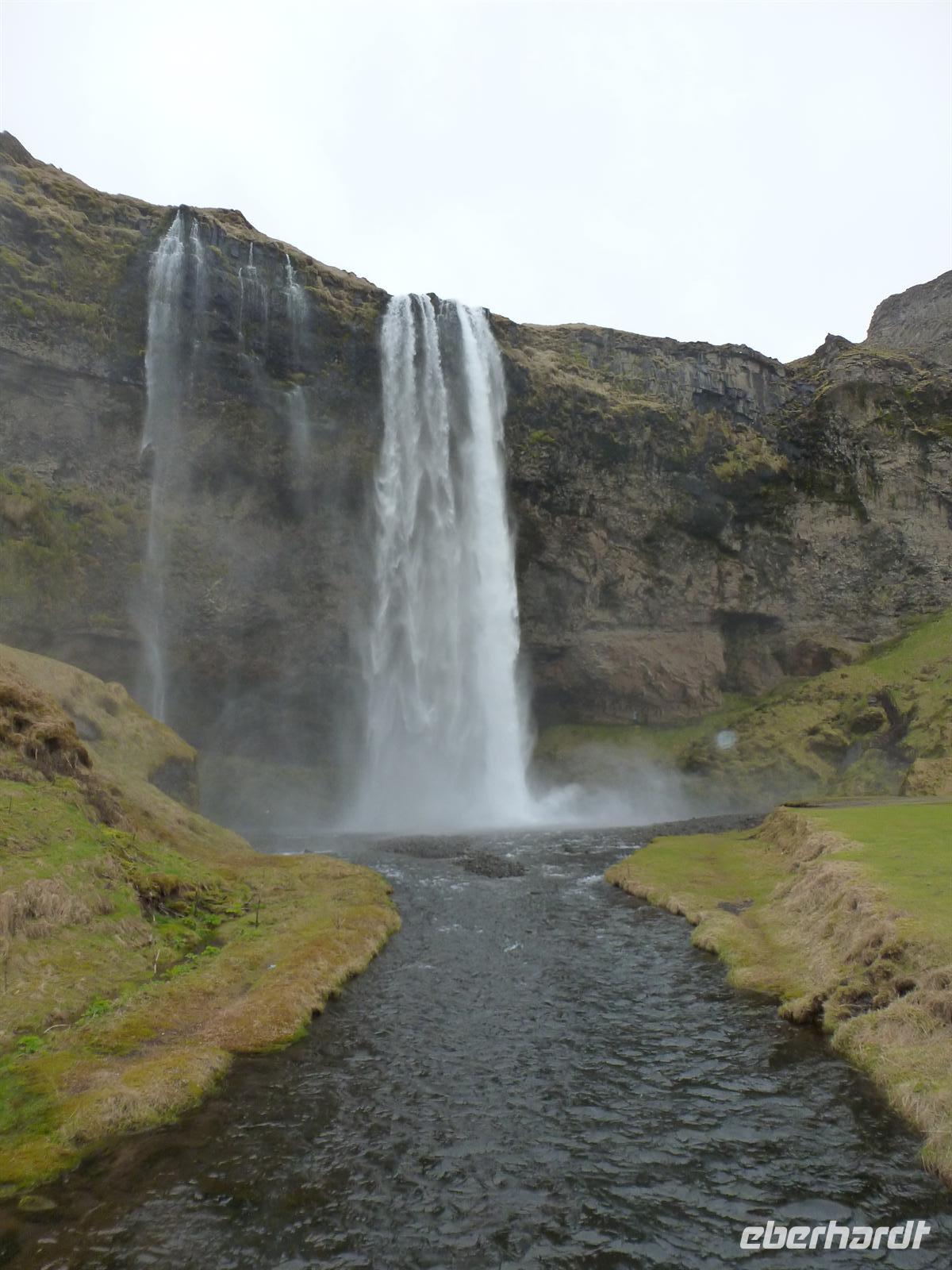 Später gingen wir zum Strand mit schwarzen Sand und riesigen Basaltsäulen, die sofort an die Hallgrimskirkja erinnerten. Wir blickten auf Kap Dyrholaey, die Türlochinsel, eine tolle Kulisse. Beim Gletscherspaziergang am Sólheimajökull bekamen wir auch einen Einblick in die Eiswelt, auch wenn sie von Asche bedeckt ist! Den Wasserfall Seljalandsfoss bestaunten wir und die Hekla, der vakante gefährliche Vulkan, zeigte sich uns noch in sanftem Sonnenlicht. Bei leichtem Schneeregen kamen wir wieder in Reykjavík an.