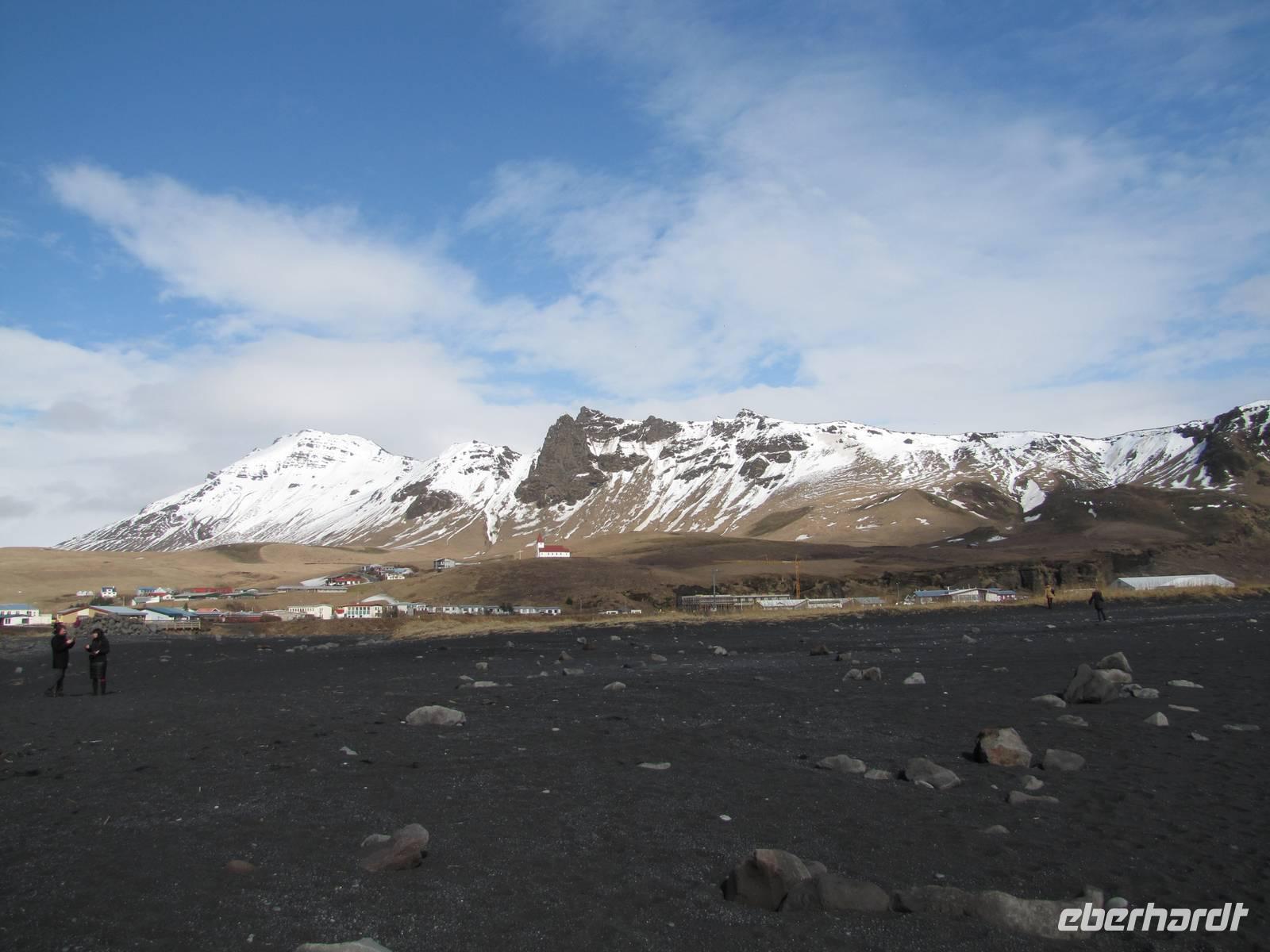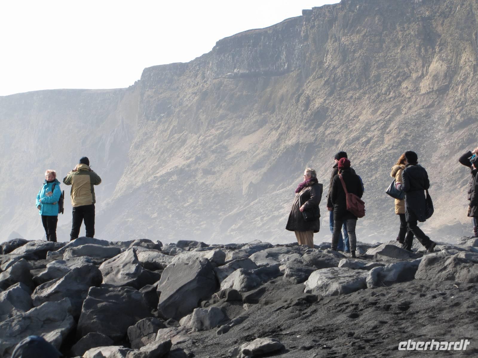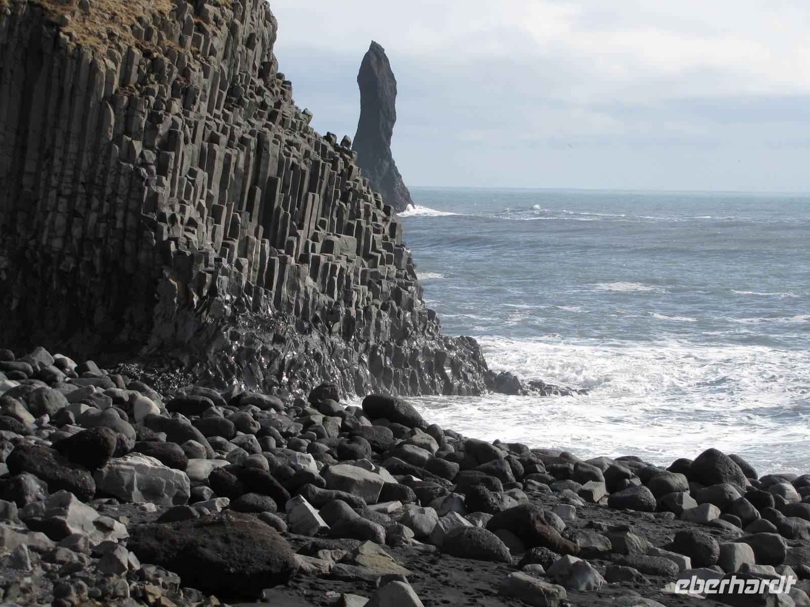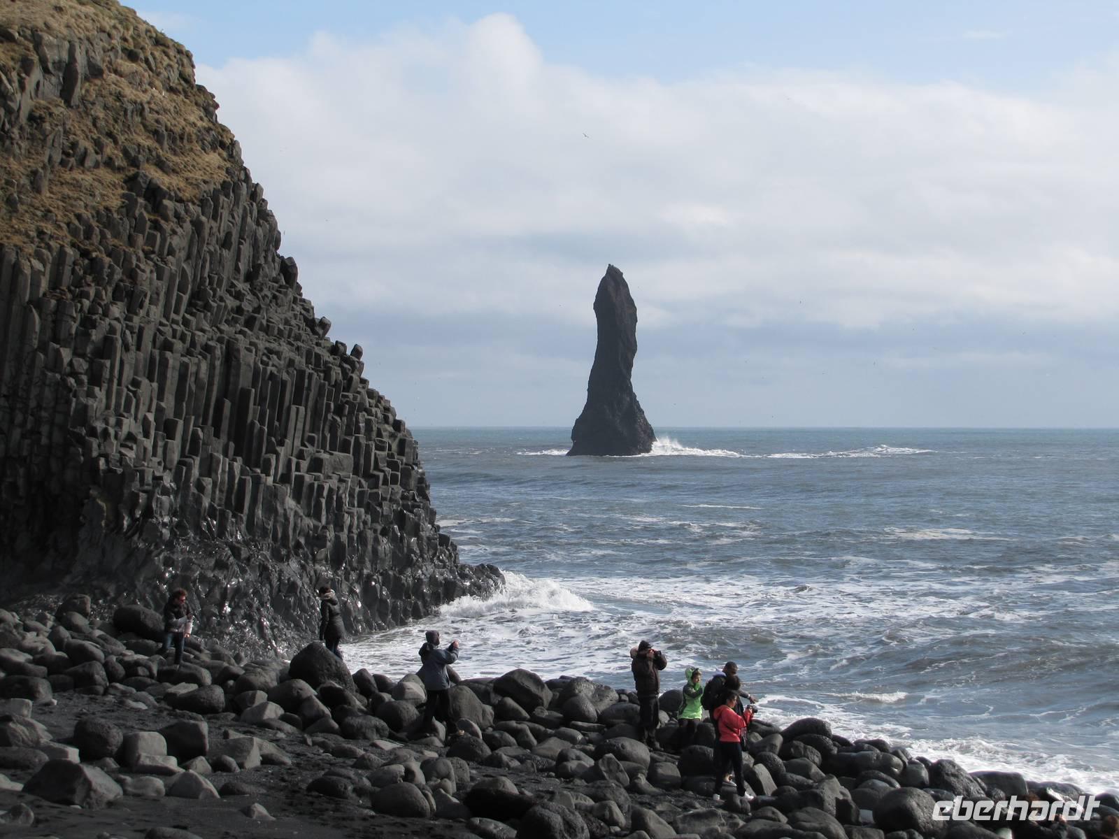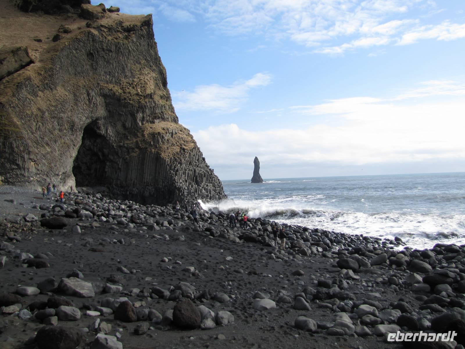 Zur Mittagspause hielten wir in Vik, einem kleinen Dorf direkt am Meer. Wir spazierten ca. 5min. zum schwarzen Sandstrand und blickten in südliche Richtung auf das Meer und auf den Golfstrom. Der Strand zählt laut einer amerikanischen Zeitschrift mit zu den schönsten Sandstränden der Welt. Wenn man hinter sich schaute konnte man die schneeweißen Berge sehen und vor sich die frische Meeresluft genießen, welch abwechslungsreiche Natur!