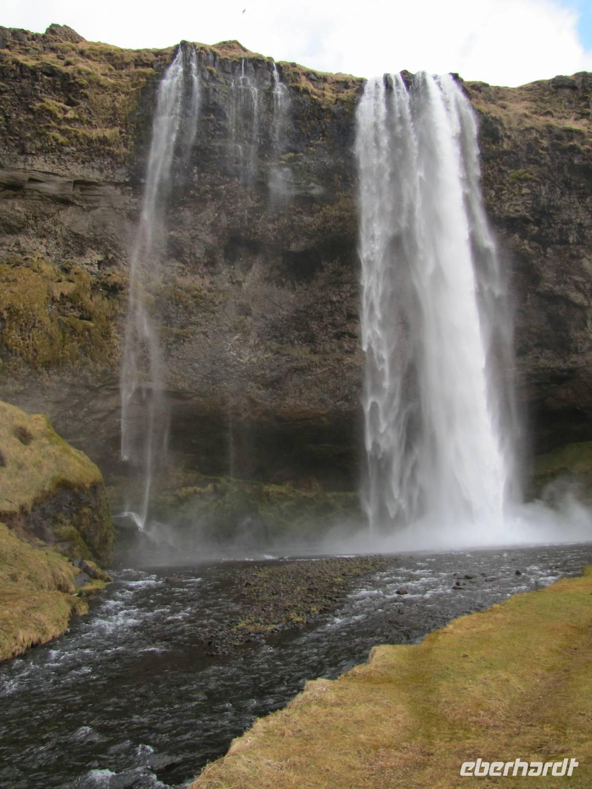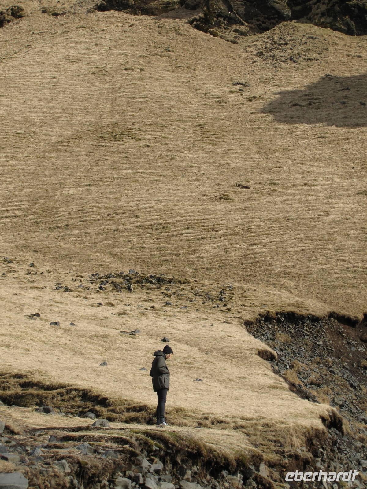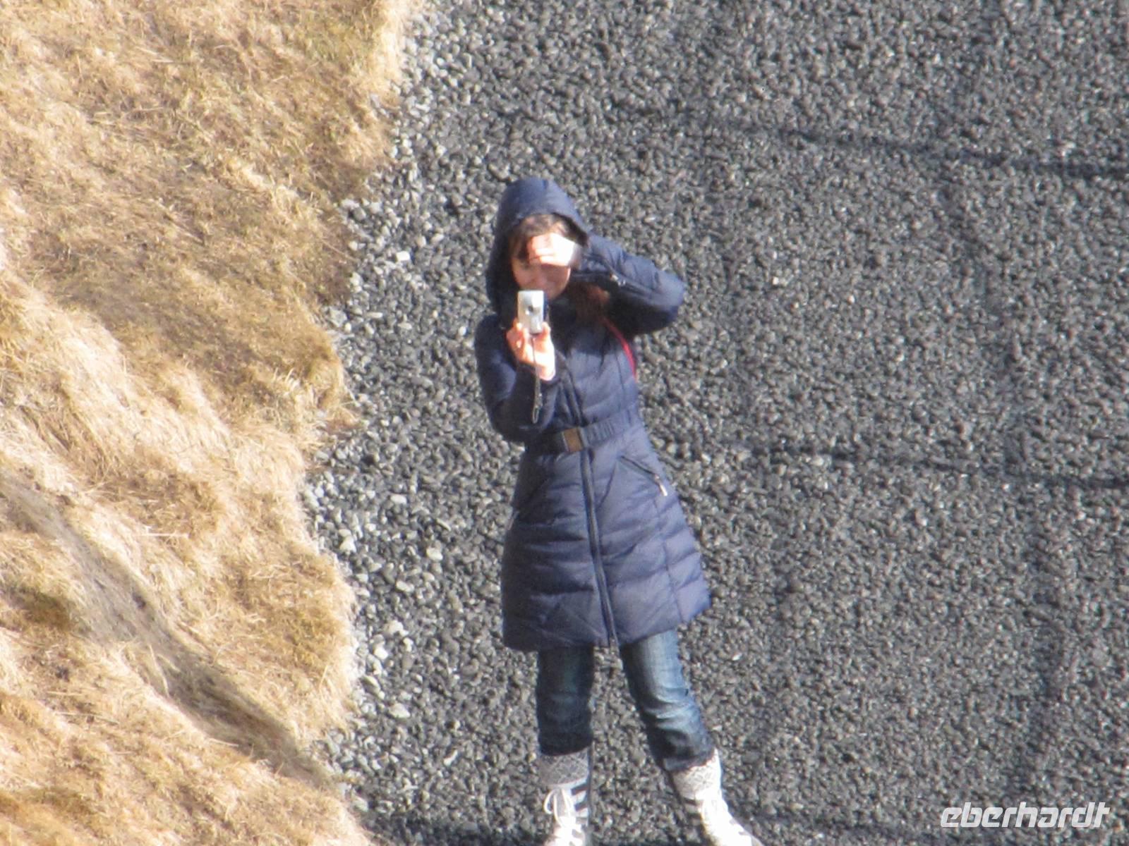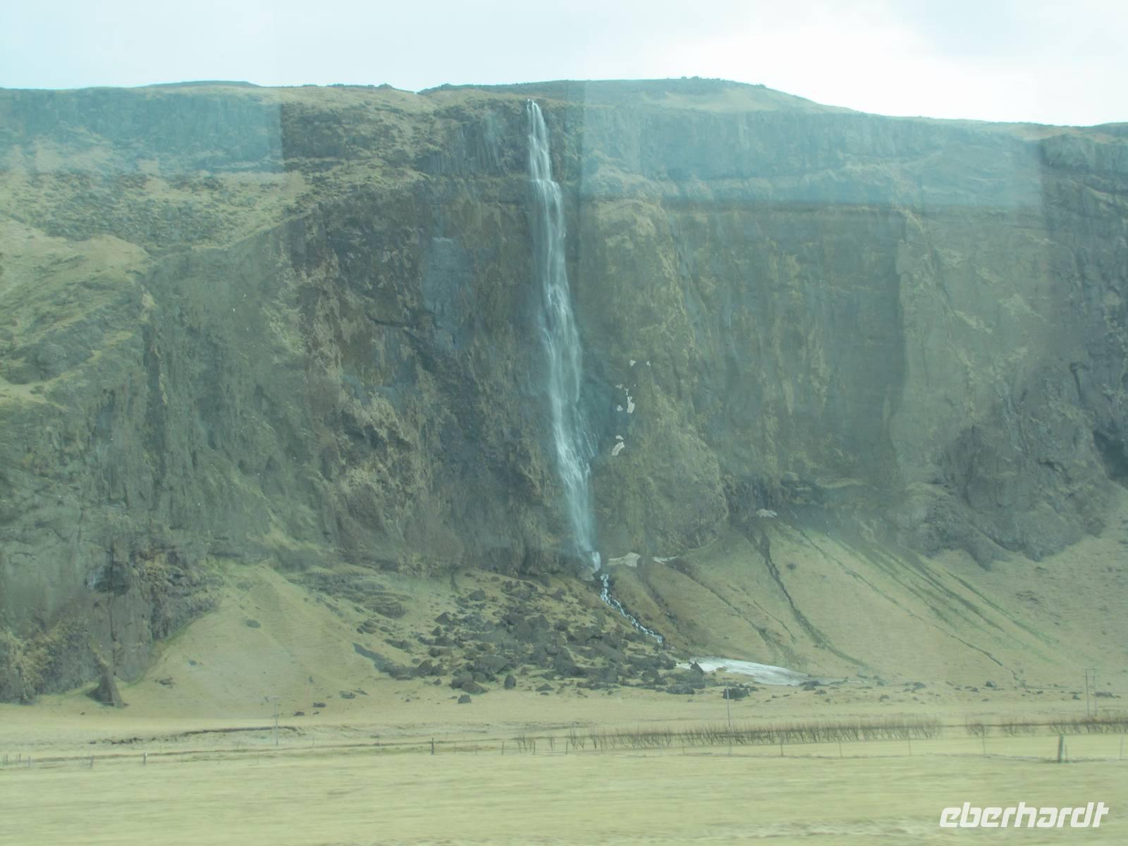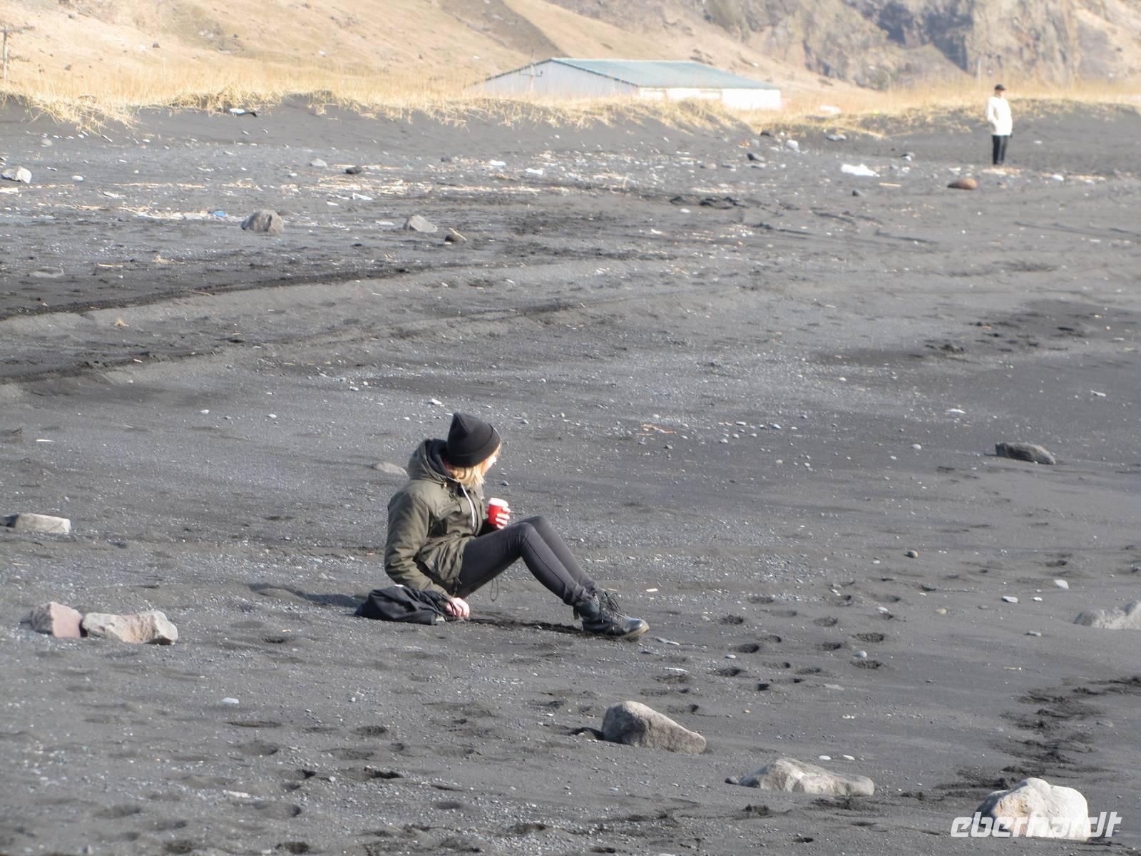 Zur Mittagspause hielten wir in Vik, einem kleinen Dorf direkt am Meer. Wir spazierten ca. 5min. zum schwarzen Sandstrand und blickten in südliche Richtung auf das Meer und auf den Golfstrom. Der Strand zählt laut einer amerikanischen Zeitschrift mit zu den schönsten Sandstränden der Welt. Wenn man hinter sich schaute konnte man die schneeweißen Berge sehen und vor sich die frische Meeresluft genießen, welch abwechslungsreiche Natur!